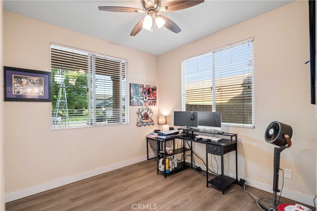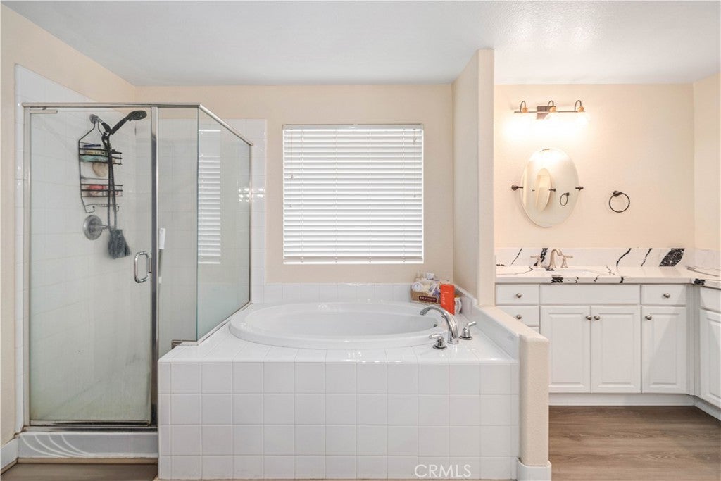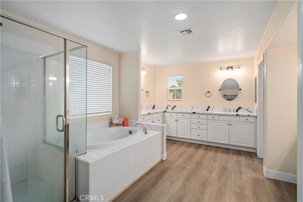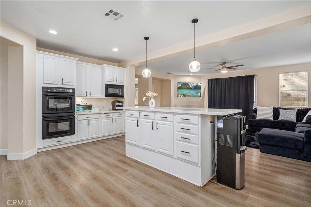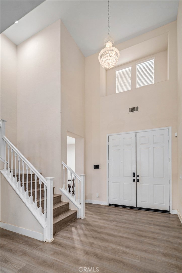 ***LIVE BEAUTIFULLY*** Stunning Two Story Palmdale Home with a Modern Upgraded Interior! Welcome to this beautifully upgraded residence that blends comfort and contemporary style. Enter through grand double doors into a striking foyer with cathedral ceilings and a chandelier that creates a memorable first impression. Recessed lighting and upgraded flooring carry throughout the home, leading into a spacious living area designed for both everyday living and entertaining. The kitchen features quartz countertops, white cabinetry, pendant lighting, bar seating, and a large center island, and opens seamlessly to the family room with a fireplace and a formal dining space. The main level also includes a bedroom and full bathroom, ideal for multi generational living or guests. Upstairs, a large loft offers flexible space for a media room, office, or play area and connects to the primary suite. The primary bathroom includes dual vanities, quartz countertops, a soaking tub, a glass walk in shower, and a walk in closet, while the secondary bathroom also features dual vanities for added convenience. The front yard showcases drought tolerant landscaping with decorative rock accents and a charming wooden bridge, and the expansive backyard provides plenty of room for entertaining, relaxing, or creating your ideal outdoor space. This home offers a thoughtful layout with modern upgrades and inviting spaces throughout. This Modern Upgraded Palmdale home is truly a must-see! Schedule your private tour today and experience this remarkable property for yourself!