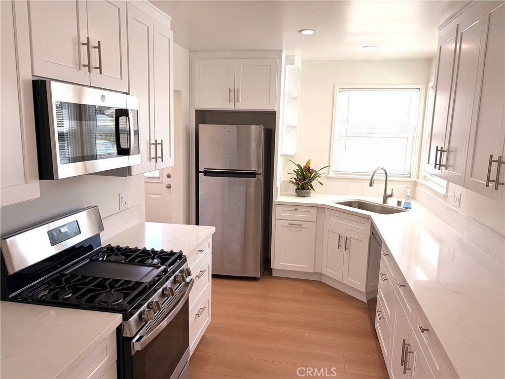 Stunning Fully Remodeled Lake Balboa Home for Lease! This beautifully reimagined home has been completely upgraded from top to bottom, offering a clean, modern feel with quality improvements throughout. Featuring updated plumbing and electrical, a new roof, new windows, new flooring, and fresh paint, this home is truly move in ready. The redesigned kitchen is the centerpiece, showcasing quartz countertops, easy-open cabinetry, and a full set of appliances, including a quality refrigerator. Both bathrooms have been stylishly remodeled with contemporary finishes. A tankless water heater adds everyday efficiency and convenience. The detached two car garage features finished drywall and a new garage door, with additional parking spaces alongside ideal for multiple vehicles. Step outside to a private patio area, perfect for relaxing or entertaining. Located in a desirable Lake Balboa neighborhood. This is a rare lease opportunity that combines modern upgrades, functionality, and location.