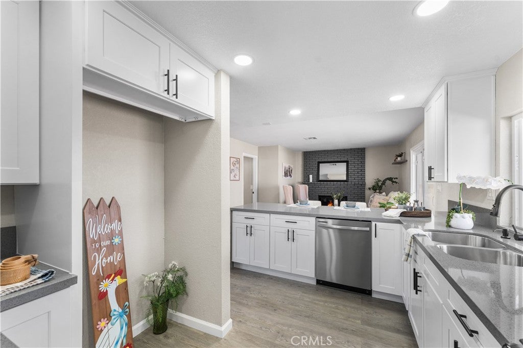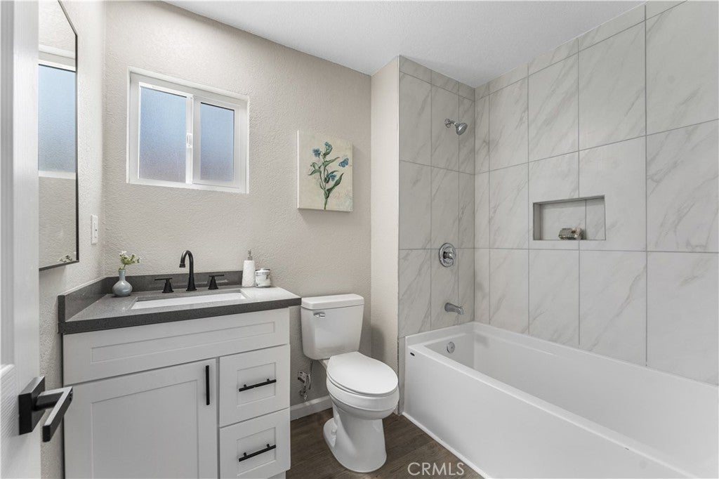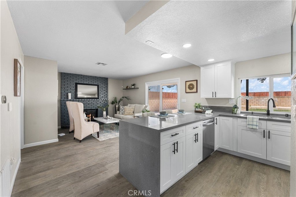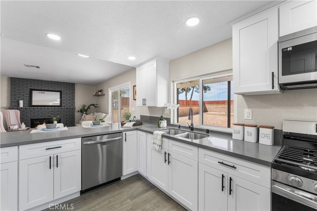Beautifully remodeled 2-story home featuring 5 spacious bedrooms and 3 full bathrooms! This stunning property offers an open floor plan with soaring high ceilings, creating a bright and airy feel throughout. Convenient downstairs bedroom and full bathroom make it perfect for guests or multi-generational living. Family room offers a cozy fireplace and flows seamlessly into the completely updated kitchen featuring new cabinets, modern countertops, new appliances, and stylish finishes. Bathrooms have been upgraded with new vanities, new showers, and modern fixtures throughout the home. Additional upgrades include new flooring, new windows, a newer AC condenser, and contemporary touches in every room. Step outside to a covered patio and huge backyard with endless possibilities for entertaining, gatherings, or creating your dream outdoor space. Move-in ready home combines space, style, and comfort in one incredible package!