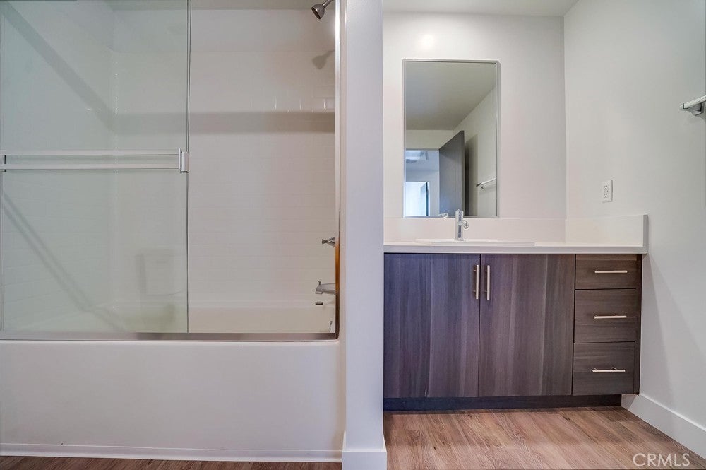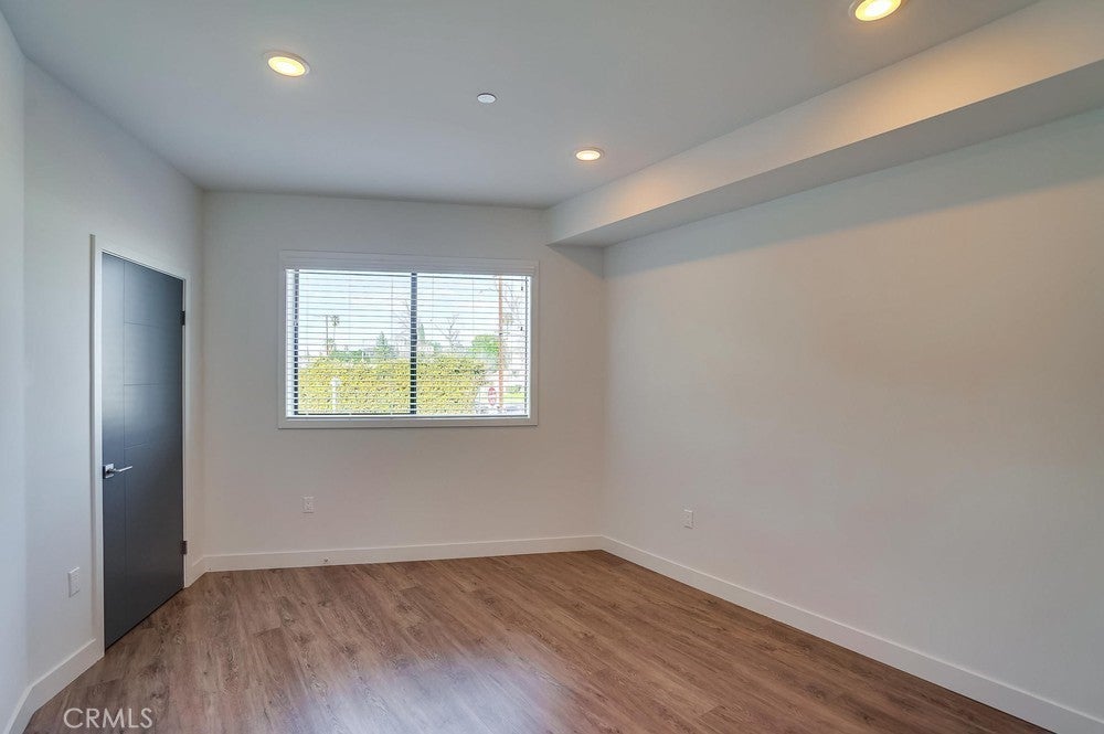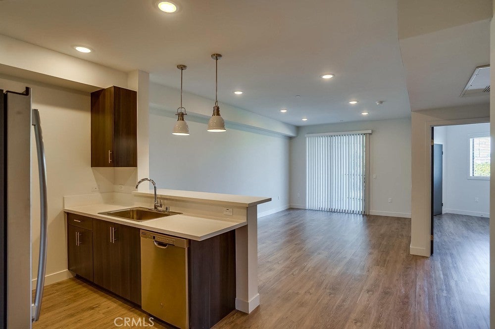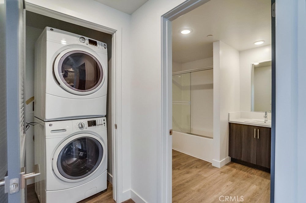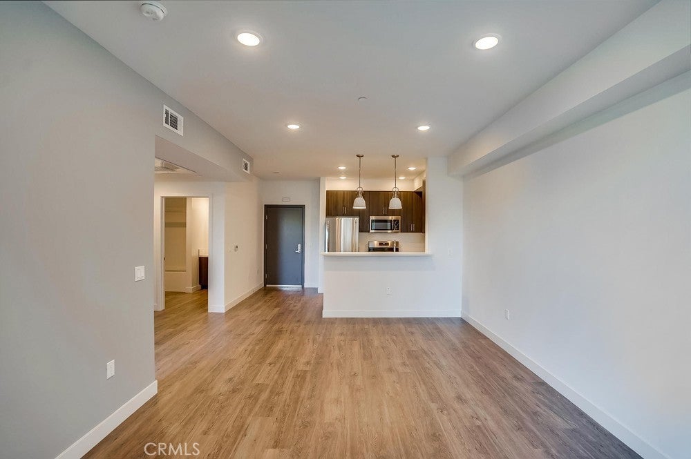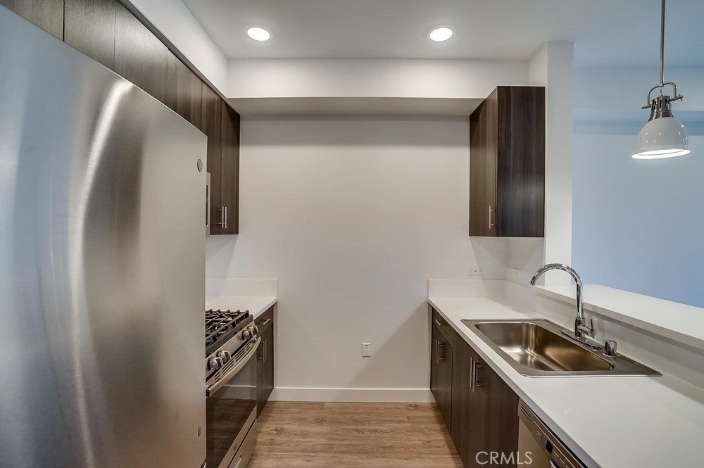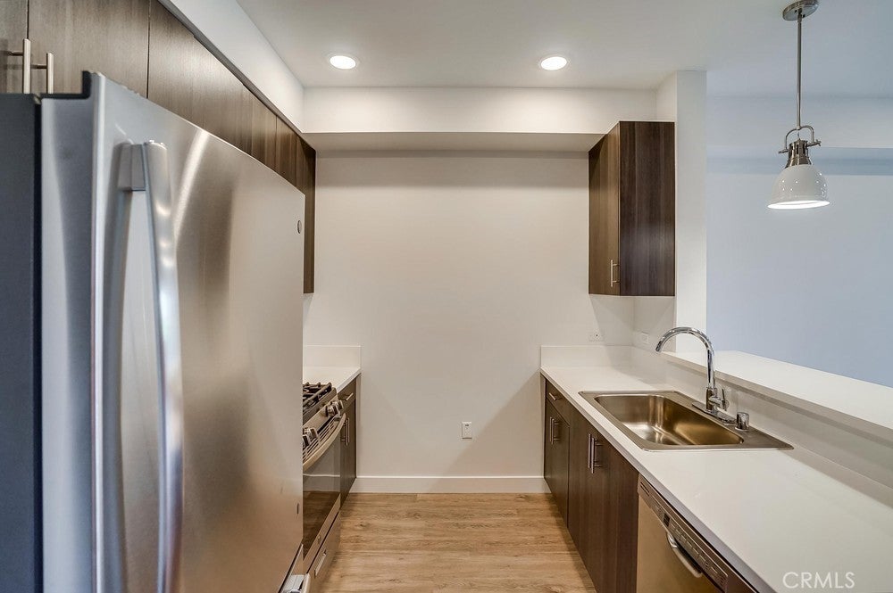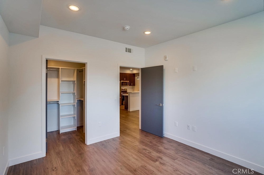 Nearly brand new construction (built in 2020) one block away from all the amazing dining, shopping and entertainment Sherman Oaks and Studio City have to offer. This incredibly updated corner unit, located away from the major streets, offers such modern amenities that include wood laminate flooring (no carpet), double pane windows, Quartz countertops, recessed LED lighting and more! The kitchen is open and offers a high breakfast bar for more casual dining. It features Quartz counters, custom cabinetry & all stainless steel GE appliances, which includes a gas range, refrigerator with pull-out bottom freezer, dishwasher and micro-hood. The living room is light, bright and spacious! It's adorned with a stylish sliding door granting you access to your private balcony that overlooks the quiet neighborhood. The LED lighting continues into the bedroom, which also offers a walk-in closet with custom built-ins. Adjacent to the bedroom rests the bathroom, complete with a spacious vanity featuring Quartz counters and plenty of storage, as well as a tub/shower combo with stylish subway tile walls and glass shower door enclosure. Lastly, you have your own in-unit FULL SIZE WASHER & DRYER! This unit comes with 1 dedicated parking space in the gated subterranean parking garage, which has EV CHARGING & is easily accessible from the nearby elevator, in addition to a community rooftop deck with sitting areas and a gas bbq.