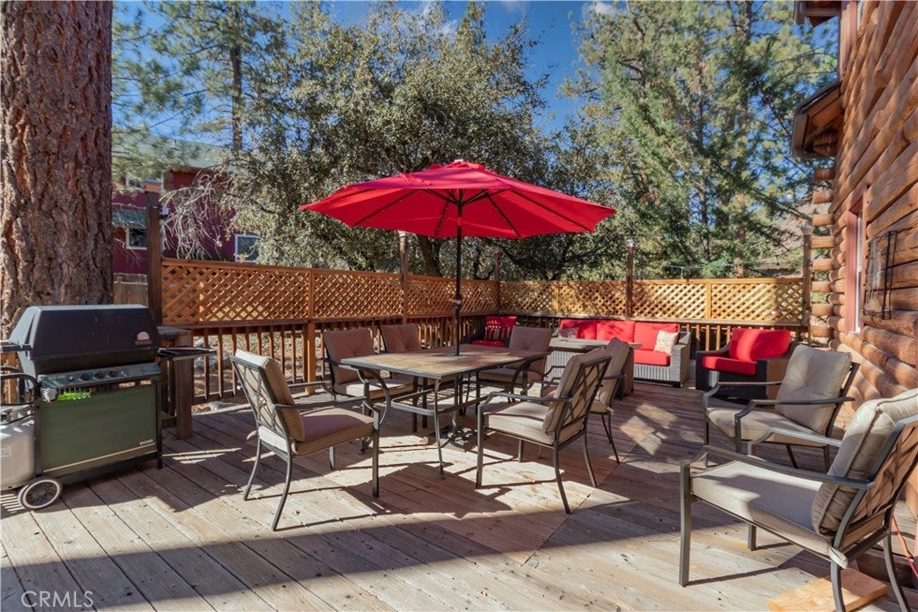 Charming Log Home on a Spacious R-3 Lot 2505 Brentwood Place, Pine Mountain Club, CA Nestled in the beautiful mountain community, just north of Los Angeles and surrounded by 1.7 million acres of Los Padres National Forest, this authentic log home offers the perfect blend of privacy and convenience. Tucked away on a quiet cul-de-sac yet close to the village center, this well-maintained home features soaring high ceilings in the living room with a striking real brick fireplace — ideal for cozy evenings. The remodeled kitchen is a standout, featuring a stunning one-piece wood countertop that seamlessly connects the kitchen island to the breakfast bar in a unique “Teppanyaki style.” This flows beautifully into the sunny dining area and sunroom, which includes its own wood-burning stove — long a favorite gathering spot for snowy mornings. Step outside to enjoy three generous decks, including two covered ones on the east and south sides, plus a large back deck perfect for relaxing on pleasant summer afternoons and evenings. Upstairs, a gorgeous private loft with skylights and an efficient wood-burning stove leads to the spacious master bedroom and full bath. Wood flooring runs throughout the home, complemented by a dedicated laundry room and a two-car detached garage. The oversized 1,200-gallon septic tank offers excellent potential for a 4th bedroom addition — be sure to ask your agent, the clubhouse, or Kern County about the R-3 zoning possibilities. Exceptionally maintained with thoughtful attention to detail around every corner, this log home is move-in ready. Whether you're looking for year-round mountain living or a fantastic vacation rental opportunity, this rare find delivers warmth, character, and endless outdoor adventure right at your doorstep. This special property will not last long. Call today to schedule your private showing!