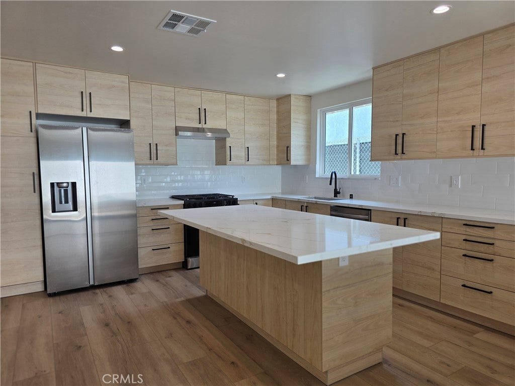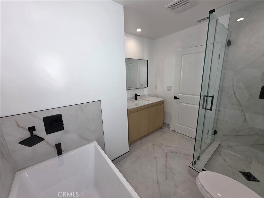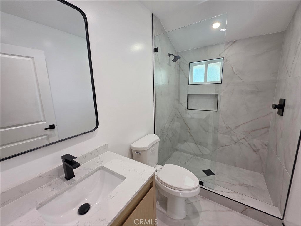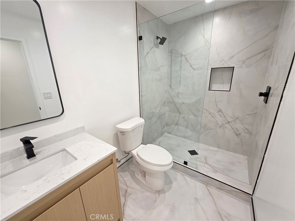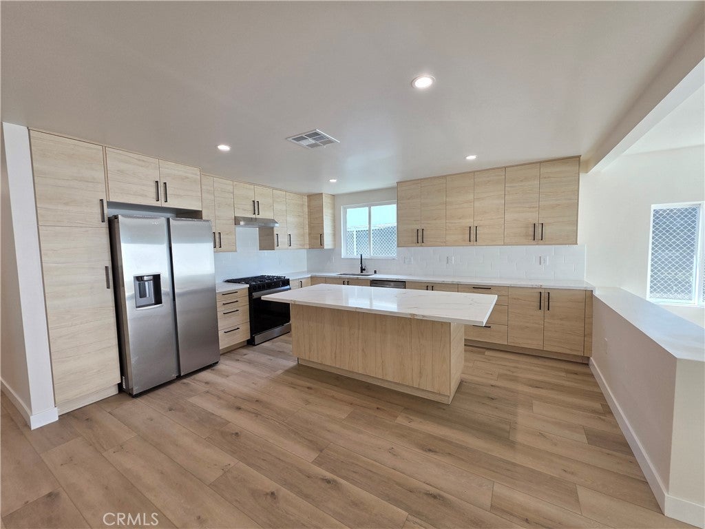 Property is part of a 4-unit lot featuring 3 additional units. Completely renovated from top to bottom, this stunning 4-bedroom, 3-bathroom residence offers modern living with high-end finishes throughout. The open-concept layout showcases a designer kitchen with sleek cabinetry, quartz countertops, stainless steel appliances, and a large center island perfect for entertaining. Spacious living areas are filled with natural light and complemented by wide-plank flooring and recessed lighting. The bedrooms are beautifully designed, including a beautifully updated primary suite, while all bathrooms feature contemporary finishes and custom tile work. Enjoy a private outdoor patio space, ideal for relaxing or hosting. Additional highlights include central HVAC, in-unit laundry connections, and drive-way parking area. Located in a desirable neighborhood close to shopping, dining, and major freeways, this turnkey home offers style, comfort, and convenience.