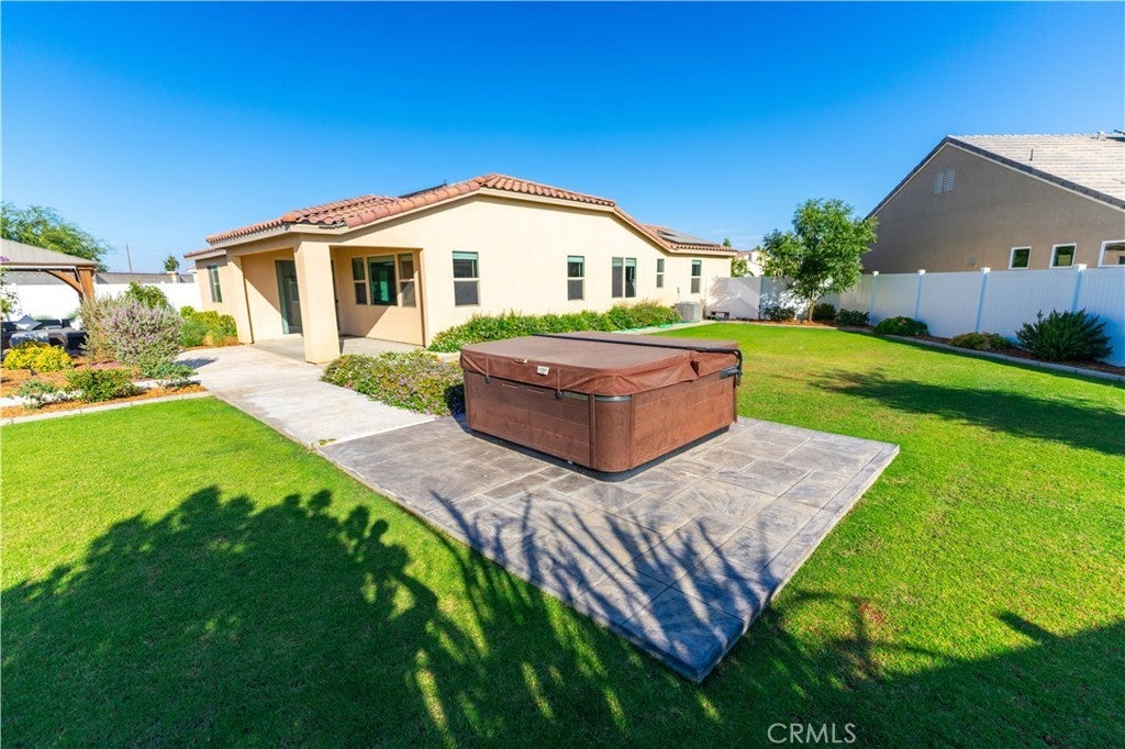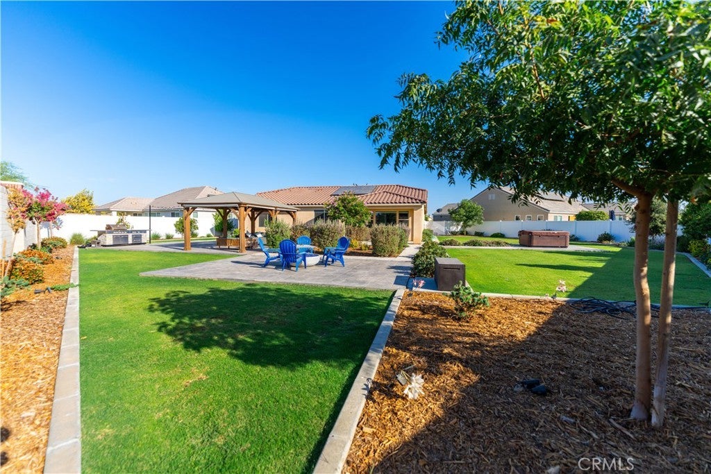 Rare oversized cul-de-sac property in the highly sought-after gated community of Highgate at Seven Oaks. Situated on nearly one-third of an acre, this 2022-built home offers a fully completed entertainer’s backyard, a standout feature compared to most new construction. Unlike builder inventory, this home is already upgraded, landscaped, and move-in ready — no dirt lot, no extra expense, no waiting. The Backyard Everyone Wants • Expansive stamped concrete patios • Custom pergola for shaded dining • Built-in KitchenAid BBQ • Dual fire pits • Large lawn (room for a pool) • Premium Bullfrog Spa ($15,000+ value) included • Oversized lot for privacy & flexibility. Designed for year-round entertaining and relaxation. Interior features a split-wing layout with soaring ceilings, large sliding doors to the backyard, modern quartz kitchen, 100” smart TV, and owned solar for low energy costs. Highgate offers gated security plus resort-style amenities: community pools, gym, pickleball & basketball courts, parks, and walking paths. Excellent schools and close to West Bakersfield shopping & dining. This rare larger lot with a completed backyard and premium upgrades is ready for you to simply move in and enjoy!