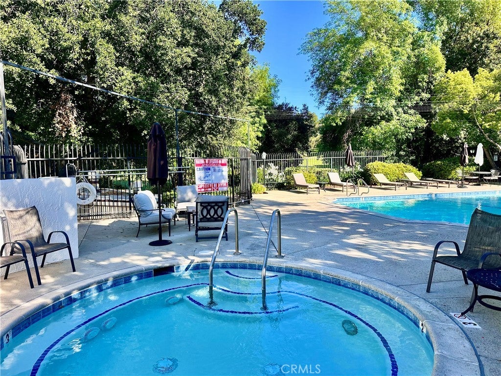Welcome to this beautifully updated single-level, 3-bedroom condo located in one of the most desirable areas of Calabasas. Nestled in a prime spot within the community, this bright and airy home features a private balcony with view of vibrant flowers and a mature shade trees, creating a peaceful outdoor retreat. Inside, the home has been thoughtfully upgraded, a cozy fireplace in the living room, and the convenience of an in-unit washer and dryer. The spacious primary suite is filled with natural light, complete with a walk-in closet and additional large closet space. All bedrooms feature mirrored closet doors, enhancing both brightness and functionality. Enjoy the ease of two assigned side-by-side parking spaces, an additional storage closet, and plenty of guest parking. The community amenities include a clubhouse, gym, sparkling pool, and jacuzzi, perfect for relaxing or entertaining. Ideally located within walking distance to The Commons, Calabasas Tennis & Swim Center, and a scenic bridge leading to Calabasas Park with access to a 2.2 mile walking path around the lake. Situated in the highly acclaimed Las Virgenes School District and close to shopping, dining, and freeway access, this home offers the perfect blend of comfort, convenience, and location.
