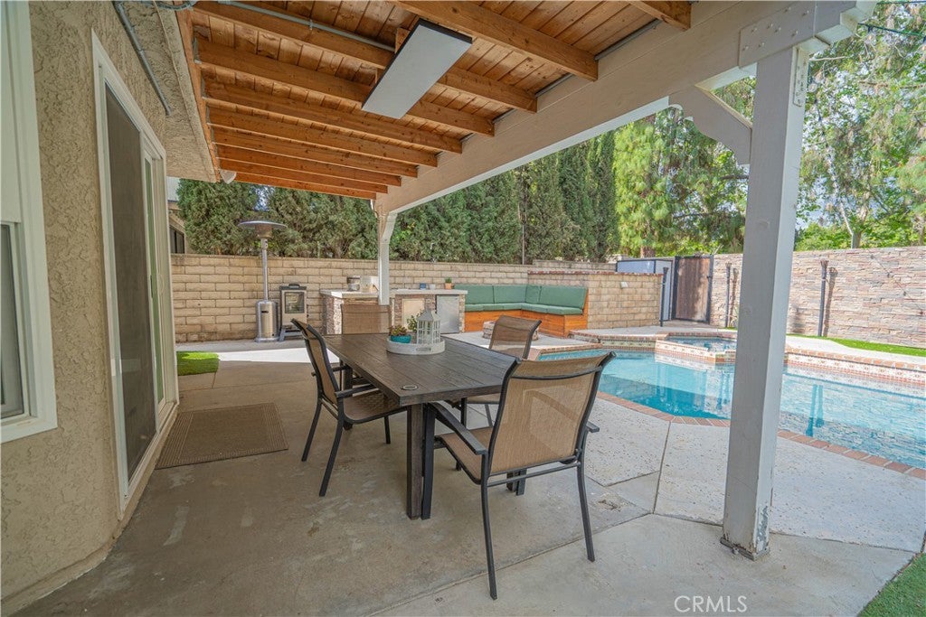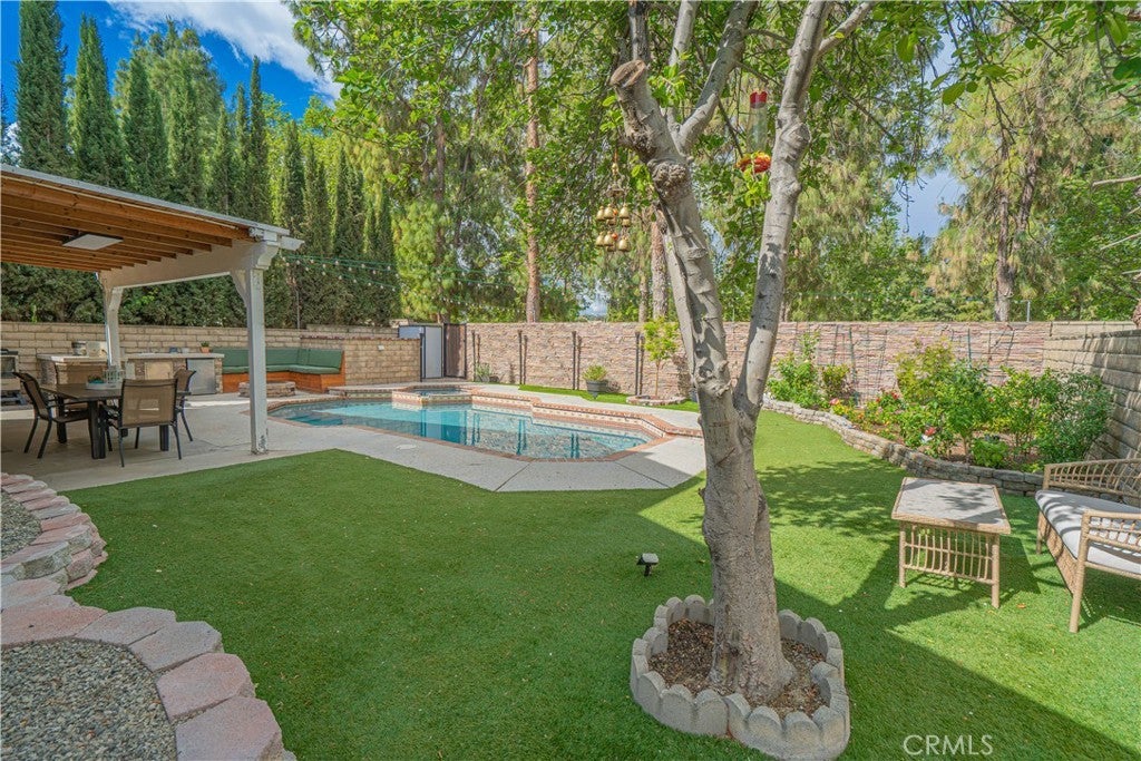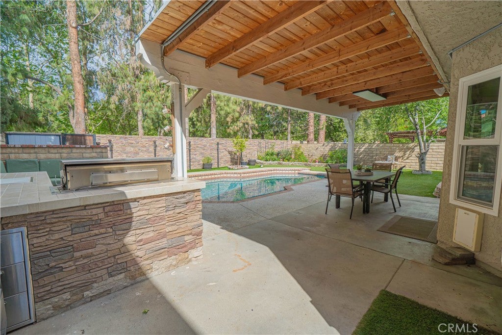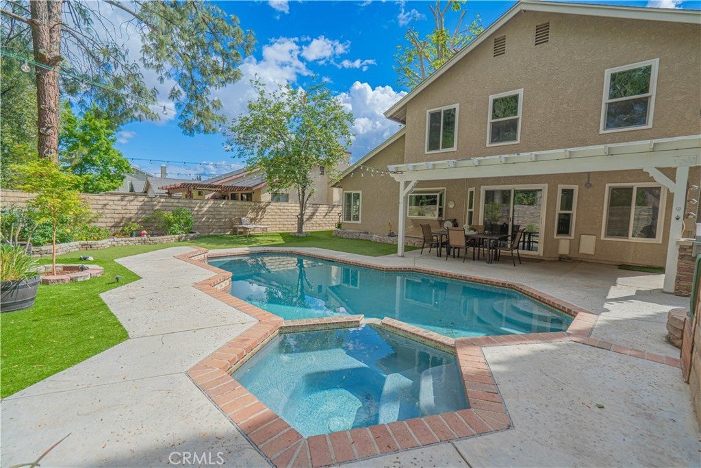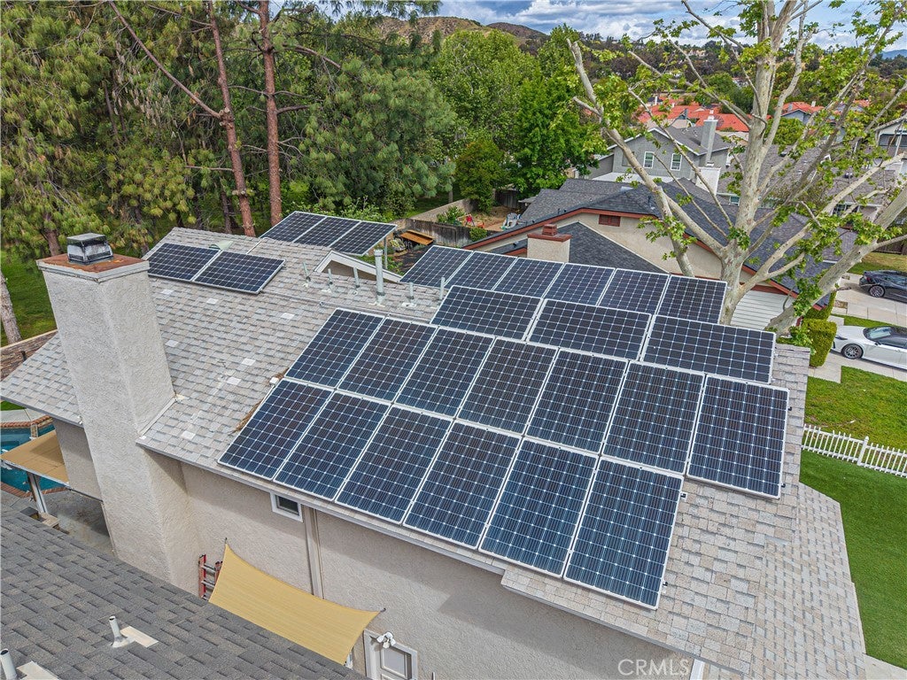 HIGHLY UPGRADED POOL HOME WITH VIEWS. This beautiful 4-bed, 2.5-bath home is nestled in a desirable cul-de-sac location with stunning park views from the rear of the home and mountain views from the front of the home. Step inside to find a spacious open floor plan, new carpet throughout, bamboo flooring, and fresh interior paint. Remodeled kitchen has stainless steel appliances, lots of cabinets w/ pull out drawers and a walk-in pantry. The family room can be a cozy dining area w/fireplace. The remodeled primary suite has peaceful views, a decorative wall, a high ceiling, and a custom-built-in closet. The remodeled primary bath is very spacious. Home is enhanced w/ smart home technology, including automated blinds, lighting, and smart toilet, Phantom screen door, along with ceiling fans in all rooms for added comfort. Major system and efficiency upgrades include paid solar, replacement energy-efficient windows and doors, upgraded energy-efficient roofing, reinsulated attic, whole house fan, attic fan, and a tankless water heater—offering exceptional energy savings and year-round comfort. The backyard is truly an entertainer’s dream. Enjoy a sparkling swimming pool and spa with full smart automation and a self-maintaining chemical system, a cozy firepit and seating area, and a beautifully landscaped yard featuring artificial turf, a faux rock wall, and a lush garden with beautiful trees and flowers. Fully equipped outdoor kitchen with a refrigerator and ample space for gatherings, all complemented by a covered entertaining area with misters and lighting. There is also direct backyard access to the park. Other highlights include a 50-amp RV hookup, expanded driveway for extra parking, copper re-pipe, exterior trim freshly painted, energy efficiency exterior paint, a custom wood front door, new front yard landscaping, and recent major maintenance, including A/C compressor replacement and a roof inspection completed in October. Enjoy unmatched convenience with easy freeway access and a short walk to the elementary school. Close proximity to scenic hiking and biking trails, community parks, and outdoor recreation at Castaic Lake, nearby shopping, dining, and top-rated schools. Located in the heart of Castaic, this home offers the perfect blend of comfort, modern upgrades, and a active outdoor lifestyle with no HOA or Mello-Roos. With its extensive upgrades, energy-efficient systems, resort-style backyard, and prime location, this home is truly one of a kind