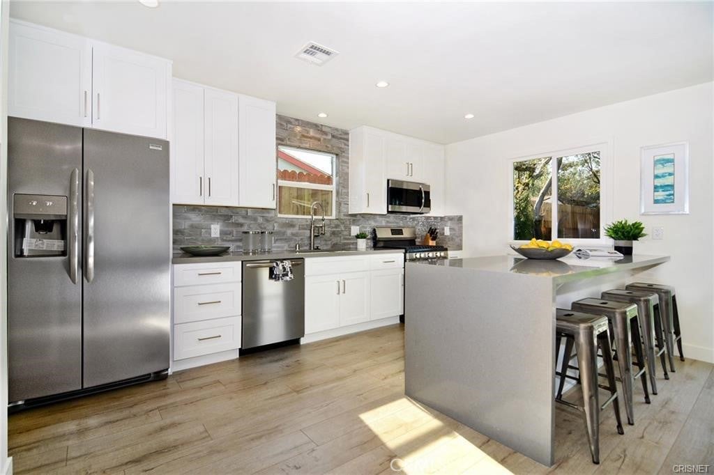 Welcome to this custom designer re-imagined "A lden" home in West Hills featuring 3 beds & 2 baths with the most incredible curb appeal accentuated by an exquisite landscape. Situated on a quiet street and set on an expansive almost 8000sf lot. Step inside and you will be greeted by a wide open floor plan with views to the backyard through huge picture windows and sliding door. A custom tiled fireplace acts as the center piece and separates the dining from living areas, all of which are open to the kitchen allowing for the ultimate in entertaining. Speaking of kitchens...this one features custom white shaker cabinetry, quartz counters with waterfall at the peninsula, stainless steel appliances, & a stunning tile backsplash. 2 guest bedrooms are serviced by a completely remodeled hallway bath while the master features an en-suite bath which has also been remodeled with the finest in finishes. More notable upgrades include HVAC, roof, windows, attic insulation, solid interior doors, recessed LED lighting, and much more. The backyard features several sitting areas with loads of grass and a truly professional landscape job featuring a new irrigation system to ensure all of your new plants and flowers are well taken care of. The location allows for easy access to both the 101 & 118 freeways, plus shopping, dining, schools, places of worship, and entertainment. Come check this one out and see for yourself the definition of true quality!!