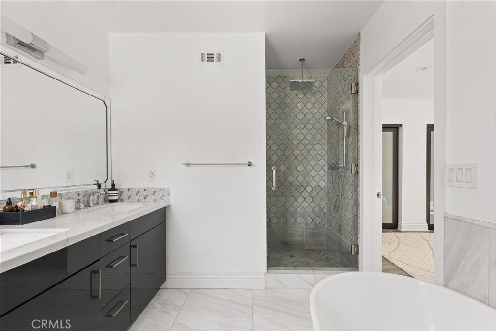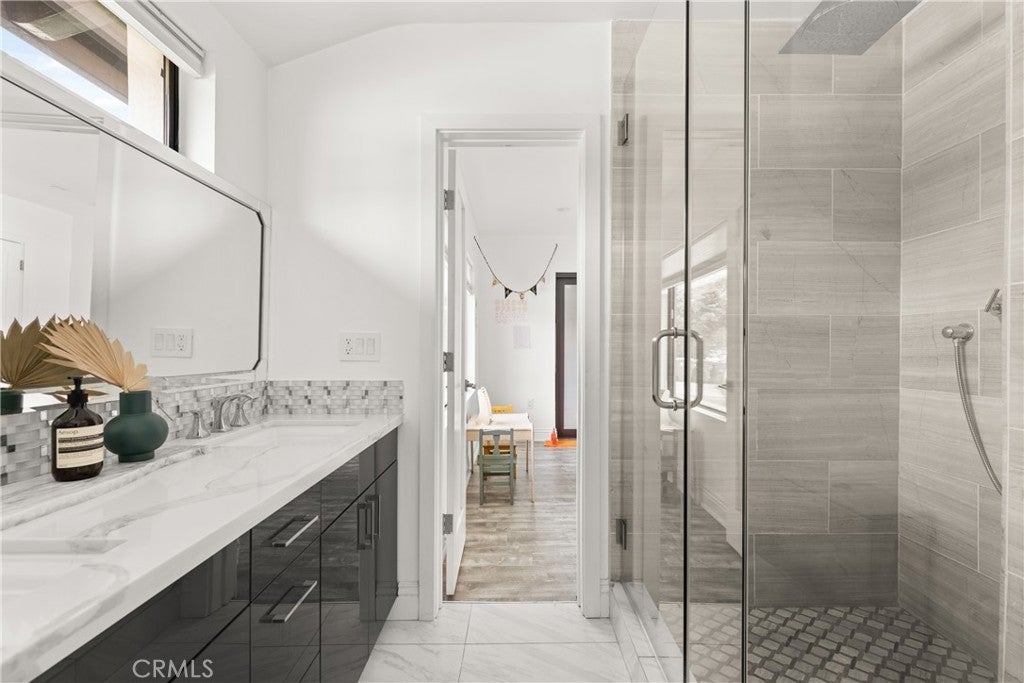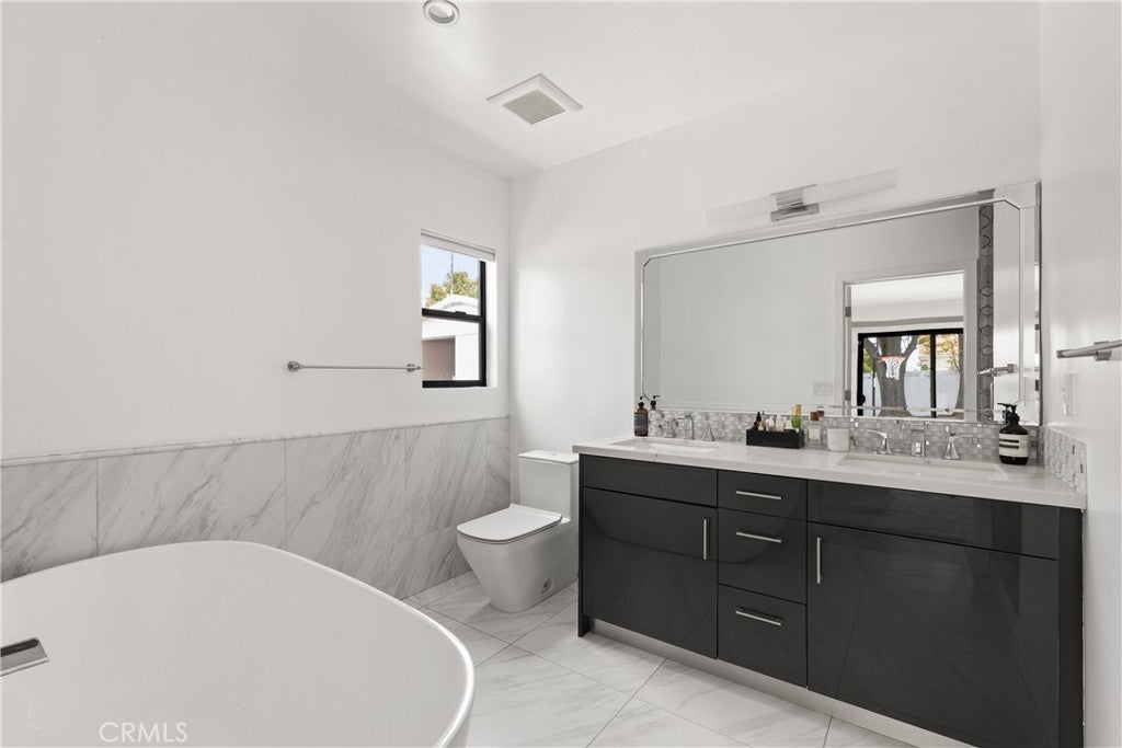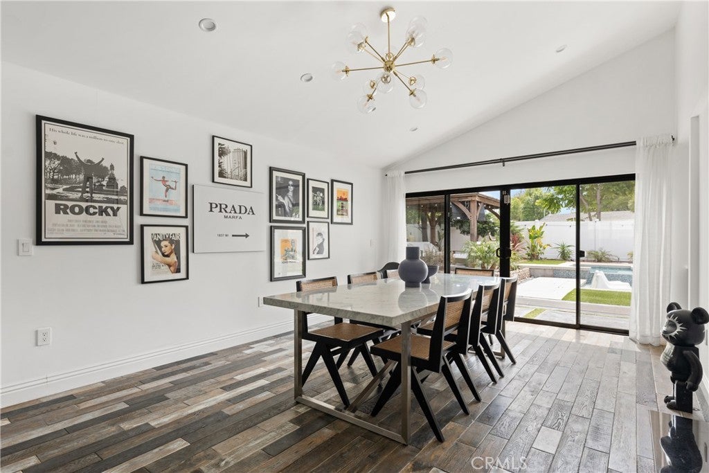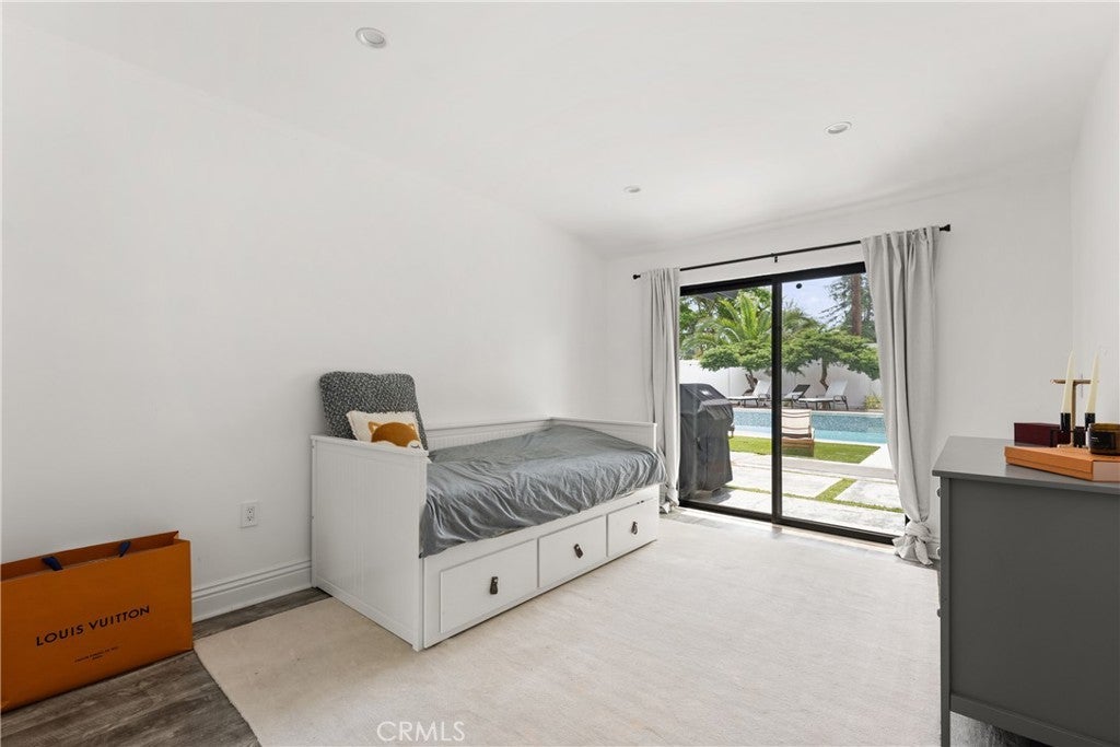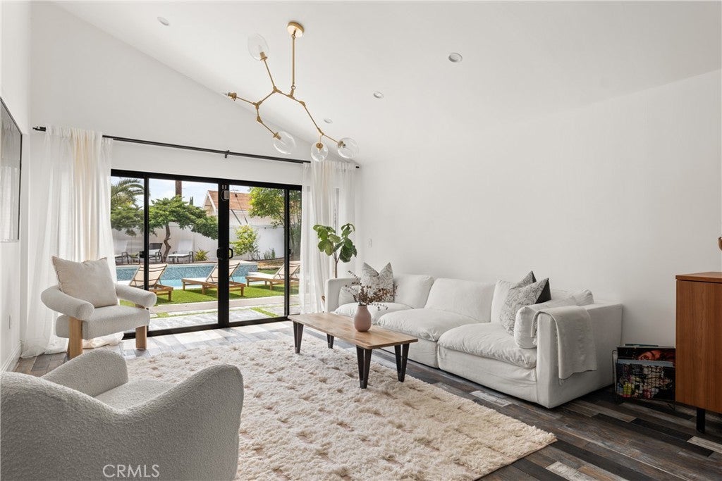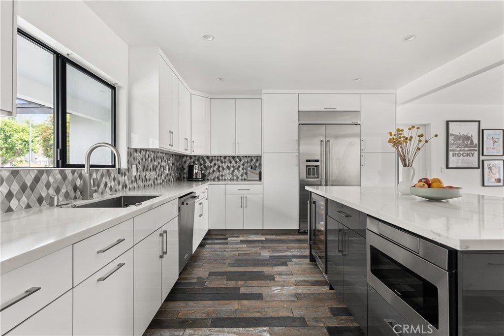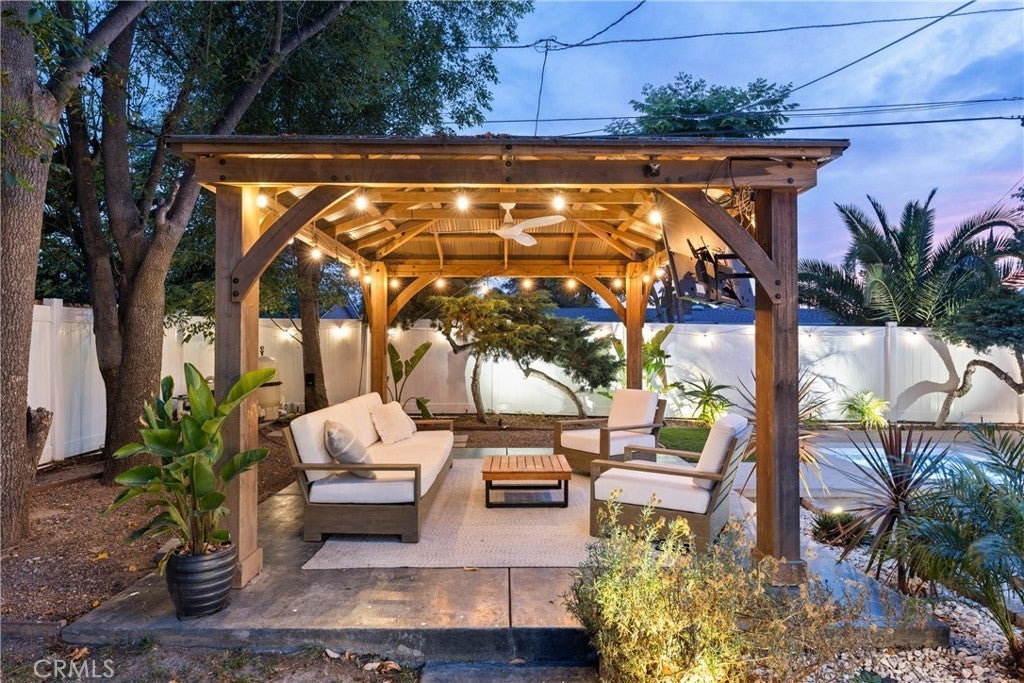 Mid Century Modern, Charles DuBois property, located South of Ventura blvd in a quiet neighborhood. This single story home was meticulously renovated with impeccable taste and great attention to detail. A spacious open floor plan, with plenty of natural light, features 4BR/3BA, living room, dining room, laundry room inside, vaulted ceilings, stunning floors, floor to ceiling double-sided fireplace, recessed lights, Milgard windows and sliders. You will love the gorgeous open kitchen with its wide island, that will be the center of all your parties and gatherings, but also the heart of your home. Custom cabinetry, quartz countertops, Kitchen Aid stainless steel appliances, including 42” built-in refrigerator, 36” built-in range, double oven, built-in microwave, 46-bottle wine cellar. Beautiful primary suite, with views and access to the pool and backyard. Remodeled primary bathroom with double sinks, walk-in shower and freestanding bathtub. Other features include newer roof, newer central air/heat, new electrical panel, newer pool/spa. Relax in this entertainment resort like backyard with a new built sparkling saltwater pool and hot tub. Enjoy this private oasis with elevated deck, lush landscaping and synthetic lawn space, a dream gazebo where you could watch some movies or football games by the fire. The home, nestled away from busy main streets, is situated on a large corner lot by great award winning schools and walking distance to Bristol Farms and Old Town Calabasas. Close to 101 fwy, Topanga Mall and the Village at Topanga, shops, restaurants, parks and hikes. Easy access to Malibu, Calabash, Hale and El Camino Real Charter Academy.