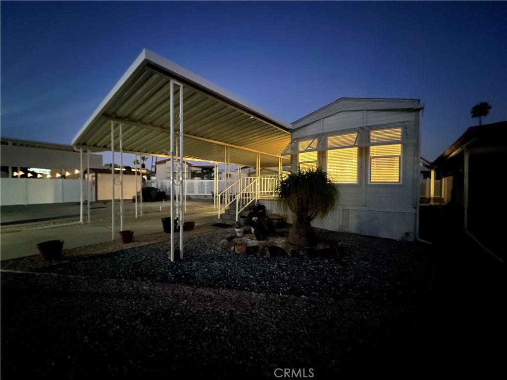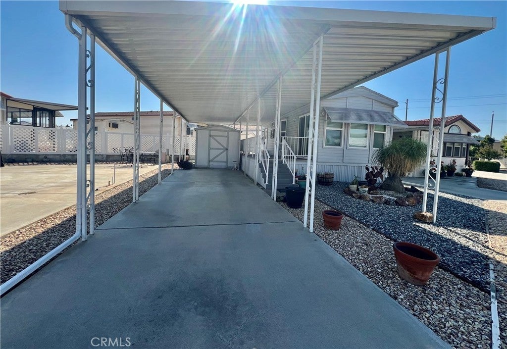 OWN YOUR LAND! Desired Mountain Shadows RV Resort 55+ Gated Community. Beautiful Castle 1989 Park Model Approx 400 Sq Ft of Living Space. Full Length Covered Patio Is Great for Enjoying Your Favorite Morning or Afternoon Beverage. Enter Through the Sliding Glass Doors to the Open Floor Plan Kitchen with Full Size Refrigerator, Free Standing Propane Stove, Microwave, Garbage Disposal & Lots of Extra Cabinetry & Custom Pull Out Drawers. Open To the Living & Dining Room with Built-In Hutch. The Master Bedroom Has Mirrored Wardrobe Closet Doors. Bathroom Has Vanity & Shower Tub Combo. Newer Interior Paint, Laminate Wood Flooring, Mini Split AC/Heating Unit & Electric Hot Water Heater. Improved Storage Shed Has Washer & Dryer Included. The Land Is an Oversized "A" Lot Approx 2614 Sq Ft. Covered Carport & Low Maintenance Landscaping. Two Clubhouses to Choose from with Lots of Amenities Including Heated Saltwater Pool, Spas, Indoor & Outdoor Kitchens, Auditorium, Billiard Room, Shuffleboard, Gyms, Laundry Facilities, Restrooms & Showers, Horseshoe Pit, Corn Hole, Ping Pong Tables & More. LOW TAXES & HOA FEES Of Approx $292.00 "ONLY" A Month Includes Water, Sewer, Trash Basic Cable & Internet. Turnkey & Move in Ready! Retirement At Its Finest!