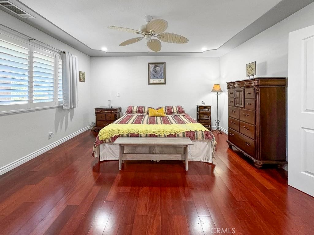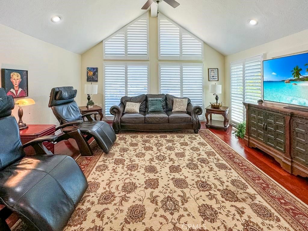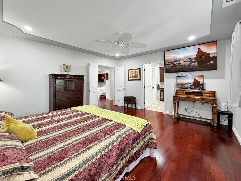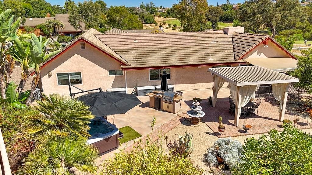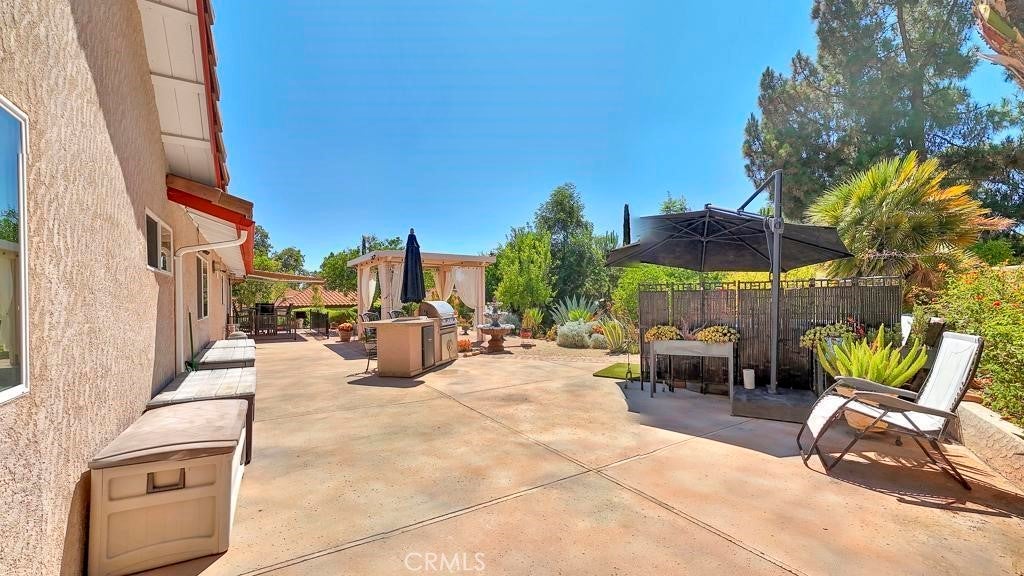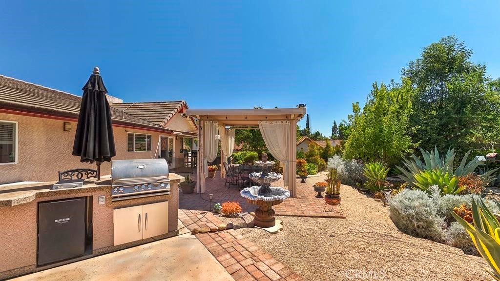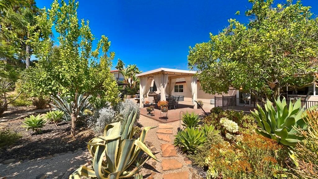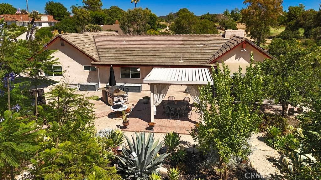 A Beautiful, Well-kept Single Level Home with Golf Course Views in Boulder Oaks Golf Course in the Community of Hidden Meadows. Solar Panels, Newer Tile Roof, Cherry Wood Flooring, Kitchen Cabinets w/ Granite counter-top, Stainless-Steel Appliances, Crown Molding in Kitchen, Energy Efficient Low E Glass Vinyl Windows, Shutters, Interior Doors, Trim with 4 1/2-inch Baseboards, Recessed Lighting LED with Dimmers, Ceiling Fans and Eco Smart Tankless Water Heater. Large Circular Driveway & wide side yard for additional parking. A Serene Private Backyard, Fruit Trees, Low Maintenance Landscape, Electric Patio Awning, Gazebo, Island with Built in BBQ and Jacuzzi Hot Tub with Umbrella. The Garage has Epoxy Flooring and Custom Cabinets. Community Seasonal Pool, Pavilion & Tennis Courts all for a LOW ANNUAL FEE of $396. Hidden Meadows has Meadows Deli, The Market/Side yard Pub, a Public Golf Course with a Restaurant/Bar and a Fire Station. Convenient location near Fwy 15.