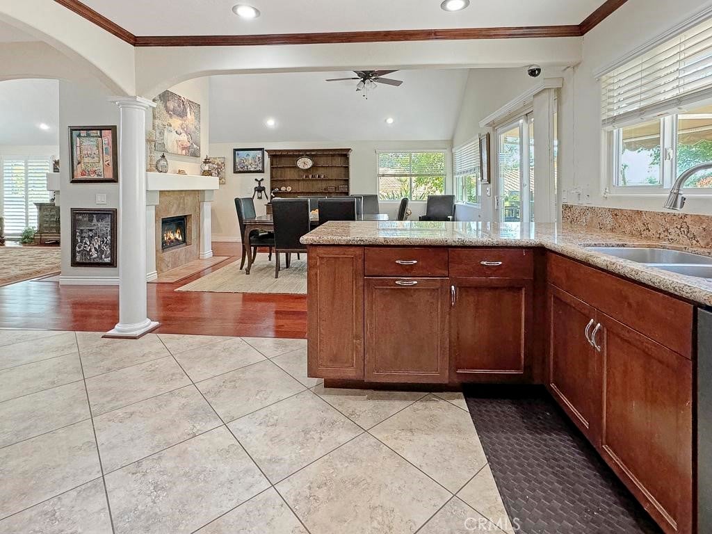 - Interior FeaturesCeiling Fan(s), Cathedral Ceiling(s), Separate/Formal Dining Room, Eat-in Kitchen, Granite Counters, High Ceilings, Open Floorplan, Recessed Lighting, All Bedrooms Down, Bedroom on Main Level, Main Level Primary, Primary Suite, Walk-In Pantry, Walk-In Closet(s)