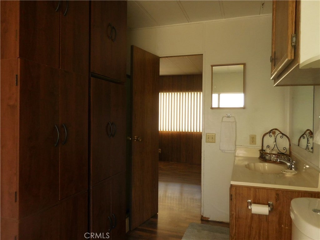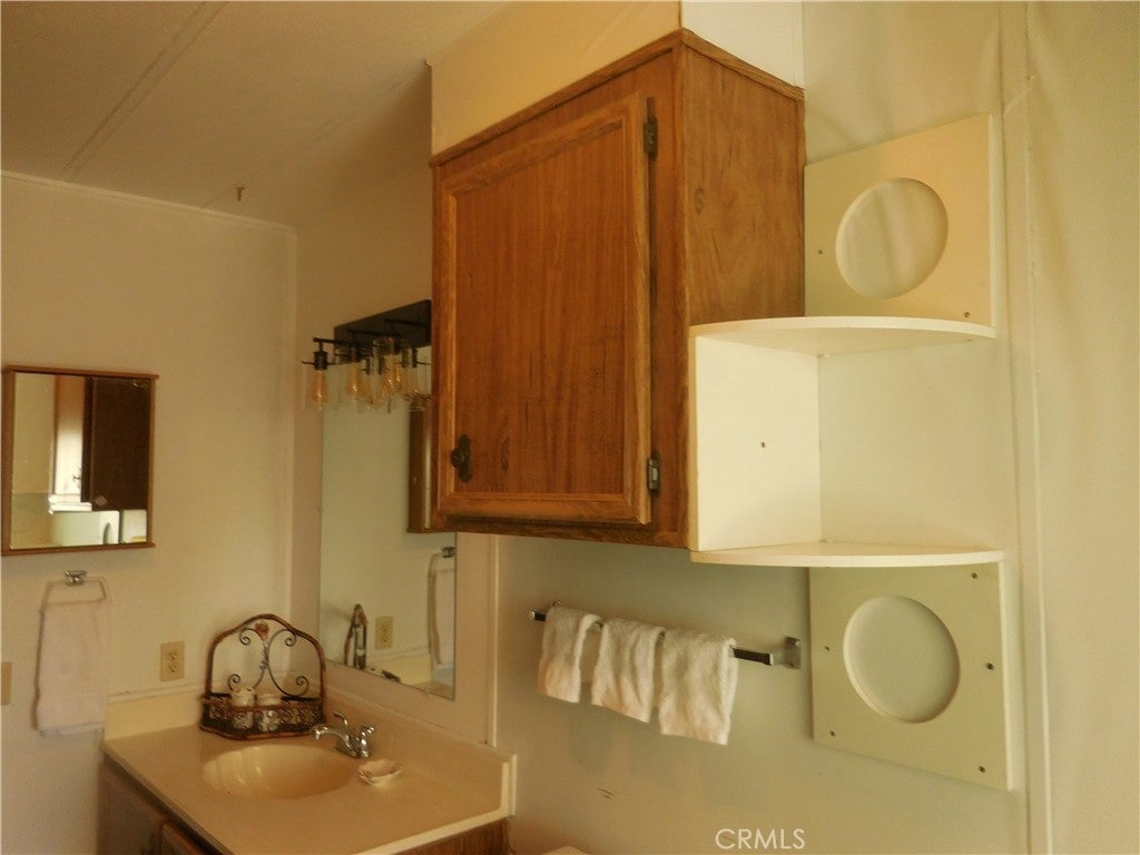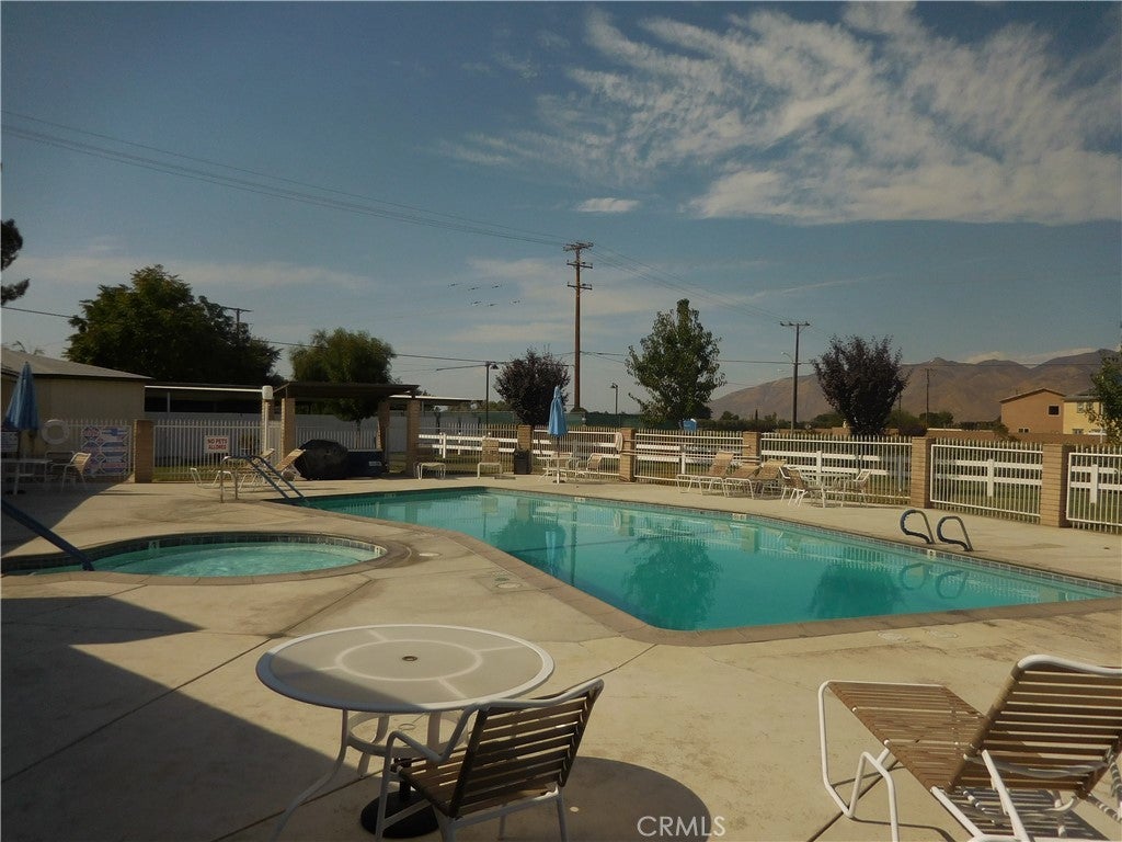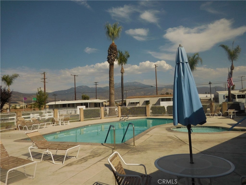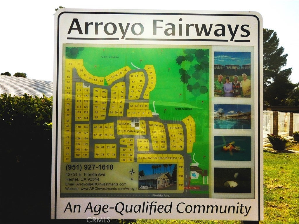 3 Bedroom 2 Bath doublewide 55+ Senior Community at Arroyo Fairways-resort-like living! Arroyo Fairways has many amenities to offer including free use of the 9-hole par 3 golf course, clubhouse, full kitchen facilities, swimming pool/spa, BBQ area, horseshoes, dog run, bingo, shuffleboard, gaming tables, billiards, different activities hosted by the park. Wonderful grounds maintenance keeps the park immaculate! This Park is surrounded by the breath-taking views of the San Jacinto and Idyllwild Mountains. Home is tucked back in a quiet location. Two full length awnings provide shade while allowing an abundance of natural light in! Upon entry you will be greeted with a warm and inviting atmosphere. Living room focal wall ready-wired for your entertainment needs. Other improvements include upgraded kitchen cabinets with pullout drawers, new Formica countertops, laminate flooring throughout (no carpet), remodeled hall bathroom with walk-in shower, roof coating installed 2024, newer energy efficient windows in living room/dining room. Appliances include oven/range, microwave, refrigerator, freezer, washer and dryer. Spacious primary bedroom with large closet. Primary bathroom has ample cabinet space, separate shower and bathtub. Two nice size secondary bedrooms. Dedicated laundry room includes washer, dryer and above shelving with direct access to the carport, two big sheds in the back of the home for extra storage. Minutes to medical facilities, shopping, eateries, movie theater, the famous Ramona Pageant, Soboba Casino Resort for some entertainment outings! If you are looking for comfortable affordable living look no further! Call for your private showing!
