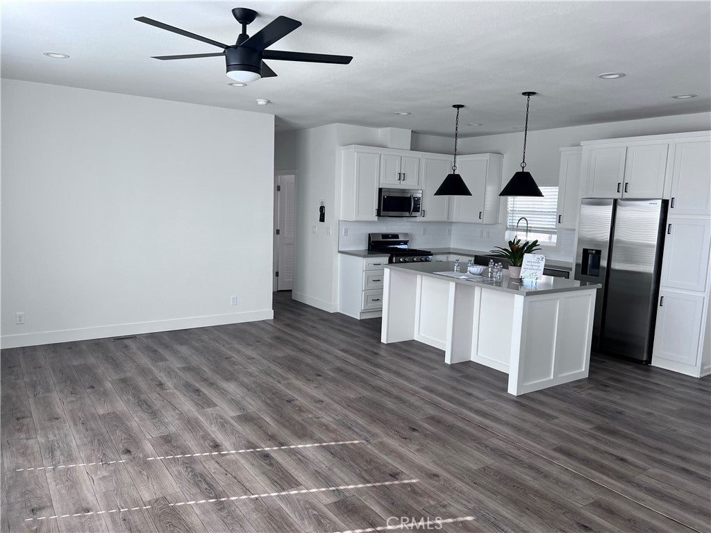 Beautiful Brand NEW ALL Manufactured home 3 bedrooms 2 bath. Open kitchen with a big kitchen island, & big living room area. This home comes with stainless steel appliances, side by side refrigerator dishwasher, stove, over the ranger microwave, central a/c and heating. Window treatment in all windows. high windows, high ceilings. Nice big front porch with brick skirting and a nice planter, two car, carport with awnings. The home is located in the best all age community in Hemet with a large clubhouse, swimming pool, sport court, laundry facility, playground, gym in process, and a gated community to be locked at night.