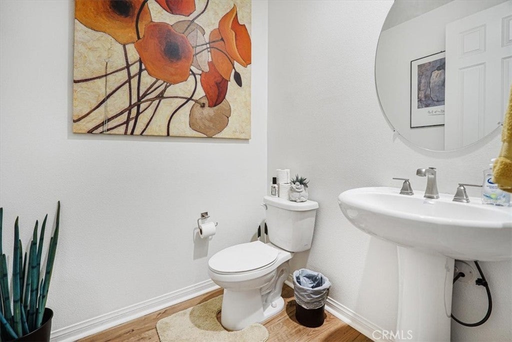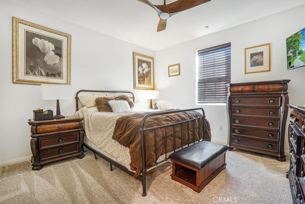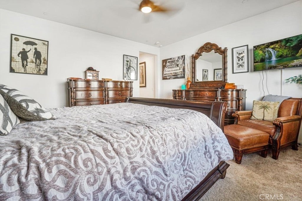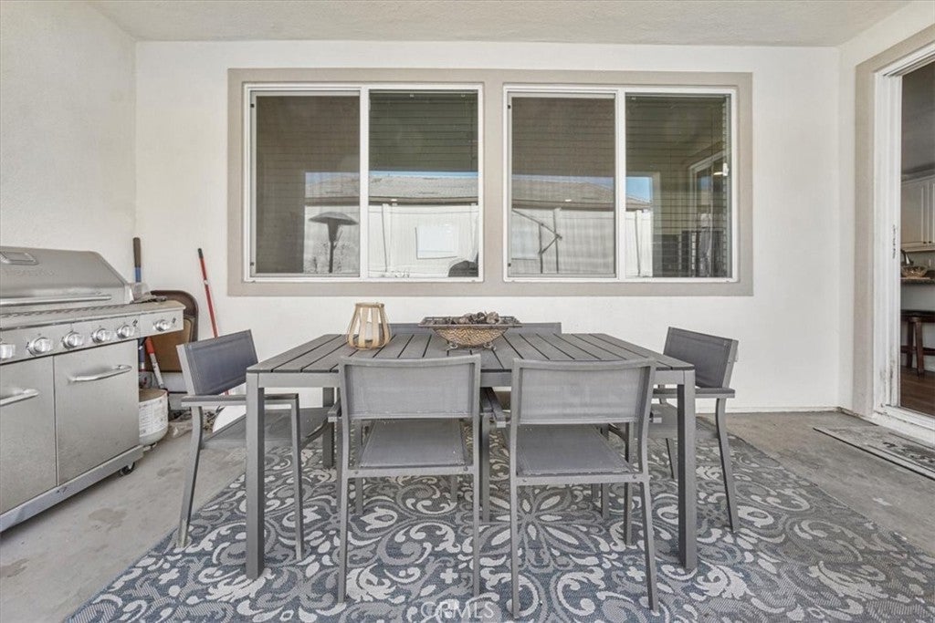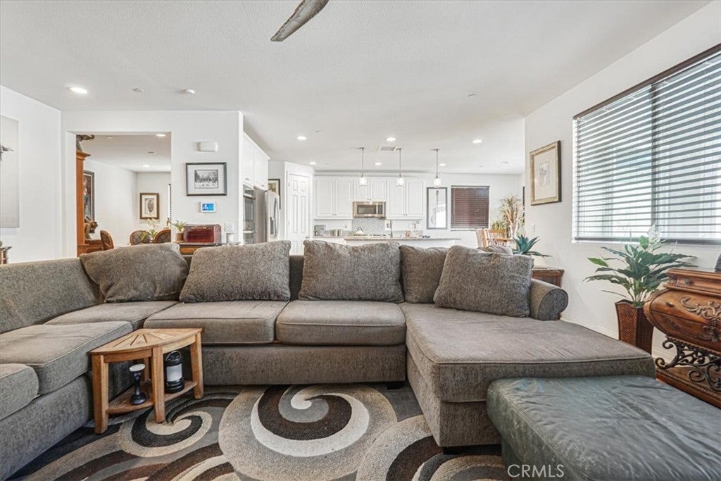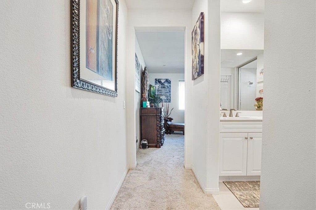 LETS GET TO ESCROW! This desirable home has 3 bedrooms and 2 full baths & oversized powder-room with pedistal sink. The long and inviting entryway leads you to a spacious open floor plan, the engineered wood flooring & neutral color carpeting in bedrooms makes this entire space so cozy and comfy! Who doesn't enjoy natural light! The home offers many options that you need to see to appreciate. There are lots of builder upgrades such as the gourmet kitchen with beautiful white cabinetry, a large walk-in pantry, a spacious Island with breakfast bar, butlers pantry, granite countertops, upgraded stainless steel appliances, which include a gas cooktop, double-oven, a microwave and dishwasher! The dining /breakfast area opens to the kitchen and a spacious family room. Ceiling fans in all rooms. Other home amenities are a large master suite with a huge spa-stlye custom shower, an oversized laundry room with tons of storage and utility sink; window blinds throughout, 8' doors, Private back yard with built-in patio area for your family to enjoy, a side yard area for a possible dog run and astro-turf for all the kings and queens of the castle. Low maintenance front and back yards, block walls. There are dog/child walking and bike trails, kid parks nearby, and the beautiful front view of mountains from your front door can't be beat. Make appointment to see TODAY! BEST PART SOLAR IS PAID OFF!
