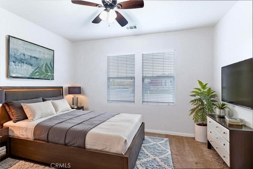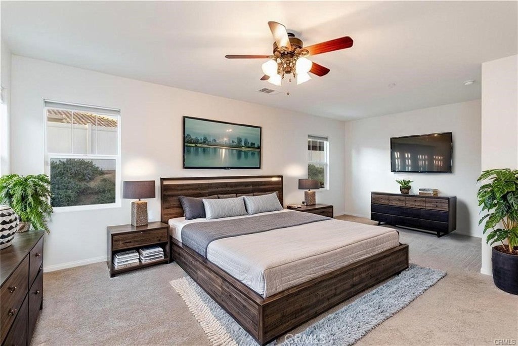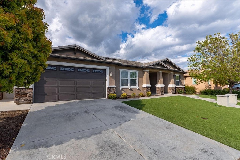 PRICE REDUCTION! MOTIVATED SELLER! This beautiful single-story home in Mahogany Hills offers 4 bedrooms, 3 bathrooms, and 2,894 Sqft of well-designed living space. Situated near the community park, it boasts impressive curb appeal with drought-tolerant landscaping, artificial turf, and a custom concrete entrance. The open-concept floor plan is perfect for modern living, with the kitchen seamlessly flowing into the dining and living areas. The kitchen features granite countertops, stainless steel appliances, and a spacious pantry. The living room is bright and inviting, offering plenty of space for relaxation and entertaining. The primary suite is a true retreat with ample room, while the custom built-in closet provides organized storage. The en-suite master bath offers dual sinks, a soaking tub, and a separate shower. A bonus is the secondary suite, complete with an attached full bath—perfect for guests, extended family, or as a private office space. The home also includes a roomy laundry room and a tandem 3 car garage. With low HOA fees and great community amenities, this is a must see. Don’t miss out—schedule your private showing today! Virtually staged to maximize the ideas of this beautiful blank canvas. Unlimited opportunities to stylish living. **Some photos have been virtually staged for illustrative purposes only. Actual property features may vary.**
