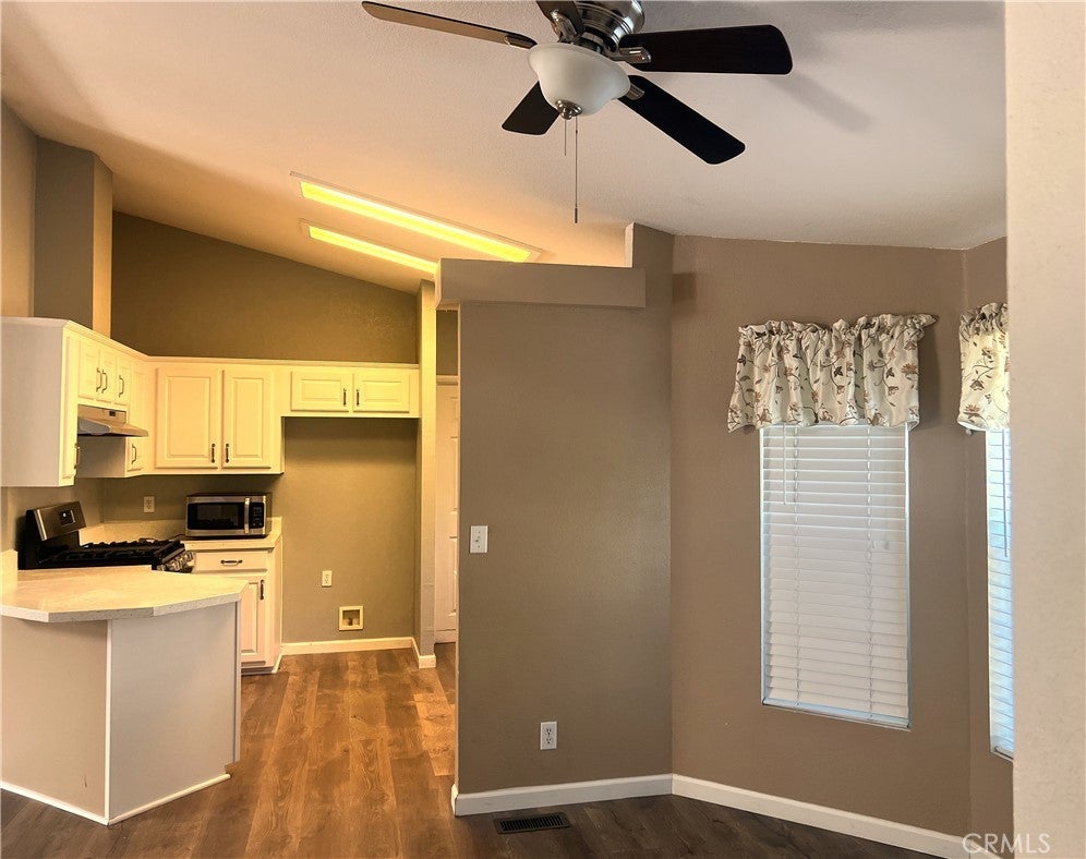 HUGE REDUCTION! THE SELLER IS MOTIVATED! Great for that first time homebuyer as it has no HOA & and a LOW TAX RATE. This SINGLE STORY MANUFACTURED home is located in North Lake Elsinore and is ready to move into. Recently updated with 3 Bedrooms, Two Baths, Living Room, Dining Room, Inside Laundry, Two Car garage, Back Yard for Entertaining, Patio Cover and mature landscaping which includes 6 different fruit bearing trees and vines. 2 apple, 1 orange, 1 plum, 1 apricot, 1 peach. The beautiful vinyl pergo flooring throughout this one-story home makes for easy maintenance and cleaning. Vaulted ceilings throughout create a spacious feeling as you enter the home. The master bedroom has a large wardrobe closet, and slider door leading to the gorgeous back yard and patio. The kitchen was recently upgraded and includes new counters, and cabinets. Home maintains a water softener, and free standing stove. This home is located close to relaxing family parks, a skate park, schools, shopping, dining, extreme sports motor park, sky diving, a boat launch, fishing, boating, and convenient 15 frwy or hwy 74 access for commuters. THIS HOME IS ON A PERMANENT FOUNDATION AND IT WILL QUALIFY FOR FHA,VA AS WELL AS CONVENTIONAL FINANCING.
