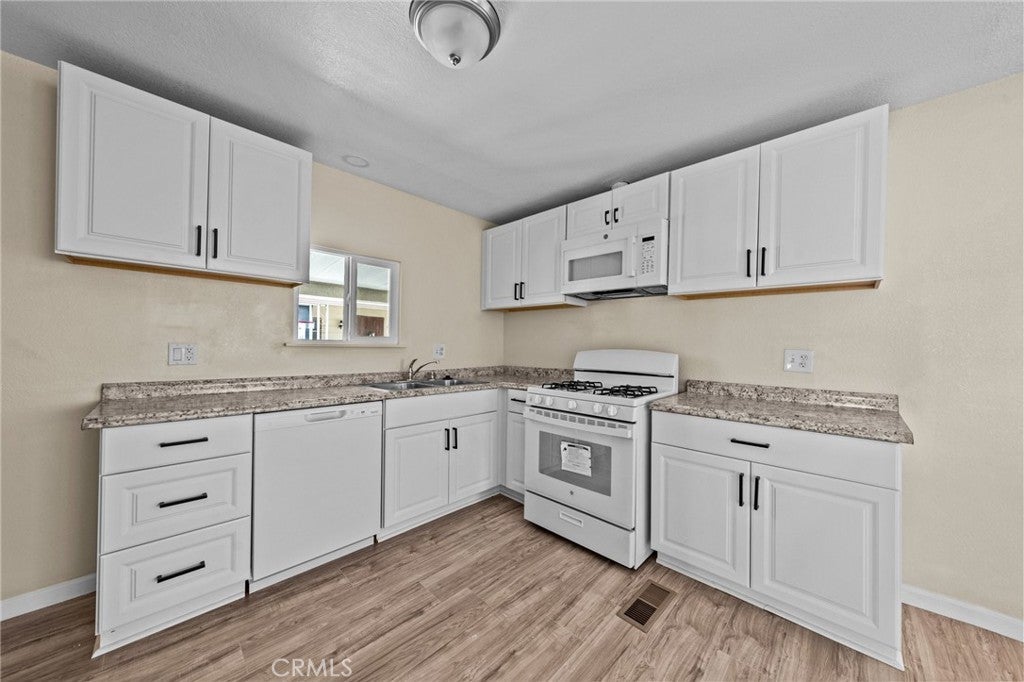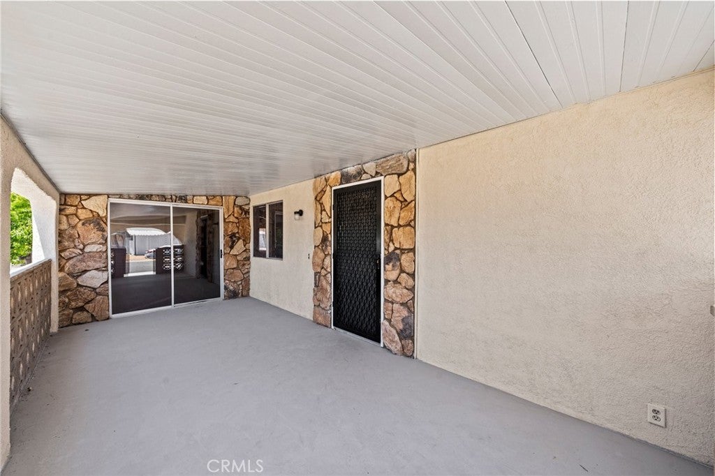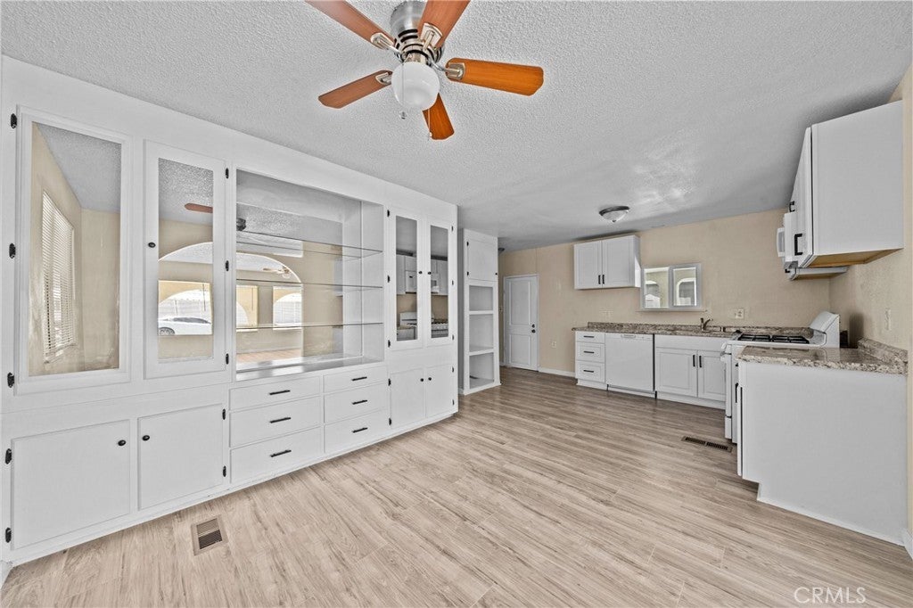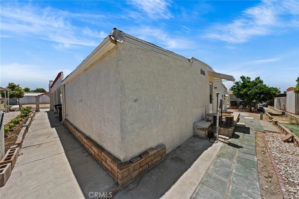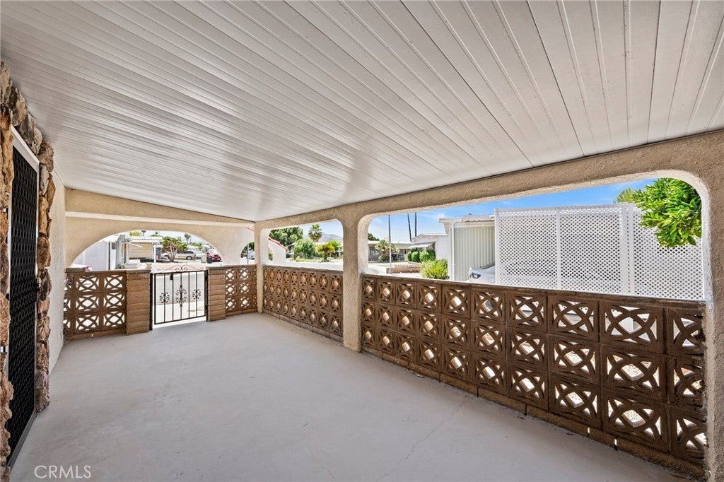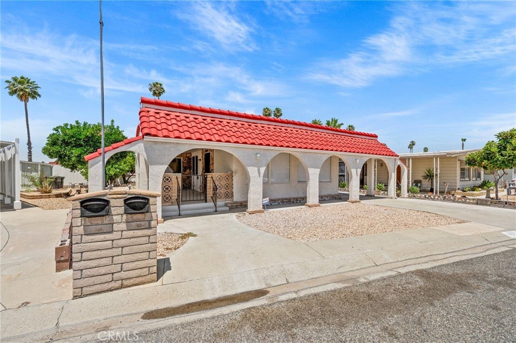 MEDITERRANEAN VILLA - One of a kind manufactured home with stucco exterior. 2 extra-size Bedrooms, 2 Bathrooms, fully remodeled with Fireplace, new flooring, all new kitchen, appliances, cabinets and countertops. Double size bedrooms with room for office, exercise, dressing, lounging, TV. Extra room behind off street covered parking large enough for workshop, home business, hobbies, crafts, or storage. Also locked storage room in the rear. This 55+ affordable senior community is in the heart of Hemet and offers the perfect blend of relaxation and excitement, with access to 5 pools, 4 Club Houses, 4 Jacuzzi's, fitness center, pickleball, Shuffleboard, dog park and organized activities. You will have endless opportunities to socialize, making it one of the hottest spots in Hemet. The best part, you have Low taxes and HOA fees, including cable TV.