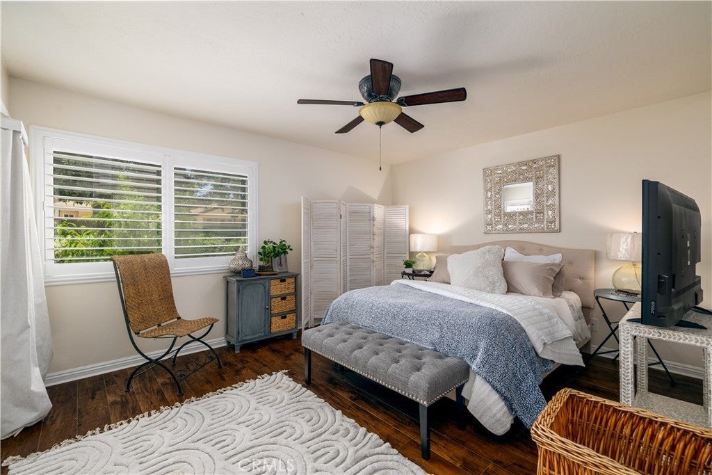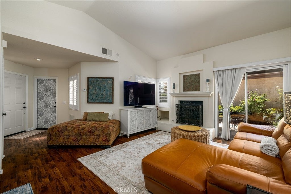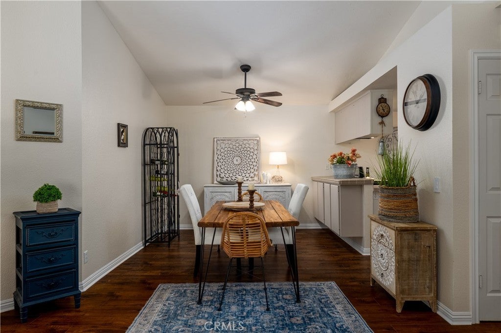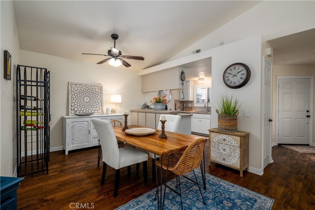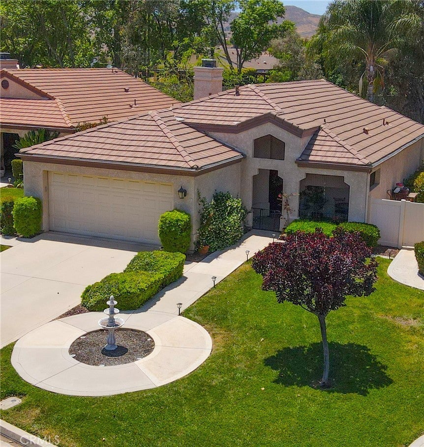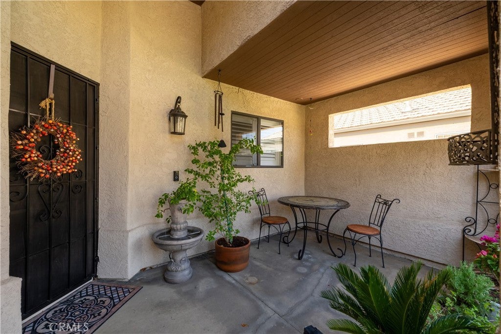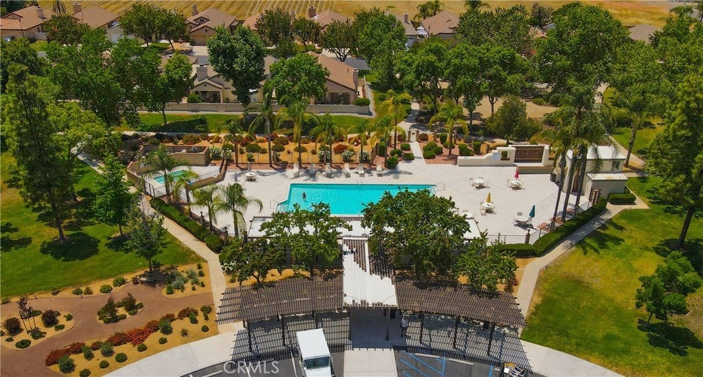 Welcome to this stunning home in the beautiful Casa Murrieta 55+ community, Menifee. This single-story, two-bedroom one bath home offers the perfect blend of comfort and functional space. One can’t help but appreciate the open concept with vaulted ceilings and textured engineered wood flooring throughout the home. The foyer entry opens into the living and dining areas which boasts high ceilings including a floor-to-ceiling mirrored wall that adds extra dimension to the reflecting space. Three-inch plantation shutters and white baseboard finishes are throughout the home. Light/bright kitchen features stone-tile countertops and stainless-steel appliances. The primary bedroom is highlighted by having mirrored closet doors and built-ins for organization. Both bedrooms feature ceiling fans with large windows allowing natural light with direct access to the wrap around backyard/patio. Bathroom offers convenience with modern-appeal, a walk-shower, tile, with custom glass door. The backyard and patio create an ideal space for entertaining or relaxing. Enjoy the multiple fruit bearing trees which include navel oranges, lime, and two types of plum trees. No neighbors are directly behind with backyard gate access to greenbelts. The Low-maintenance mature landscape has new driplines, and wireless BEHIVE programable sprinkler system. Direct garage access from both the house and side yard, including automatic garage door/opener, work bench, storage shelving, with washer/dryer/hookups *This home will not disappoint! Casa Murrieta community is a beautifully maintained and gated+ community. HOA includes front mowing/landscape, pool, jacuzzi, showers, greenbelts, and walking paths in a park-like setting.