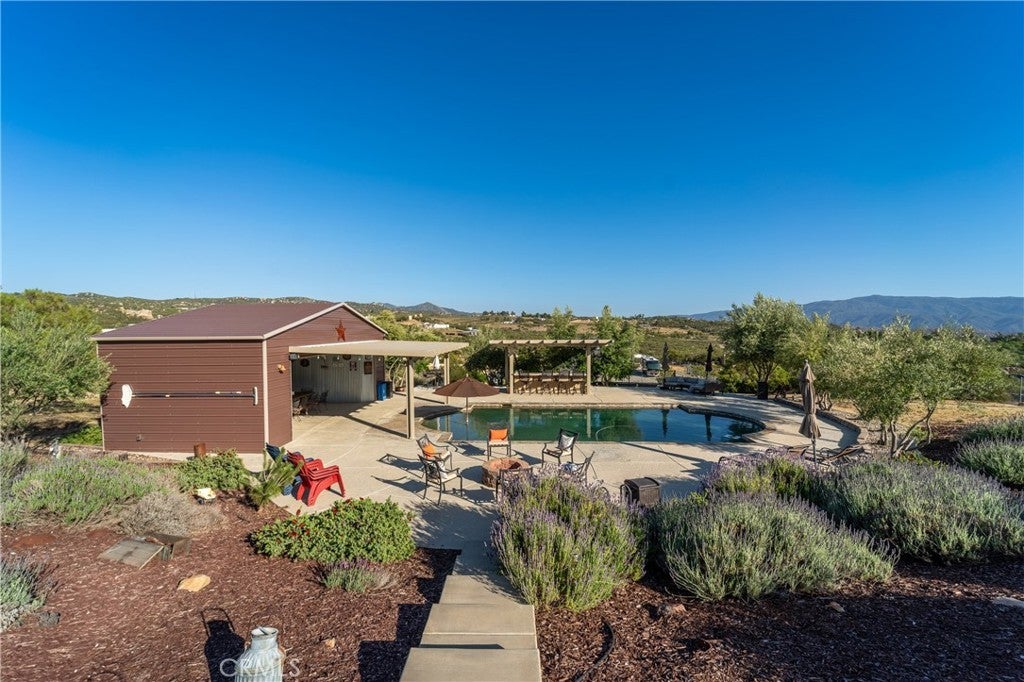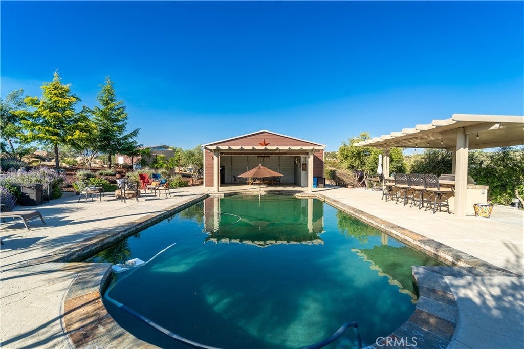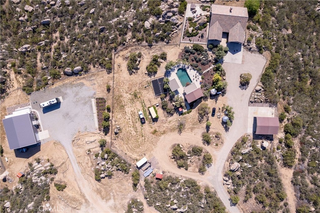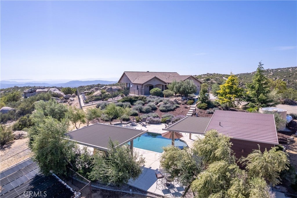 Two custom homes- (GUEST HOUSE) on 19.97 acre lot in Aguanga! Great access/location close to highway 371. Both homes have FULLY upgraded finishes throughout! 2 workshops one for each home plus standard garage on main home. For entertaining you will love the inground pebble tech pool and pool house with bathroom and built in BBQ area. This property is surrounded by county preserve on 3 sides for immense privacy. The main home has 3 bedrooms and 3 bathrooms with an elevated location to best enjoy the gorgeous views of mountains, sunsets, valley, lake, and city lights. Large great room concept with fireplace in the living room. There are 2 master suites, tile floors throughout the home, Anderson doors and windows (triple pane windows). Kitchen has Kraft Maid custom cabinetry, beautiful granite countertops with backsplash. Outside there is a wrap around porch along with patio's, Jacuzzi, 2 firepits. Tasteful and professionally maintained landscaping awaits you outside and around the pool area. There is a 2 car garage and 1500 SF workshop. There is fencing and multiple cross fencing around the improved areas of this property, the entry has automatic gates one for each home. The guest home/ ADU is a distance from main home and approx. 1500 SF with 2 bedrooms and 2 bathrooms, open great room with beautiful upgraded kitchen, wood stove in living room. This home has vinyl flooring, quartz countertops including an enormous island in the kitchen, fully upgraded bathrooms. There is a 4 car garage/workshop with second home, outdoor alumawood covered patio and RV hookups. The pool area is absolutely spectacular with lots of cement patio space, landscaping and a wonderful pool house with bathroom and alumawood covered patio plus a separate covered BBQ area, solar heating, salt water pool. There is also a 24 KW automated back up generator, gravel driveway. Too many upgrades to list contact agent for a full list. This is an amazing property waiting for its new owner to arrive to view it. This property is located about 20 minutes from Temecula. ***** Be Sure to check out virtual tour with video and 3d tour of home *****