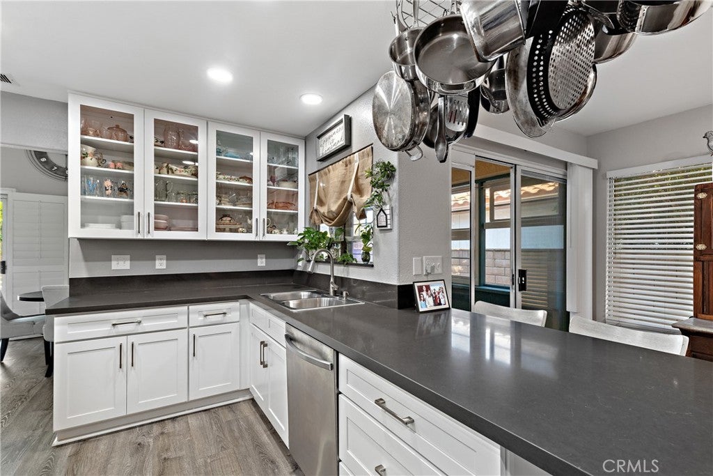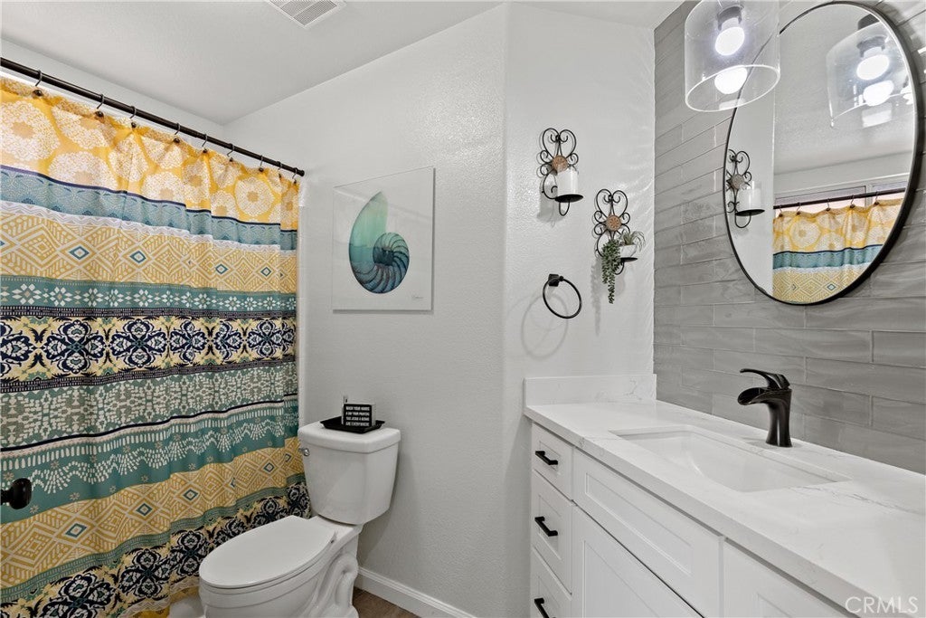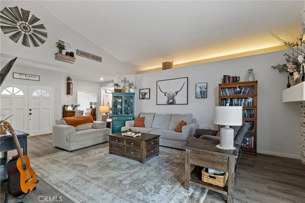 Welcome to 1874 Balsawood Dr a fully remodeled, completely move-in ready 55+ home where every detail has been thoughtfully updated for modern living. From the moment you step inside, you’ll notice the attention to detail throughout, starting with the newer vinyl plank flooring, recessed lighting, ceiling fans, and extra-wide hallways with double door entries providing easy wheelchair access to the primary bedroom, guest room, and front entry. The heart of the home is the gorgeous, fully upgraded Koville high-end kitchen cabinets featuring quartz countertops, stainless steel appliances! The spacious primary suite offers his and hers closets, a newly remodeled large walk-in tile shower, separate makeup counter, and upgraded bathroom vanity. The guest bathroom has also been beautifully updated with a floor-to-ceiling backsplash, new tile, and a modern vanity. The living area is warm and inviting, highlighted by a stunning floor-to-ceiling German smear brick fireplace with a custom mantle, while the enclosed patio with vintage windows and vinyl plank flooring offers additional living space perfect for year-round enjoyment. Comfort and peace of mind continue with a mini-split A/C and heating system in the master bedroom, a brand new water heater, an emergency 30-amp backup generator hookup, and a natural gas BBQ hookup ready for your outdoor gatherings. The outdoor space is an absolute oasis, designed for both beauty and low-maintenance living. Enjoy 13 mature fruit trees including Tangelo, Lemon, Navel Orange, Ruby Red Grapefruit, Cherry, Santa Rosa Plum, Granny Smith Apple, Crab Apple, Mission Fig, Cumquat, Passion vine, passion fruit, and two Peach trees all serviced by an automatic drip irrigation system. The rock landscaping features native plants also on a drip system, with a small grass area on timed sprinklers perfect for your furry friend. A spacious covered multi-level patio spans the full width of the home, while the front porch features a charming pergola with blooming Bougainvillea. In addition, a separate 10x12 paver patio offers flexible space for a jacuzzi, entertainment area, or raised garden beds. Every inch of this home has been thoughtfully updated and cared for. Nothing has been overlooked just bring your furniture, move in, and enjoy the beautiful Southern California lifestyle this home offers!