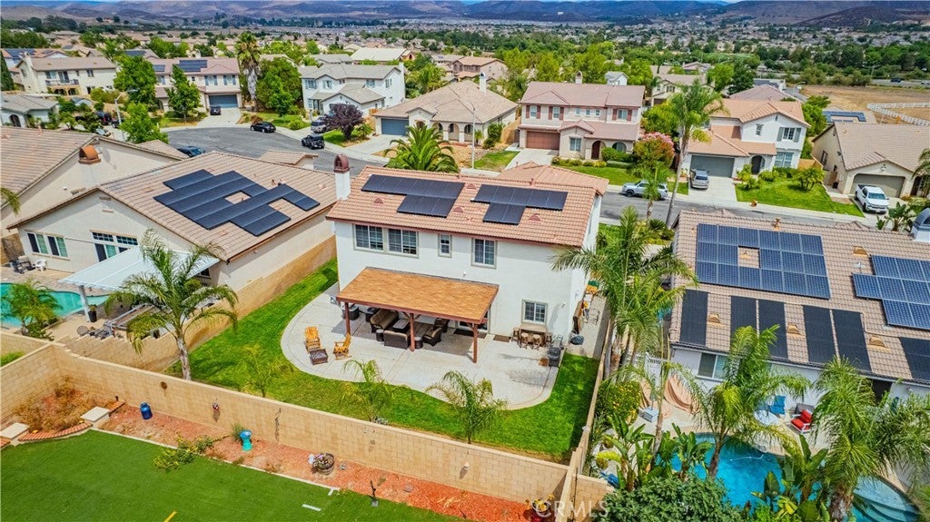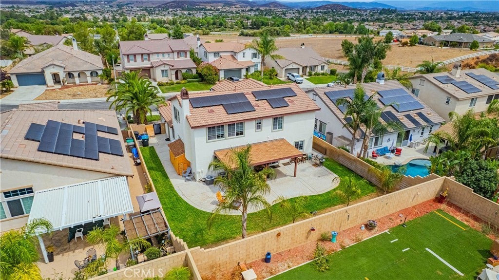 **SELLER TO PAY OFF SOLAR POWER PURCHASE AGREEMENT IN FULL AT THE CLOSE OF ESCROW** This Winchester Luxury Home with Designer Upgrades & Pool-Sized Yard is offered at $679,900! This stunning 5-bedroom, 3-bath home offers luxury, space, and unbeatable value! Nestled on a quiet cul-de-sac in Winchester, this 3,212 sq. ft. home features a beautifully remodeled kitchen with white quartz counters, black granite sink, stainless steel appliances, large island with bar seating, and wine fridge. Enjoy elegant touches throughout including luxury vinyl plank flooring, custom black barn doors, and designer lighting. The spacious family room includes a custom bar and second wine fridge — perfect for entertaining! Upstairs, the oversized primary suite boasts a large walk-in closet and spa-like bath with a sunken tub and separate shower. The pool-sized backyard offers a covered patio, lawn, and privacy slope. Additional highlights include a 3-car tandem garage with EV charger, solar, whole house fan and water softener systems. Conveniently located near Temecula’s shopping, dining, and entertainment. Additional features include: Solar, 3-car tandem garage with storage racks and EV charger, and paid off ADT security system. Buyer must pay monthly subscription. Home also features a new water filitration/softener system. Close to the heart of Temecula’s wineries, shopping, breweries, and exciting new restaurants, this home truly offers the best of both comfort and convenience. Don’t miss your opportunity to make it yours!