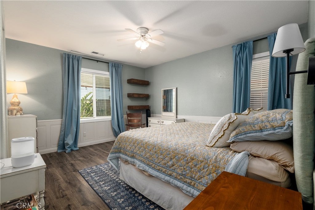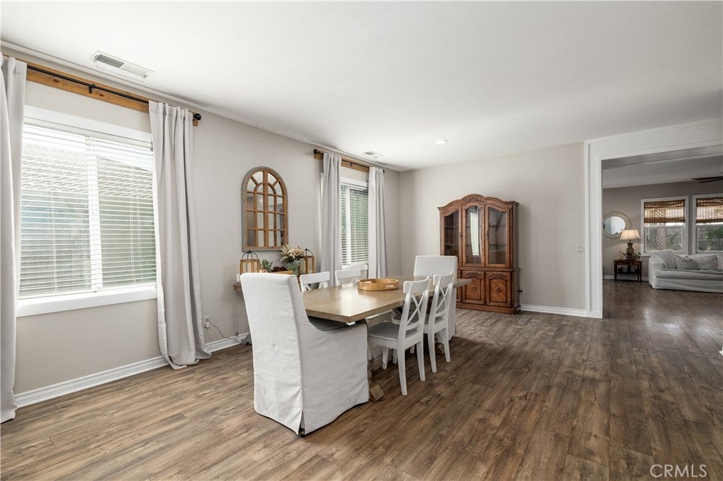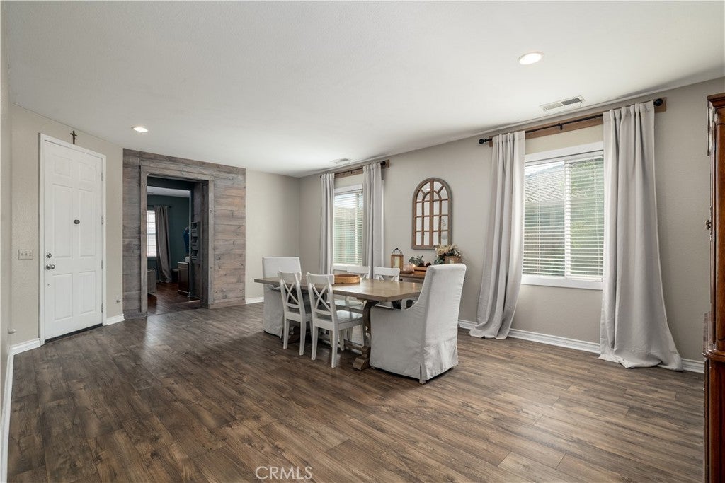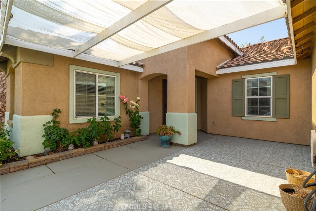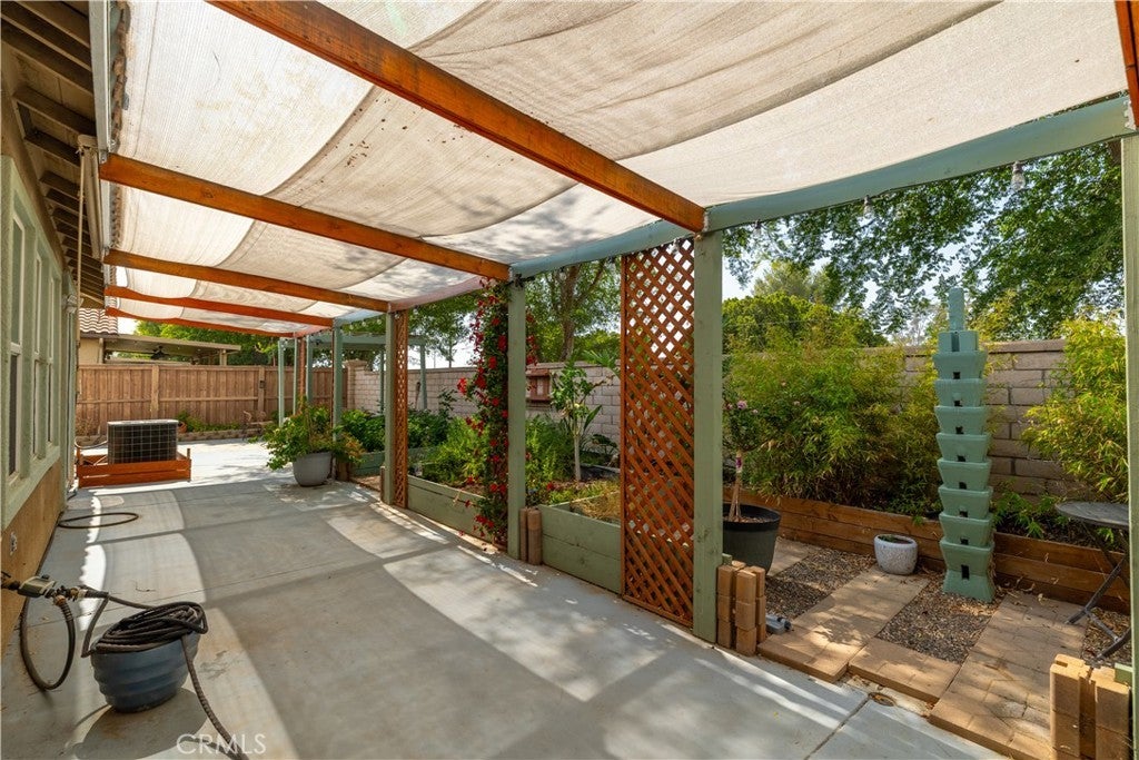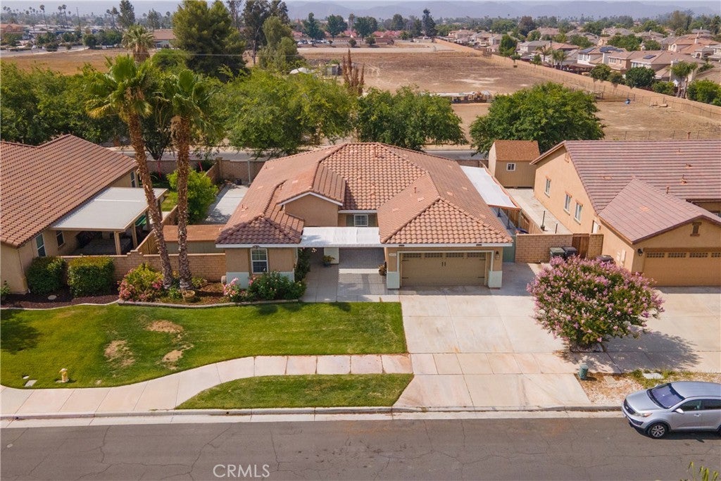 This home qualifies for a $20,000 grant which can be used for down payment and/or closing costs! Beautifully Upgraded 4-bedroom Single Story home with office/potential 5th bedroom. Featuring 2.5 bathrooms and NO HOA with Low Taxes, this home offers both style and value! RV Potential and NO REAR NEIGHBORS! Step inside to find custom touches throughout, including elegant wainscoting, wood accents, upgraded light fixtures, and durable laminate flooring. The kitchen is a cook’s dream with a center island, and newer stainless steel appliances — perfect for entertaining! The spacious primary suite is your private retreat, featuring two walk-in closets and an elegant ensuite bathroom with dual sinks, a soaking tub, and a separate walk-in shower. Enjoy meals in the stunning formal dining room, ideal for family gatherings. The front courtyard is lush and inviting, while the backyard is a true retreat with no rear neighbors, a shaded wrap-around patio, cool decking, garden boxes, mature trees, and large side yards — offering plenty of space and privacy. RV potential adds even more value. Located near shopping, dining, and schools, this unique property blends comfort, convenience, and charm. Don’t miss your opportunity to own this one-of-a-kind home in a prime Hemet location!