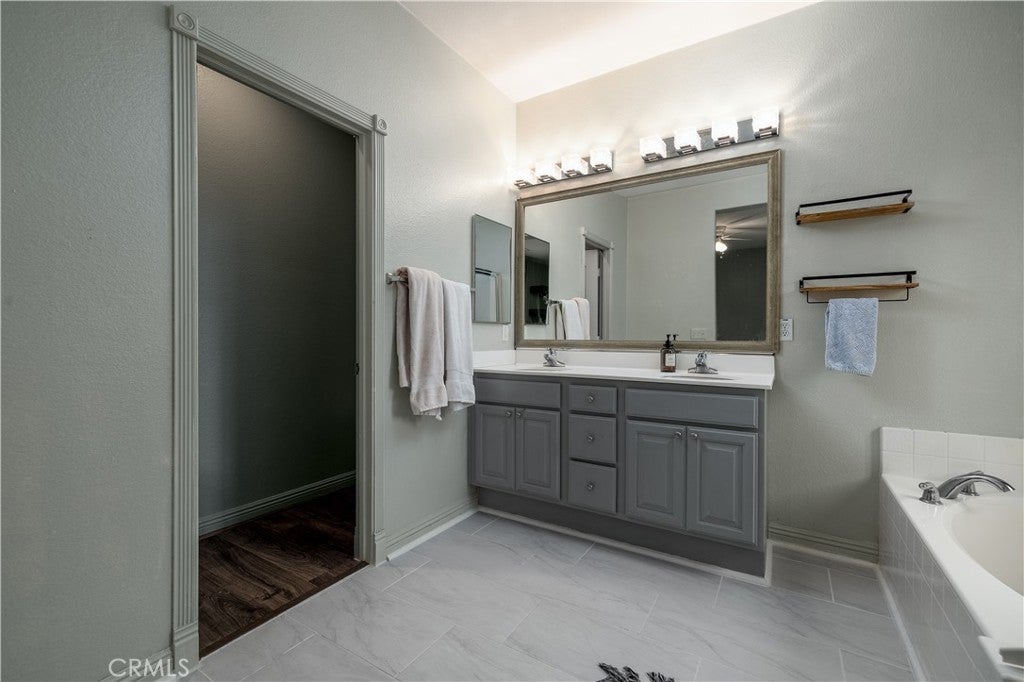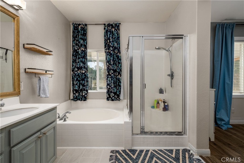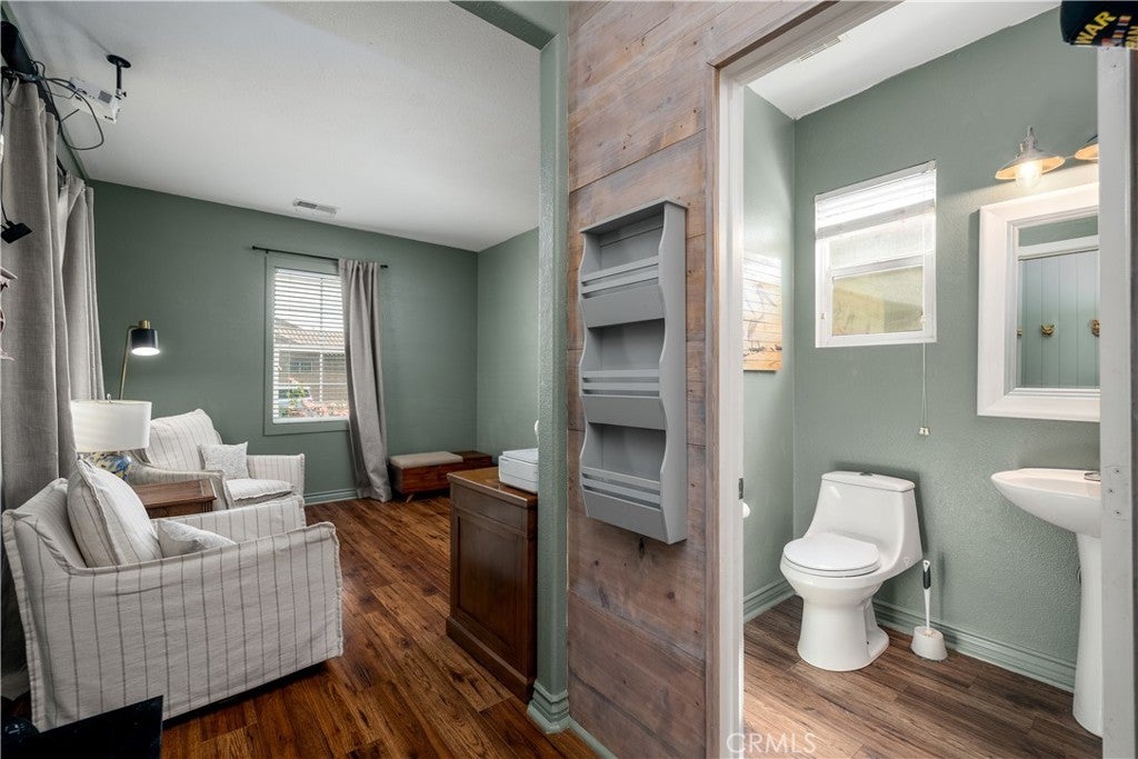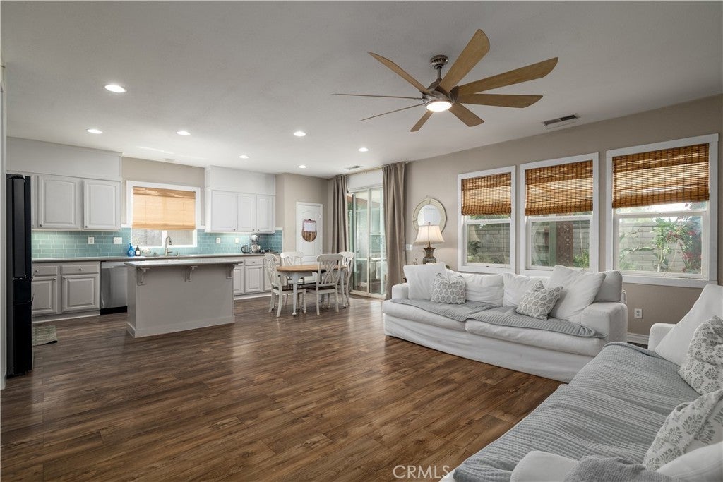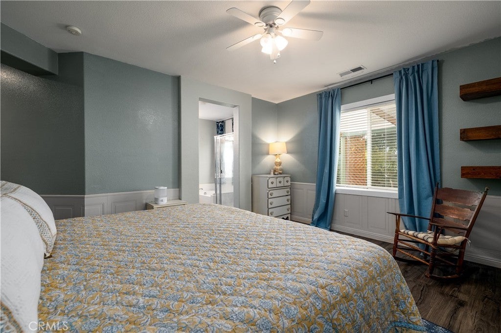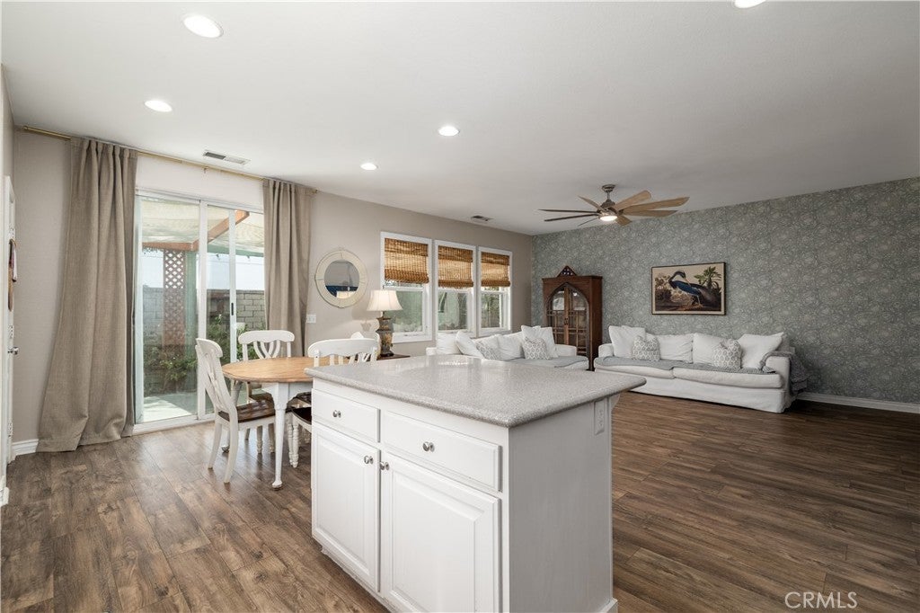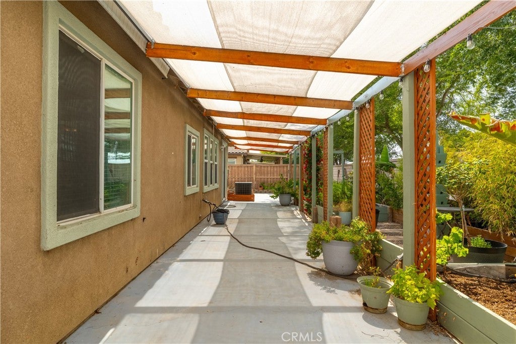 This home qualifies for a $20,000 grant which can be used for down payment and/or closing costs! Beautifully Upgraded 4-bedroom Single Story home with office/potential 5th bedroom. Featuring 2.5 bathrooms and NO HOA with Low Taxes, this home offers both style and value! RV Potential and NO REAR NEIGHBORS! Step inside to find custom touches throughout, including elegant wainscoting, wood accents, upgraded light fixtures, and durable laminate flooring. The kitchen is a cook’s dream with a center island, and newer stainless steel appliances — perfect for entertaining! The spacious primary suite is your private retreat, featuring two walk-in closets and an elegant ensuite bathroom with dual sinks, a soaking tub, and a separate walk-in shower. Enjoy meals in the stunning formal dining room, ideal for family gatherings. The front courtyard is lush and inviting, while the backyard is a true retreat with no rear neighbors, a shaded wrap-around patio, cool decking, garden boxes, mature trees, and large side yards — offering plenty of space and privacy. RV potential adds even more value. Located near shopping, dining, and schools, this unique property blends comfort, convenience, and charm. Don’t miss your opportunity to own this one-of-a-kind home in a prime Hemet location!