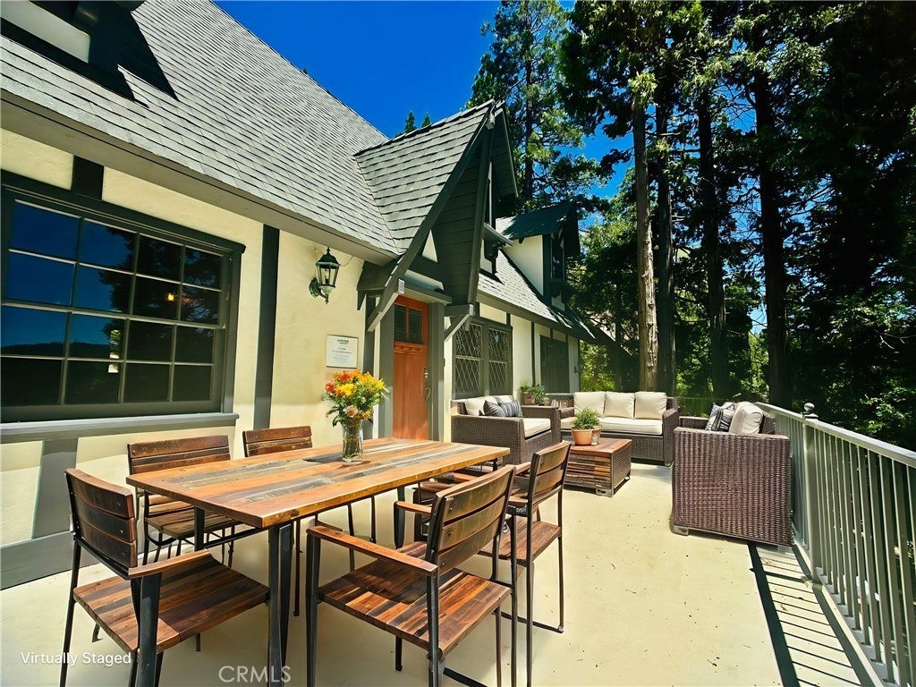 Tucked beneath a canopy of soaring pines, this enchanting 3-bedroom, 2-bath mountain cottage in Lake Arrowhead has charming accents each way you turn, with full lake privileges included. Inside, you’ll find an open, light-filled layout with vaulted ceilings, a cozy loft, and newly stained wood throughout. Large windows invite the forest views in, creating a serene, storybook ambiance. The updated kitchen comes fully equipped, and the upstairs laundry area is pure convenience. Step out onto the expansive front deck to soak in incredible treetop vistas and mountain air—your private alpine escape awaits. All appliances are included, making this home truly turnkey. The backyard has a fully fenced area as well as a level pad for your best laid plans. Located within walking distance of Lake Arrowhead Country Club.