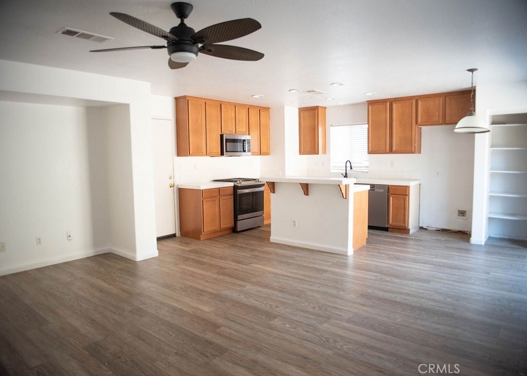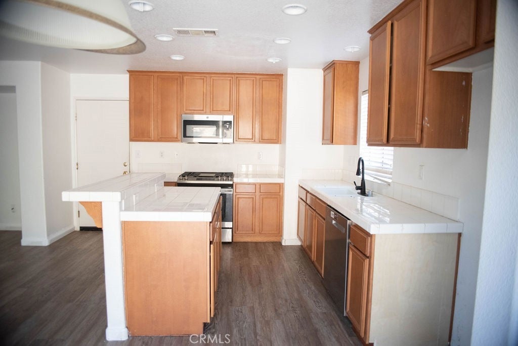 Best Deal in Menifee! Located in the highly desirable neighborhood of Canyon Heights, this spacious 5-bedroom, 3-bath home is a fantastic opportunity for buyers looking for value and instant equity. This is a short sale with a bank appraisal of $630,000, but the bank is open to lower offers—don’t miss your chance! This well-designed home offers 2,469 Sq Ft of living space on a generous 10,019 Sq Ft lot. The layout includes 2 bedrooms and 1 full bathroom on the first level, perfect for guests or multi-generational living. The main floor features durable vinyl flooring, while the upstairs offers comfortable carpeting throughout. Enjoy a large family room that opens to the kitchen with a center island, ideal for entertaining. Upstairs, you'll find a spacious loft, individual laundry room, primary suite with en-suite bath, and 2 additional bedrooms. The backyard is a great size and perfect for entertaining, relaxing, or creating your dream outdoor space. Canyon Heights is a quiet, well-kept community with just 396 homes, known for its low property tax rate, elementary school, and large grass field that hosts events throughout the year. This is a rare opportunity to own a spacious home in a great neighborhood at a price you won’t find elsewhere. Act fast!