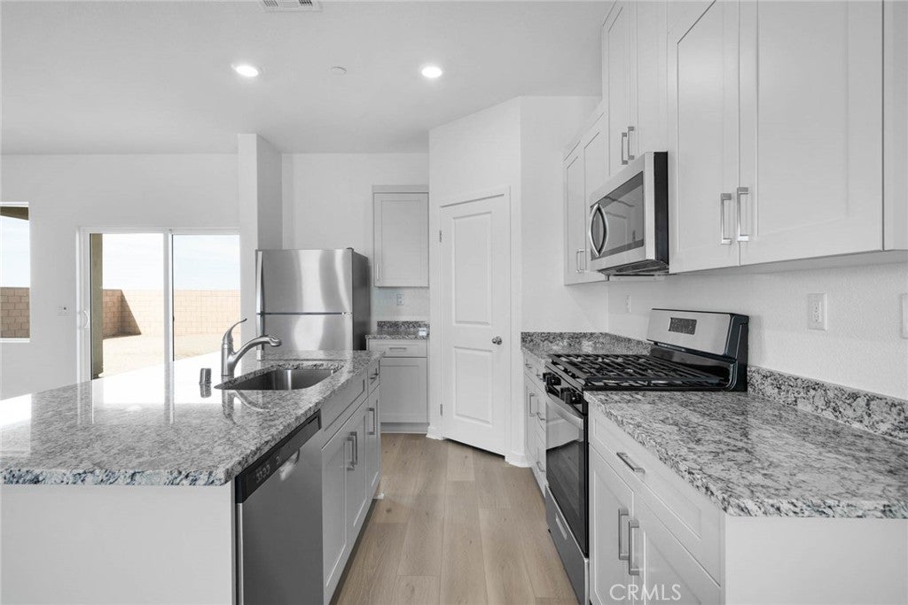 Hermosa Make first impressions count with this beautiful new construction home in Victorville. This single-story, three-bedroom, two-bath home is bursting with character. This home offers an incredible, open layout, creating a warm, inviting environment. The kitchen is open to the family room, creating the ideal entertainment area. The master suite is the perfect place to retreat to, with an en-suite bathroom with a large shower and a walk-in closet. All upgrades come included in this home such as granite countertops, energy-efficient kitchen appliances, a Wi-Fi-enabled garage door opener, solar panels and more. CAL DRE #02064225, LGI Realty - California, Inc.