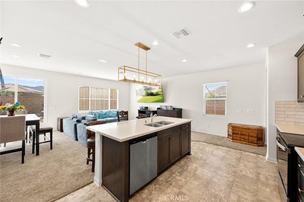 Welcome to this beautifully upgraded 4-bedroom, 2-bath home located in a quiet and desirable Menifee neighborhood. Just a short stroll from Underwood Park, this corner lot property offers the perfect blend of modern style and everyday practicality. Inside, you’ll find a thoughtfully designed open layout with upgraded countertops, new cabinetry, and built-in surround sound speakers, perfect for entertaining or relaxing in style. The kitchen is both functional and beautiful, ideal for cooking up your favorites or hosting family and friends. Energy efficiency is top of mind with solar panels and a dedicated EV charging station, making this home as eco-friendly as it is future ready. Enjoy the peace of a well-established neighborhood while staying close to schools, parks, shopping, and easy commuter access. Whether you’re relaxing indoors or taking a walk to the nearby park, this home has everything you need.