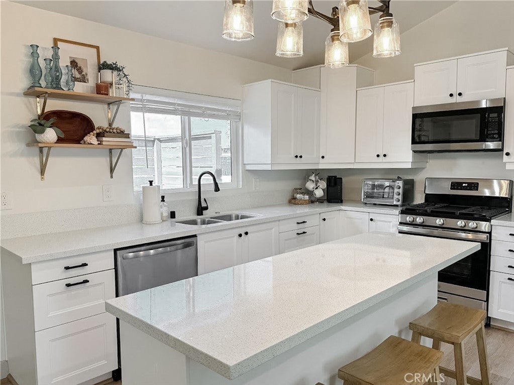 • Interior FeaturesBreakfast Area, Ceiling Fan(s), All Bedrooms Down, Bedroom on Main Level, Main Level Primary, Primary Suite, Beamed Ceilings, Breakfast Bar, Cathedral Ceiling(s), Eat-in Kitchen, In-Law Floorplan, Open Floorplan, Pantry, Quartz Counters, Recessed Lighting