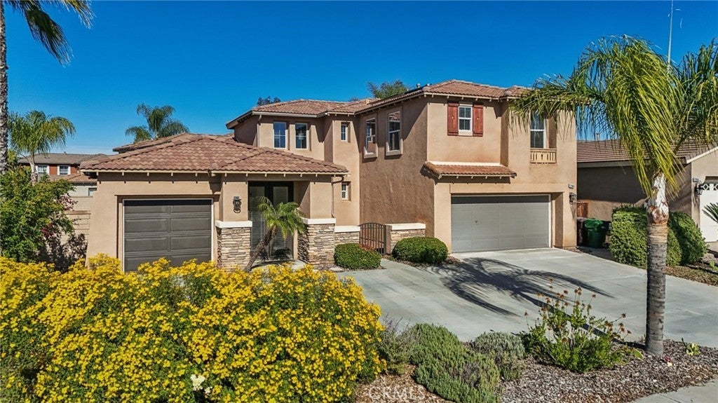 Executive Living in the Highly Desirable Morning Star Ranch Community of Winchester Welcome to this expansive and beautifully updated executive residence, offering the ideal blend of luxury, comfort, and versatility. Located in the sought-after Morning Star Ranch community, this 2-story home features 4 spacious bedrooms, including a main-level primary suite, and 2.5 bathrooms, with a generous 3,157 square feet of thoughtfully designed living space. Enjoy cozy evenings by two gas fireplaces—one in the main living room and another in the family room—adding warmth and charm throughout. Situated on a premium corner lot at the entrance of a quiet cul-de-sac, this home enjoys exceptional privacy, enhanced curb appeal, and a sprawling 8,712+ square foot lot. A charming private courtyard entry with a tranquil fountain welcomes you into this elegant home. Step inside to a freshly updated interior, showcasing new paint and modern flooring throughout, setting the stage for stylish and comfortable living. The gourmet kitchen is a chef’s dream—perfectly equipped for both everyday functionality and effortless entertaining. This home offers unique features, including a separate double-door entry to a private room ideal for a home office, guest suite, or potential ADU, providing flexibility for multigenerational living or rental income potential. The three-car attached garage adds incredible utility. This home is equipped with high-efficiency solar panels. Additional highlights: • No HOA • Lower property taxes • Close proximity to top-rated schools, parks, shopping, medical facilities, and Temecula Wine Country This is a rare opportunity to own a one-of-a-kind home in one of Winchester’s most desirable neighborhoods. A true must-see!