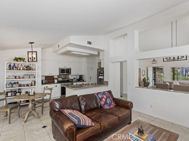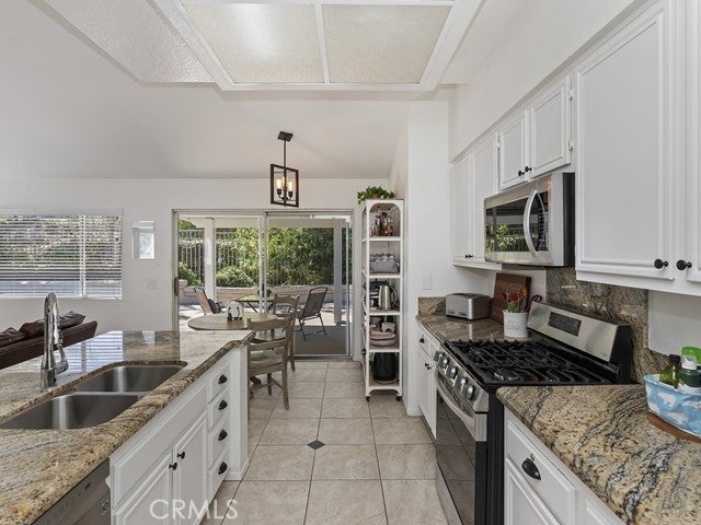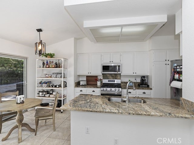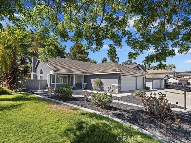 Welcome to this charming and thoughtfully updated single-level home, tucked away on a peaceful cul-de-sac in the highly sought-after Paloma Del Sol community. No rear neighbors. Step inside to discover a bright and open floorplan featuring vaulted ceilings and an abundance of natural light from numerous windows. Charming home with front porch and open floor plan. Durable tile flooring throughout the main living areas and carpet in the bedrooms. Off the entry, you’ll find a formal living and dining room that flows effortlessly into the spacious kitchen and family room. The kitchen is a standout with its bright white cabinetry, granite countertops, large pantry, breakfast nook, and bar seating. The family room is anchored by a tile-accented fireplace and looks out onto the greenery of the private backyard. Enjoy the outdoors in the low-maintenance backyard, complete with a spacious concrete patio, mature trees, and backs up to greenbelt with no rear neighbors. Down the hallway are four bedrooms, two full bathrooms, and convenient access to the attached 3-car garage. The primary suite is a peaceful retreat with vaulted ceilings, a ceiling fan, walk-in closet, and an en suite bath. Best of all, enjoy Temecula’s 4th of July fireworks show right from your backyard! Paloma Del Sol offers incredible amenities including pools, spas, parks, playgrounds, walking trails, and picnic areas. All just minutes from excellent schools, shopping, and dining. Fantastic location!