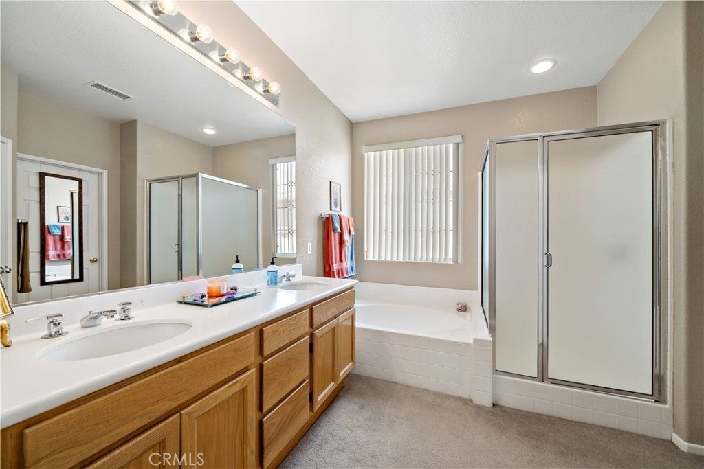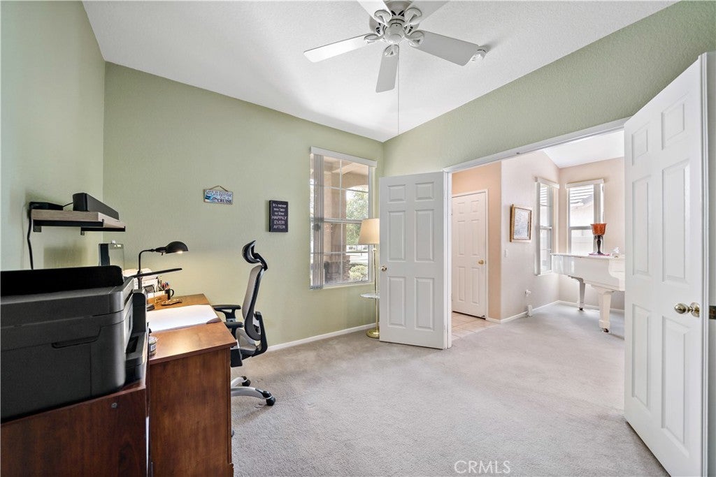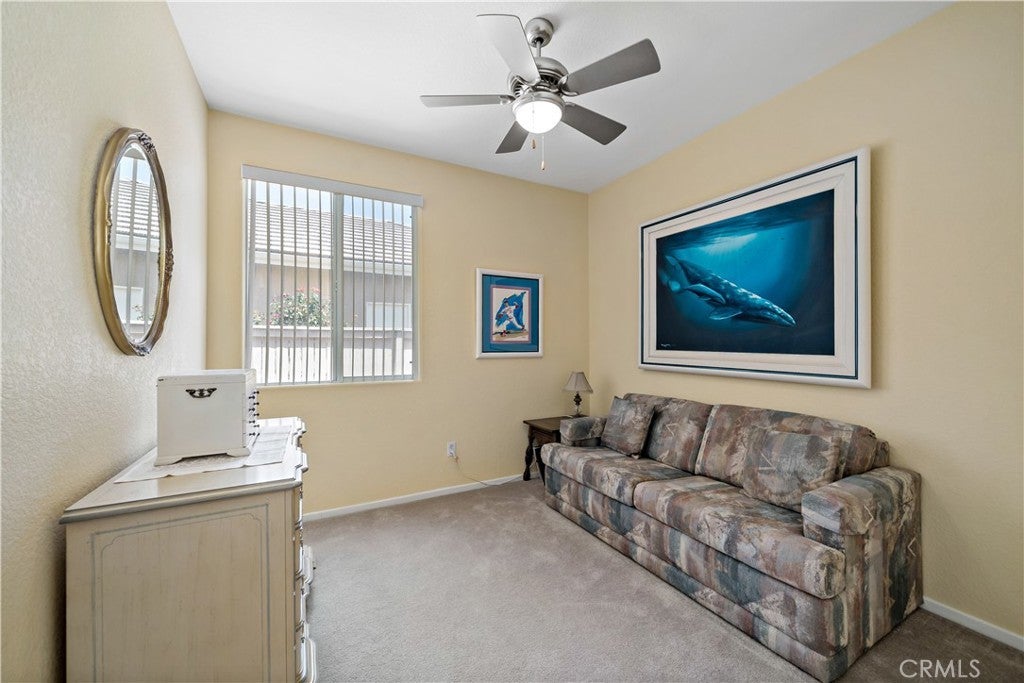 PRICE REDUCED. Charming Single-Story Home in the Sought-After 55+ Oasis Community. Welcome to this beautifully maintained 2-bedroom, 2-bathroom, 1,649 sq ft single-story home with an additional office or den that can easily serve as a 3rd bedroom. Located in the highly desirable Oasis community in Menifee, this home offers the perfect blend of comfort, style, and low-maintenance living. Step into a bright and open layout featuring upgraded quartz countertops in the kitchen, newer appliances, and a convenient breakfast bar that flows into the inviting family room. The informal dining area is perfect for everyday meals or casual entertaining. The separate living room also can accommodate a formal dining area or be used as an additional living space or great room. The spacious family room boasts vaulted ceilings, a cozy fireplace, and a French door leading to a serene backyard with a covered patio—ideal for relaxing or hosting guests in a peaceful, easy-care landscaped setting. The generous sized primary suite includes a large walk-in closet and a luxurious en-suite bathroom with dual sinks, a separate soaking tub, and a walk-in shower. Enjoy all the benefits of resort-style living in The Oasis, including a clubhouse, pool, spa, pickleball courts, and a full calendar of social events and activities. Whether you seek tranquility or a vibrant community lifestyle, this home offers it all.