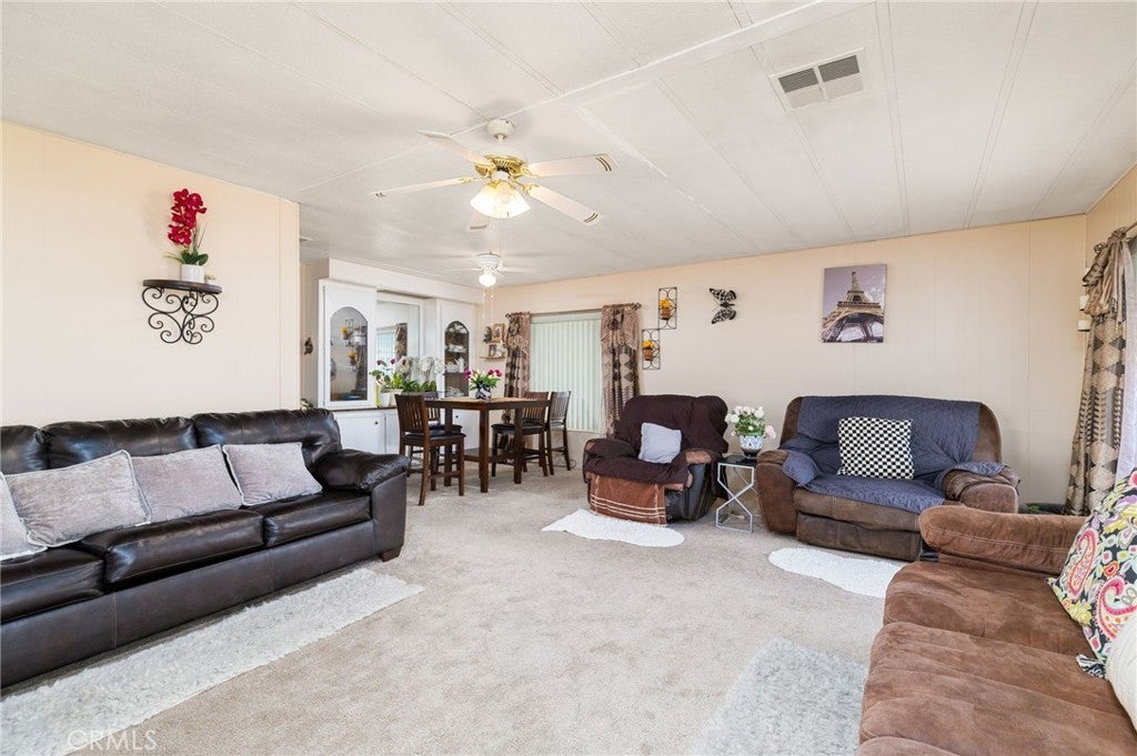 Spacious Double Wide in Colonial Country Club 55+ Community Living: Located in the sought after Colonial Country Club, this well cared for double wide manufactured home features two large living areas, an enclosed patio, and a flexible second room ideal for guests, hobbies, or workspace. The layout is functional, with a dedicated laundry area, oversized windows for natural light, and a kitchen with ample cabinetry and counter space. Outside, the property includes a fenced yard with turf, covered parking, and a private corner lot. The community offers access to resort style amenities including a pool, clubhouse, tennis courts, dog park, and more, all within walking distance. If you’re looking for space, convenience, and a strong community environment, this home delivers!