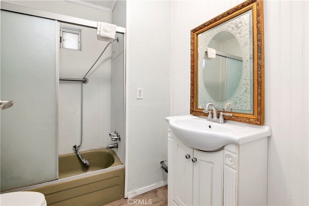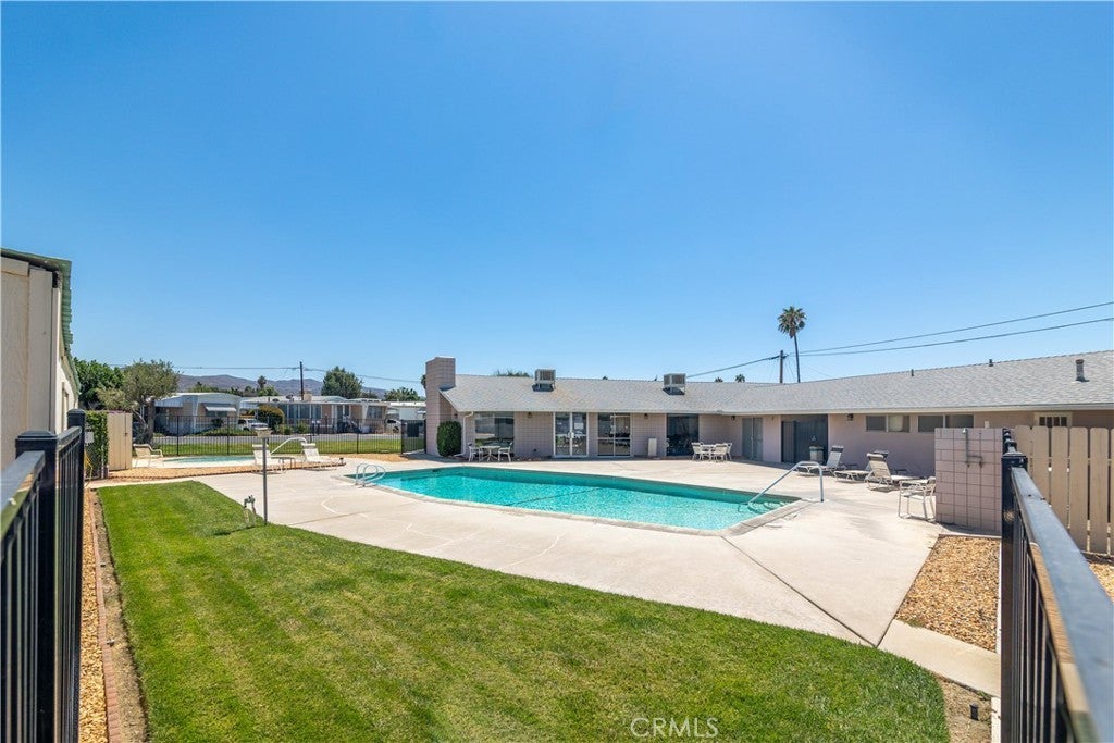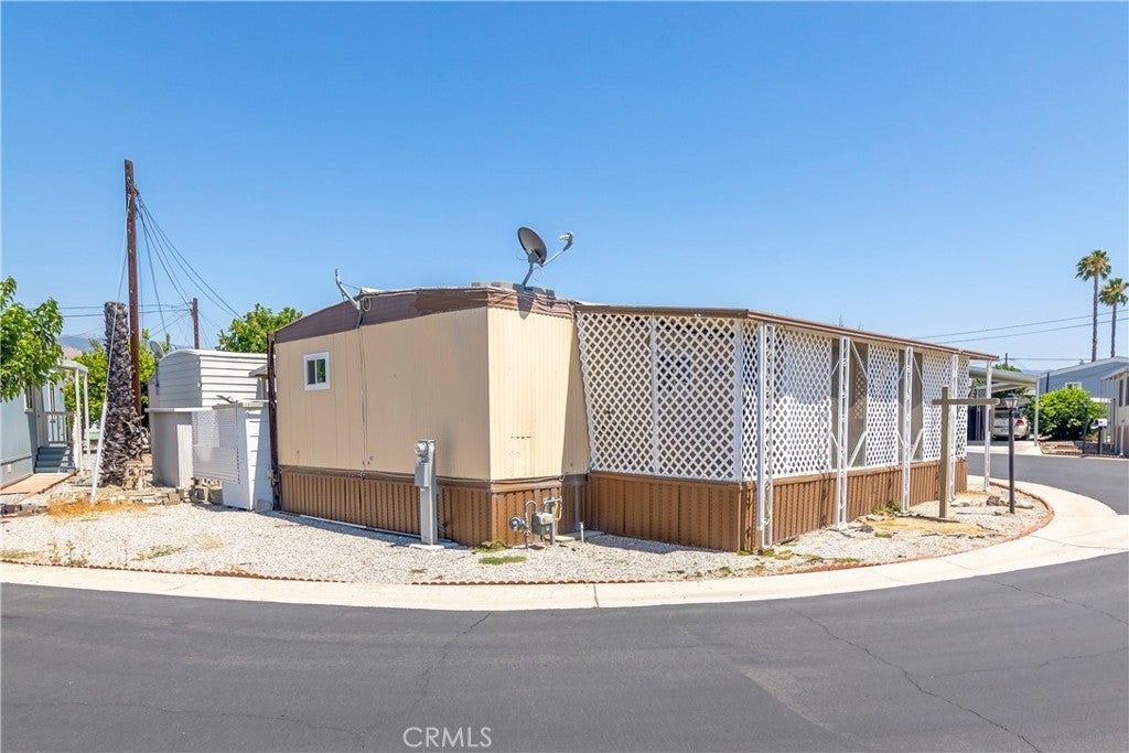 Welcome to this charming and budget-friendly 2-bedroom, 1-bathroom mobile home, ideally situated on a desirable corner lot in a peaceful 55+ community in Hemet. Offering approximately 800 square feet of well-designed living space, this home features a bright and open floor plan with updated laminate flooring throughout, adding a fresh and modern touch. Step inside to a light-filled living room that feels warm and welcoming—perfect for both quiet evenings and casual entertaining. The kitchen is functional and cozy, and the in-home washer and dryer hookups offer everyday convenience. One of the standout features of this property is the spacious covered front porch—ideal for enjoying your morning coffee, relaxing with a good book, or chatting with friendly neighbors. The corner lot location provides added privacy and curb appeal, with easy access and a little extra space to enjoy. Additional highlights include a covered carport with room for two vehicles and access to the community’s well-kept amenities, including a sparkling swimming pool and clubhouse. Whether you're downsizing or seeking an affordable and low-maintenance lifestyle, this move-in ready home checks all the boxes. Don't miss the opportunity to own this delightful corner-lot gem—schedule your private showing today! Seller may carry, reach out for more information!