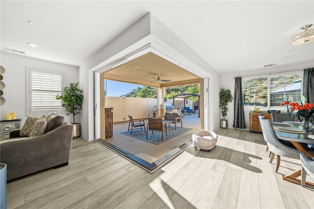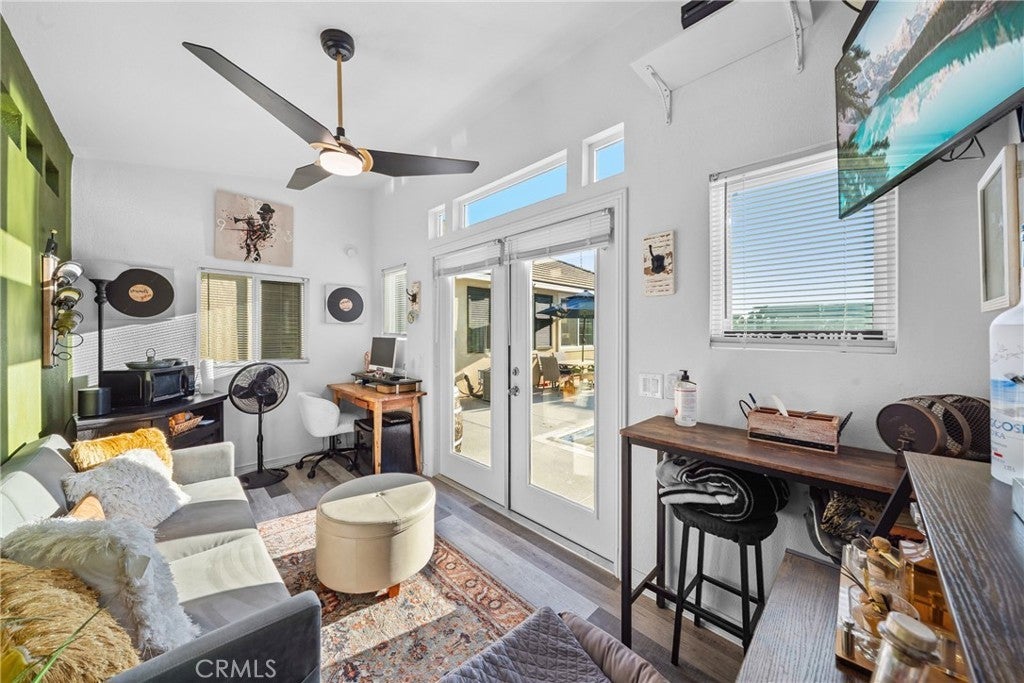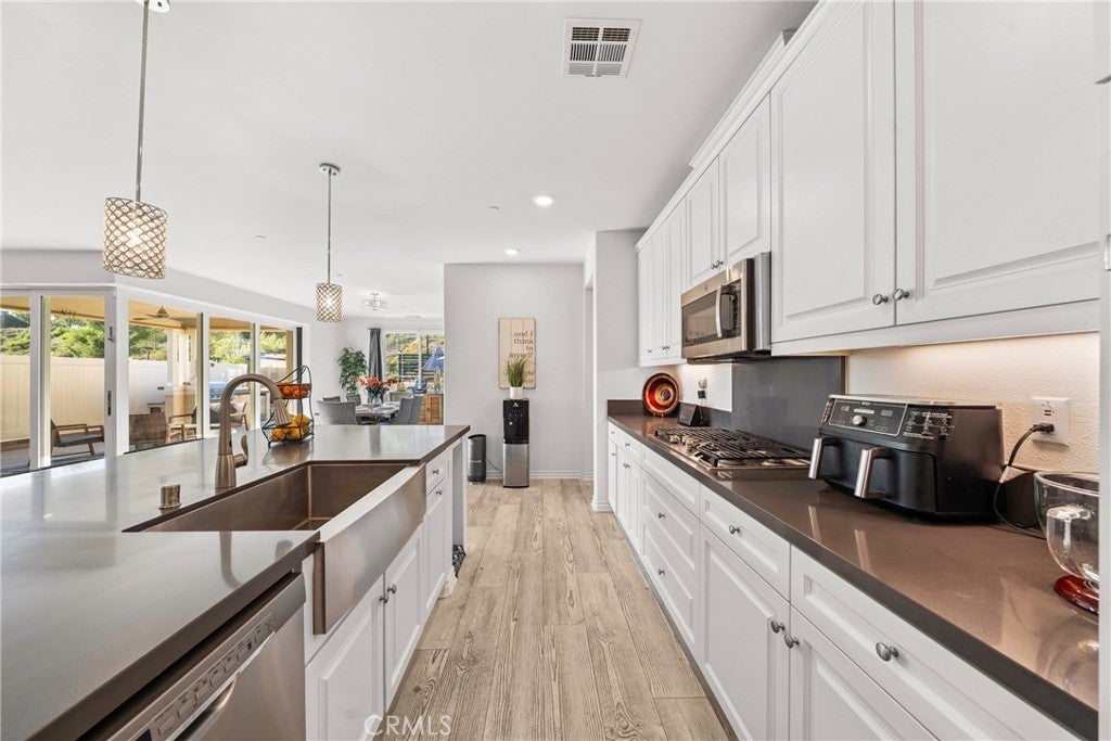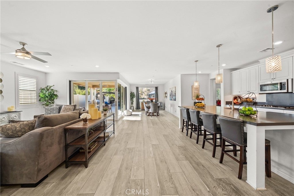 POOL HOME tucked inside the exclusive gated community of Nicolas Heights in the heart of Temecula. This beautifully designed 4-bedroom, 4-bathroom home spans 2,500 square feet and effortlessly blends high-end style with everyday comfort. Every detail has been carefully thought out to give the space a polished yet welcoming feel. The open-concept floor plan is perfect for both quiet evenings at home and lively gatherings. The spacious dining room is ready to host your holiday dinners or casual weekend brunches. In the kitchen, you'll find a chef’s dream setup with a large quartz island, stainless steel appliances—all opening to the living area where oversized pocket sliding glass doors open the interior to the California patio room. Out back, you will find an added room currently used as an office but would make a great pool house or guest room. The covered patio is made for relaxing or entertaining, offering that seamless indoor-outdoor lifestyle Southern California is known for. Whether you're sipping your morning coffee or enjoying an evening glass of wine, this backyard setup is the perfect spot. The primary suite is its own little retreat—plenty of space, a large walk-in closet, and a spa-like bathroom with a soaking tub and separate shower. You’ll also enjoy practical touches throughout the home like an indoor laundry room with tons of storage. Plus, with leased solar panels, you can feel good about energy efficiency too. And let’s not forget the unbeatable Temecula location. From award-winning wineries and charming Old Town to hiking trails, golf courses, parks, and hot air balloon rides, the local lifestyle is all about enjoying the best of Southern California. If you’re looking for luxury, comfort, and a community that feels like home—this is it. Welcome to Mulberry Ct. You’re going to love it here.**Solar on Lease to be transferred to Buyer.
