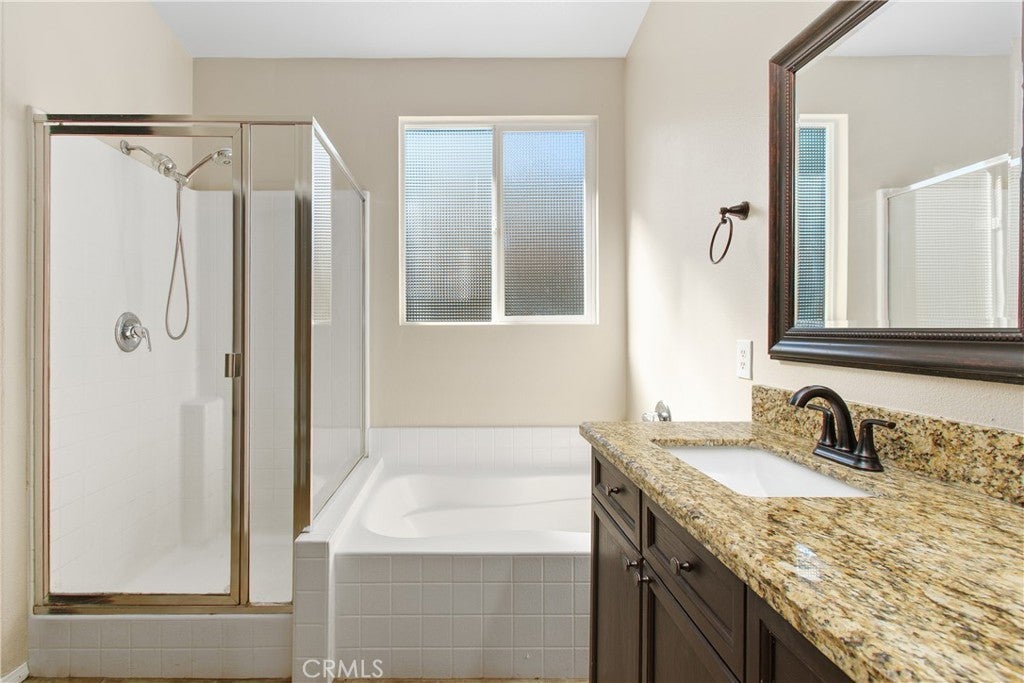 Beautiful Murrieta Single level Move in ready home. 4 Bedroom, 2 Bathroom, 2274 Sqft, Open Floor Plan with Laminate Flooring throughout. Kitchen with Granite Counters, Old Washed Cabinets, Stainless Steel appliances, Pantry, Breakfast Nook area, Grate Room with Fireplace, Granite Bathrooms with Double Sinks, Private Primary Suite with Walk-in Closet, Full Bath, Double Sinks, Dining/Living Room, Blinds throughout the home, Fans, Private Landscaped Backyard with new vinyl fencing on sides, 3 Car Attached Garage, Separate Laundry Room, Wide Hallways, High Ceilings, Newly painted Interior, Exterior, Close to interstate 15 and Inland Valley Hospital. No HOA, Low Taxes, Murrieta School District.