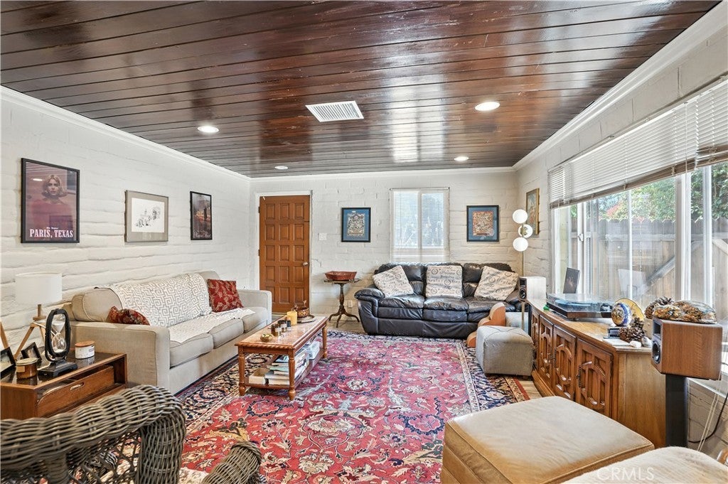 Single Story Riverside Home offering 3 bedrooms, 2 bathrooms, and 1,332 sqft of comfortable living space close to the Wood Streets. Offering a newer roof (2016), new water heater, dual-pane windows. The inviting interior features a bright living area with beautiful wood plank ceiling, cozy brick interior, updated guest bathroom with tile flooring & shower with convenient indoor laundry room. The kitchen offers updated counters and cabinet space and its own dining room with pantry space. Situated on a large lot, this property offers two storage sheds, gated RV/Boat or additional parking on the side yard and a detached 2 car garage. The expansive backyard is perfect for entertaining, gardening, or relaxing in your own private retreat. Enjoy the convenience of being close to Riverside City College, local schools, Downtown Riverside, shopping, dining, and the 91 freeway for an easy commute. No HOA and low taxes. Back on Market, no fault to seller.
