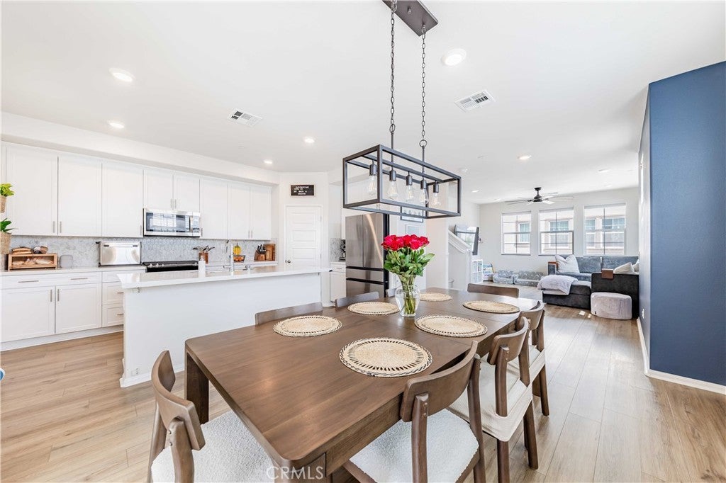 Welcome to the largest floor plan in the highly desirable Heirloom Farms community—an energy-efficient, end-unit townhome designed for comfort, convenience, and modern living. Located in a quiet, family-friendly neighborhood, this spacious home offers multiple bedrooms and bathrooms, perfect for a growing family or those who love to entertain. The main floor has been freshly painted and features upgraded light fixtures in the dining area and a ceiling fan in the living room, creating a bright, welcoming space. Enjoy seamless indoor-outdoor living with a private courtyard landscaped with professional, low-maintenance turf—perfect for relaxing or entertaining. This smart home includes owned solar panels for significant energy savings, as well as advanced tech features like a smart garage, three smart thermostats, and a security system with door and motion sensors. The home also comes equipped with shutters and blinds throughout, offering style and privacy in every room. For added convenience, essential appliances are included, such as the refrigerator, washer, dryer, microwave, oven, and dishwasher—making this home move-in ready. Located within the award-winning Temecula Valley Unified School District and just minutes from shopping, dining, and major freeways, this home offers the ideal balance of lifestyle, location, and value. Don’t miss the opportunity to own the largest model in Heirloom Farms!
