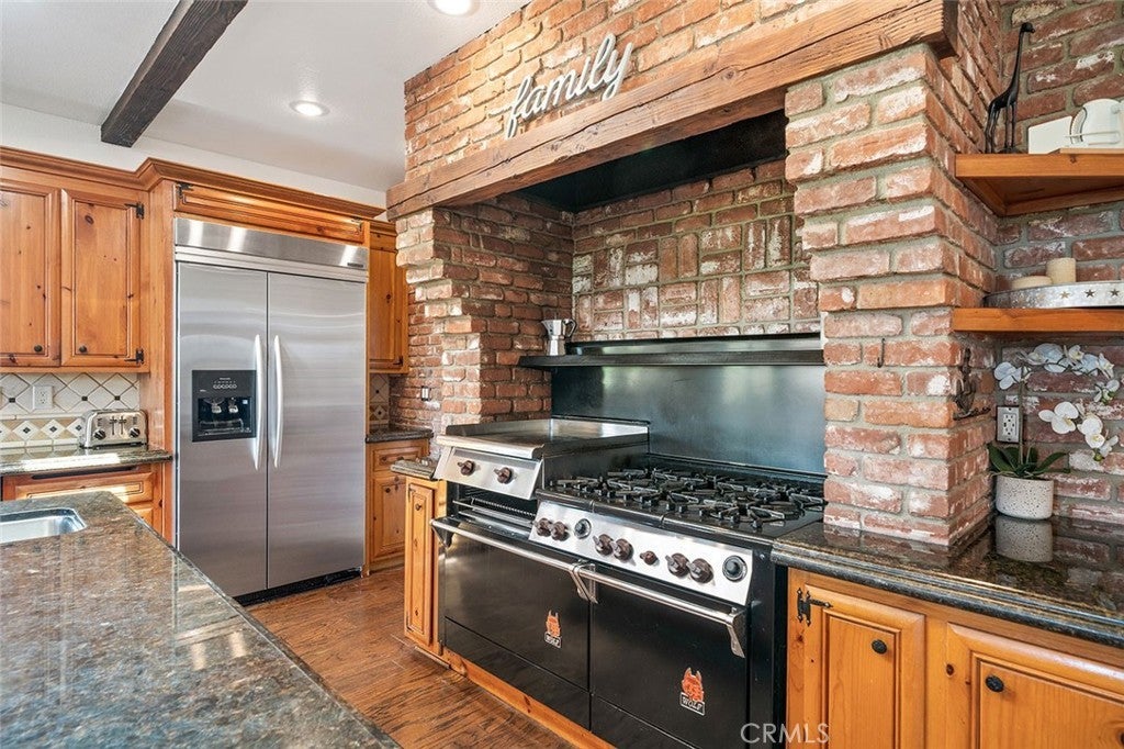 • Interior FeaturesBuilt-in Features, Cathedral Ceiling(s), High Ceilings, Stone Counters, All Bedrooms Down, Bedroom on Main Level, Main Level Primary, Primary Suite, Walk-In Closet(s), Beamed Ceilings, In-Law Floorplan