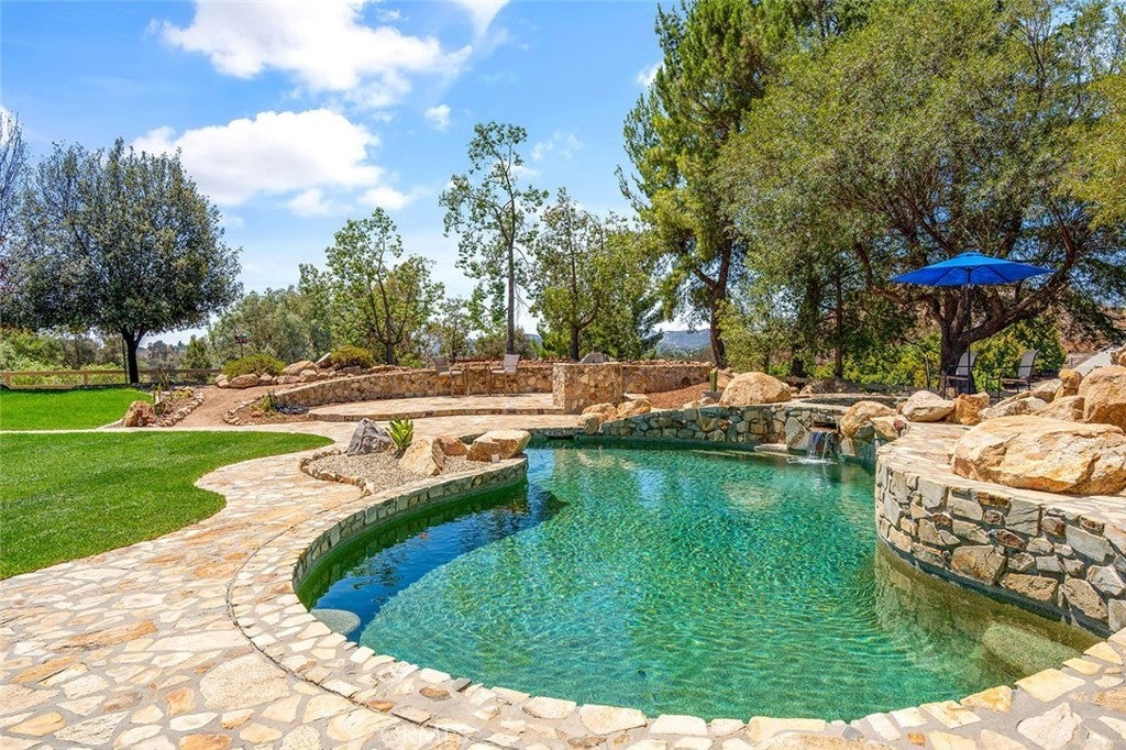 SINGLE-STORY LA CRESTA ESTATE WITH POOL, VIEWS, 1-BEDROOM APARTMENT AND ROOM FOR EQUESTRIAN FACILITIES, DIRT TRACK, AGRICULTURE, ADU… This updated home, located on a lovely, central La Cresta cul de sac checks so many boxes: Easy location; Big views; Single-level; Income-producing guest apartment; Private water well; Saltwater pool/spa; Large lawn; Paid-for solar, Mature trees; Massive cleared acreage - large enough for Barn, Pasture, Arena – or use the land for vineyard/orchard, kids’ playground or future ADU/guest house. The single-level 3011 square foot 4 bedroom/3 bathroom main house has a wonderful layout, including a big family kitchen in the heart of the home with gorgeous brick detail, 60-inch professional Wolf range and a kitchen-sink view of the grassy lawn, outdoor kitchen, pool & spa, natural rock detail and sunsets over the Cleveland National Forest. The spacious rooms, especially the primary suite with vaulted ceiling, fireplace & large ensuite bathroom, provide an expansive feeling throughout the home. Your friends and family will love the private freshly painted guest apartment over the garage with its own living room, kitchen with newer appliances, bedroom, full bathroom, HVAC, laundry and dedicated entrance. Explore the option of rental income, as historically, it has generated an average of $2000 per month! The main house, with its charming covered patio, has recent upgrades, including 2 new HVAC units, new pool equipment, garage doors, carpet and paint. Outside, you will find that the grounds are manicured, versatile and stunning! As the house sits at a gentle elevation, it offers gorgeous views, a 500-sf garden area, a prolific fruit orchard (apples, plums, lemons), walk paths, massive trees and the cleared, terraced usable (and valuable!) land, which can be developed in many ways and is accessible from the street (Ave Bonita). This magical La Cresta estate is a must-see! *****Discover the Santa Rosa Plateau Lifestyle…5-acre minimum parcels (10-acre minimum. in SR West), just minutes to schools, restaurants, hospitals, grocery stores, 15 Fwy & Temecula Wine Country. Enjoy this peaceful ranch community w/no commercial businesses, robust social activities, miles of private community trails & 1000s of acres of Ecological Reserve…All less than 1.5 hours from LA, SD, OC, Palm Springs & Big Bear. Discover the country, yet convenient, lifestyle of La Cresta, Tenaja & the Communities of the Santa Rosa Plateau!