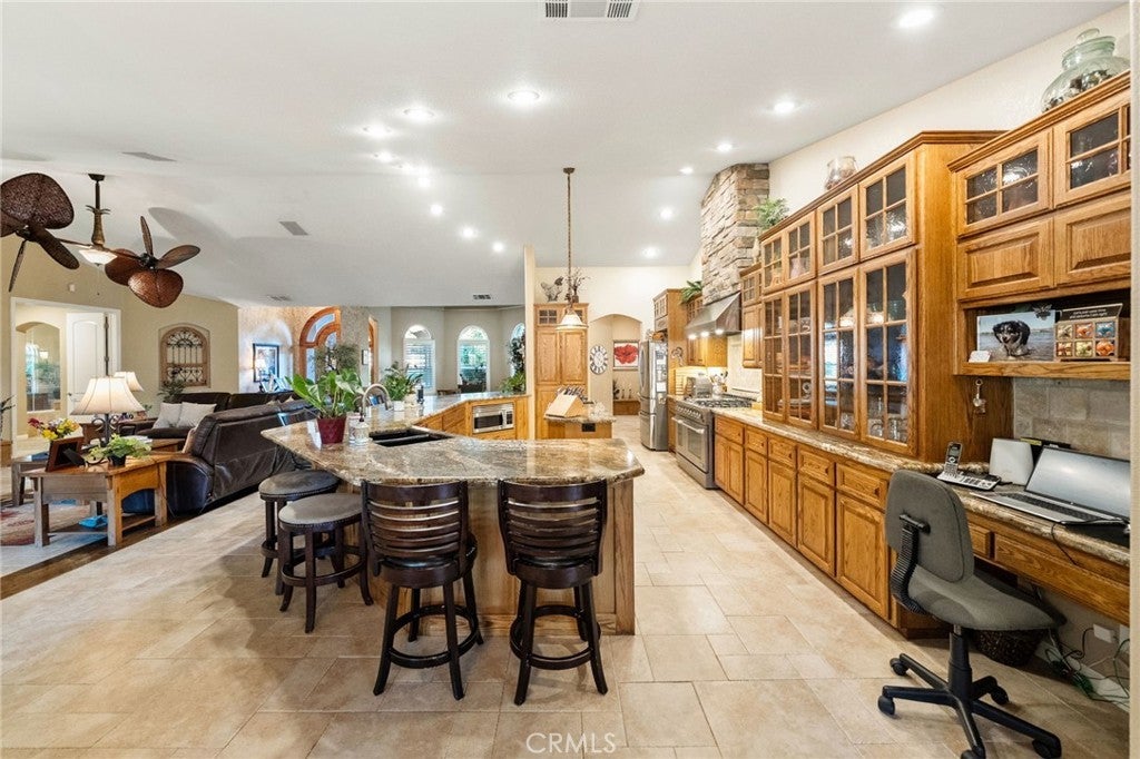 Price Correction! La Cresta, Murrieta Luxury Estate — Elegance, Acreage & Timeless Living Experience elevated living on 5.57 private acres in Murrieta’s prestigious La Cresta community. This 3,106 sq ft single-level estate offers 3 spacious bedrooms and 3 baths, masterfully designed with towering 9-foot ceilings, cathedral accents, and luminous designer windows that bathe the interiors in natural light. A chef’s kitchen steals the spotlight with granite slab countertops, custom cabinetry, an expansive dining island with sink, and open access to the entertainment-friendly living spaces. Host with style in the formal dining room, unwind in the serene breakfast nook, or relax by the grand stone fireplace. The owner’s suite is a retreat of its own — featuring dual walk-in closets, direct patio access, and a spa-inspired bath with oversized soaking tub and dual-head shower. Secondary bedrooms are bright and generously sized, sharing a luxe full bath with impressive soaking tub, tiled walk-in shower and dual craftsmanship sinks. Step outside to your manicured paradise: an 8-ft-deep pool with strung lights, covered patio and additional pergola, lush landscaping, gated entry, panoramic views, and stereo outdoor speakers that set the mood for sunset gatherings. Fruit trees and your own private raised garden beds to created those delicious dishes. Horse lovers will appreciate direct access to scenic riding trails, with gently rolling terrain, and plenty of space for barns, paddocks, or arenas, your horses will thrive in harmony with the land. The expansive acreage and fenced perimeter provide freedom and safety, while panoramic views make every ride unforgettable. Estate includes a paid solar system, 1,000+ sq ft. 3-car garage with storage room, newer generator, reverse osmosis, and onsite well. RV Parking. This is more than a home — it’s a lifestyle. Welcome to La Cresta.