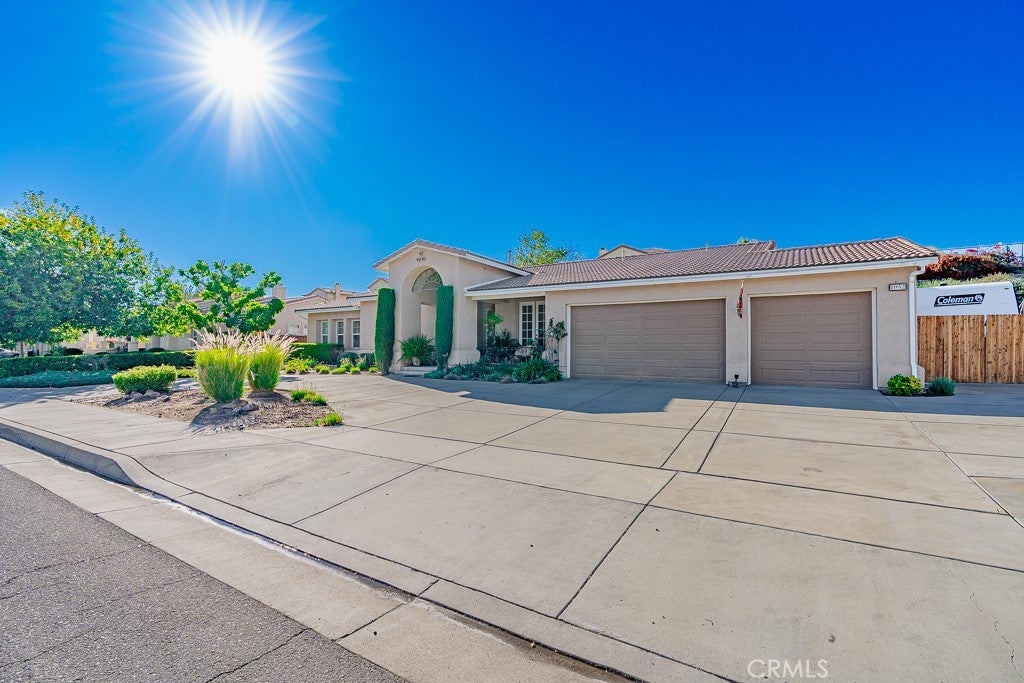 Welcome Home to the Sought-After Park-Hill Community! Step into this beautifully maintained single-story home featuring 4 bedrooms, 3 bathrooms, and over 2,600 sq. ft. of comfortable living space. Situated on a charming half-moon driveway, you'll be greeted by well-manicured landscaping and a welcoming front courtyard — perfect for greeting guests or enjoying a morning coffee. Inside, the open floor plan and soaring ceilings create a bright and airy atmosphere throughout. The spacious living room flows seamlessly into a separate formal dining area, complete with elegant French doors that open to the front courtyard. The upgraded kitchen is a dream for anyone who loves to cook and entertain. It offers ample counter space, a central island, a built-in hutch, and a built-in desk — all overlooking a generous family room with a cozy fireplace, ideal for cooler days. A sliding glass door leads to a large, private backyard featuring mature fruit trees, a covered patio, and plenty of space for outdoor entertaining and BBQs with family and friends. The primary suite is a true retreat, offering two walk-in closets, a luxurious soaking tub, walk-in shower, and dual vanities. Three additional bedrooms provide plenty of space for family or guests — with two of the bedrooms connected by a convenient Jack-and-Jill bathroom. Additional highlights include: *Leased Solar System-*RV Parking-*Spacious Laundry Room-*3-Car Garage Don’t miss this opportunity to own a stunning home in one of the area's most desirable neighborhoods. Schedule your private showing today and start making memories in this exceptional Park-Hill property!