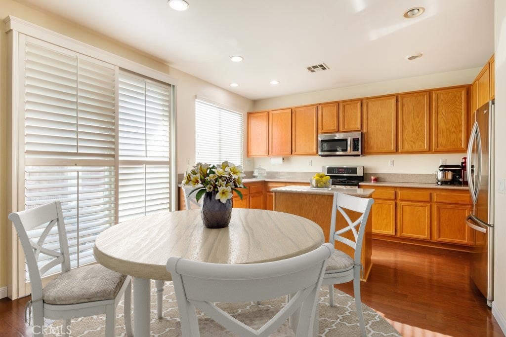 BACK ON MARKET WITH NO FAULT OF THE SELLER OR PROPERTY, VERY MOTIVATED SELLER - Turnkey Rancho Bella Vista Beauty! Gorgeous home in the prestigious Rancho Bella Vista community, in top rated Temecula Valley Unified School District. This versatile floor plan includes a full bathroom downstairs and - per the builder’s optional design - space for a main-level bedroom with direct bath access, ideal for guests, multi-gen living, or a private office. Inside, enjoy tons of natural light warm hardwood flooring, a bright, open-concept family room with a beautiful fireplace, and a kitchen offering generous counter space, abundant cabinetry, and seamless flow to the dining area. Step outside to your private backyard featuring a custom concrete patio, alumawood patio cover, freshly painted fencing, and a large side-yard - perfect for gatherings, gardening, or future expansion. Close to major shopping centers, family parks, and the highly acclaimed Temecula Wine Country.