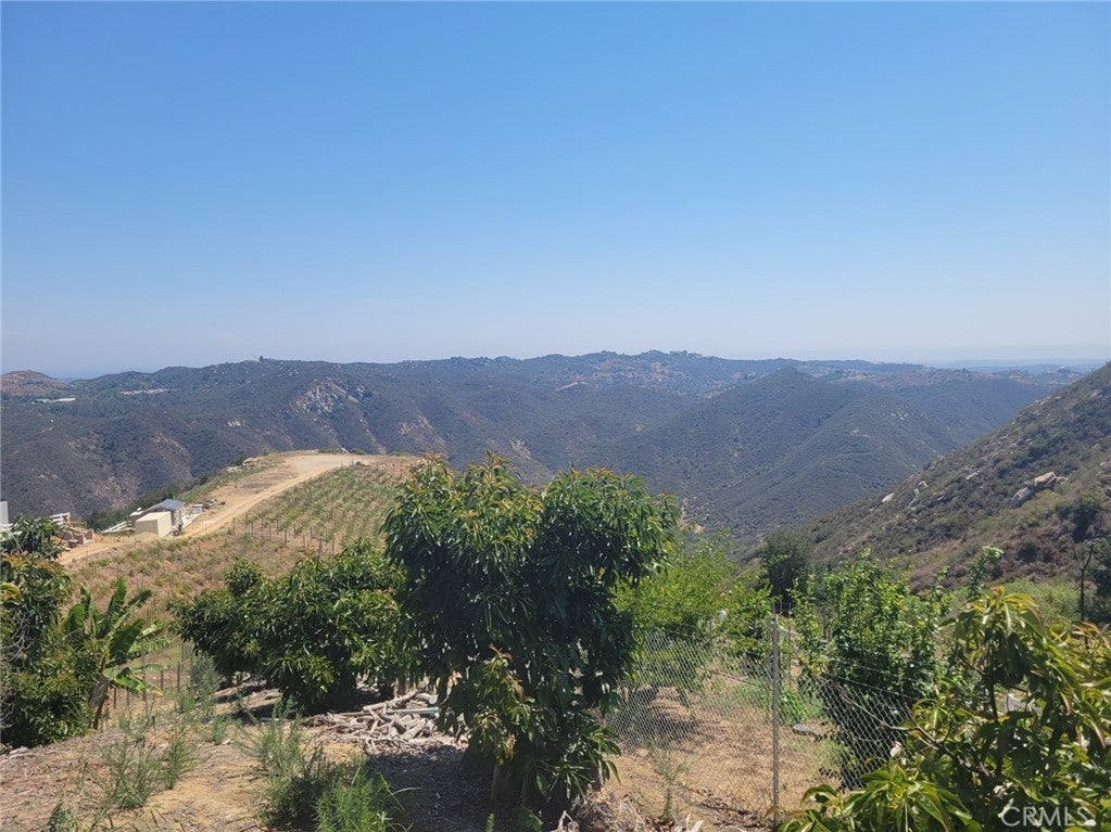 Amazing professionally managed avocado grove with stunning views, among multi-million dollar estates. The trees are 6 to 8 years old and current tree count is approximately 1,200, with plenty of room to expand the grove. The property is in excellent condition, trees are healthy and producing and is professionally managed. This 10+ acre parcel has easy, direct access from the paved street, a roughed in pad for an estate building site, with water meter, electricity, telephone and cable at the street and is front fenced and gated. This is one of the most beautiful regions within De Luz with great soaring views, coastal breezes and proximity to the Santa Rosa Plateau Ecological Reserve. Elevation of the property ranges from 1400 feet at the top (building site) down to 1100 feet at the southern boundary meaning no risk of frost for the income producing avocado grove. De Luz is home to Cross Creek Golf Club, vineyards, and countless avocado and citrus groves; De Luz is only 5 minutes from Interstate 15 and Old Town Temecula. Production records available upon request.