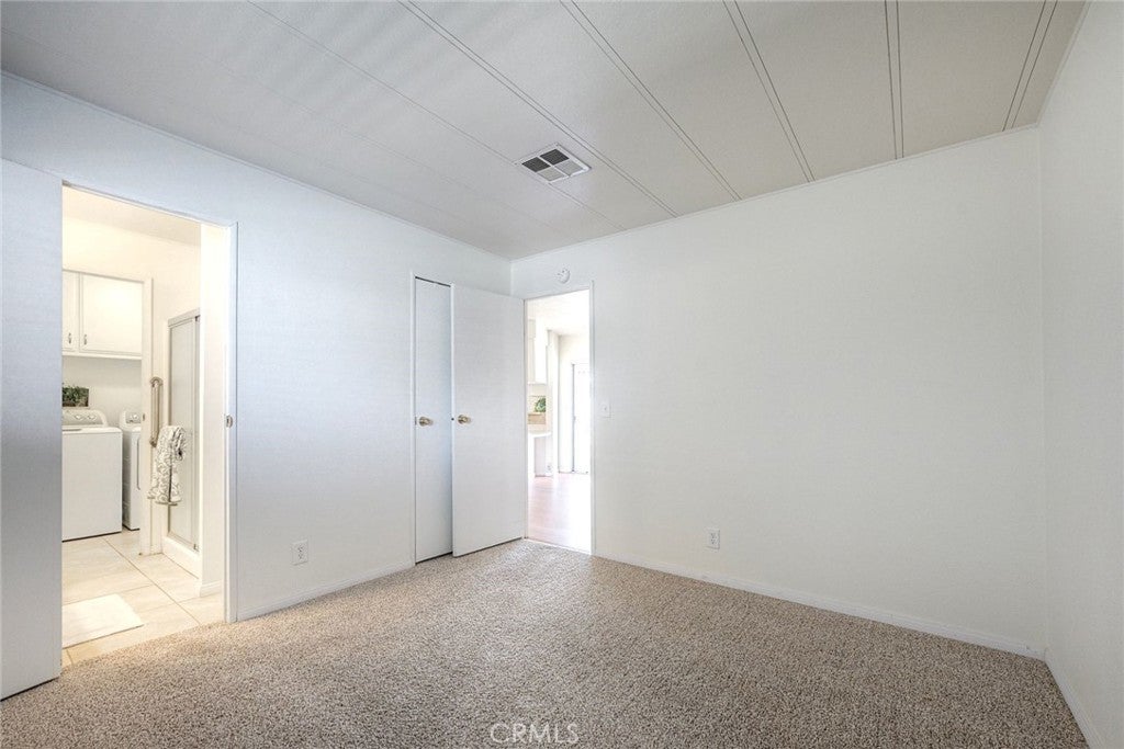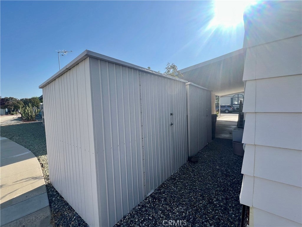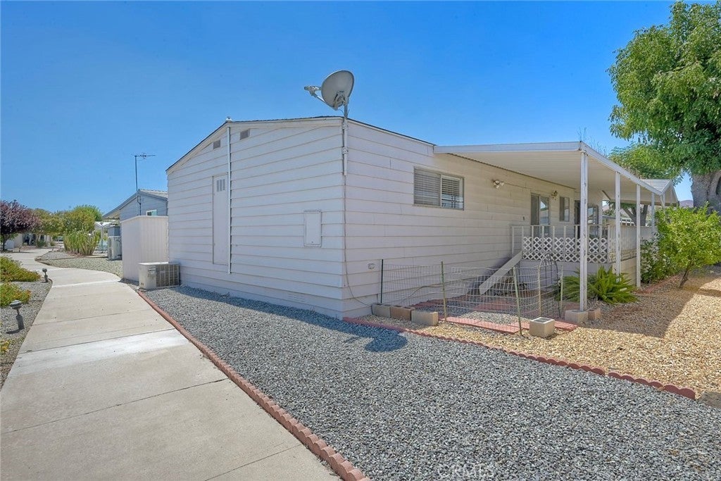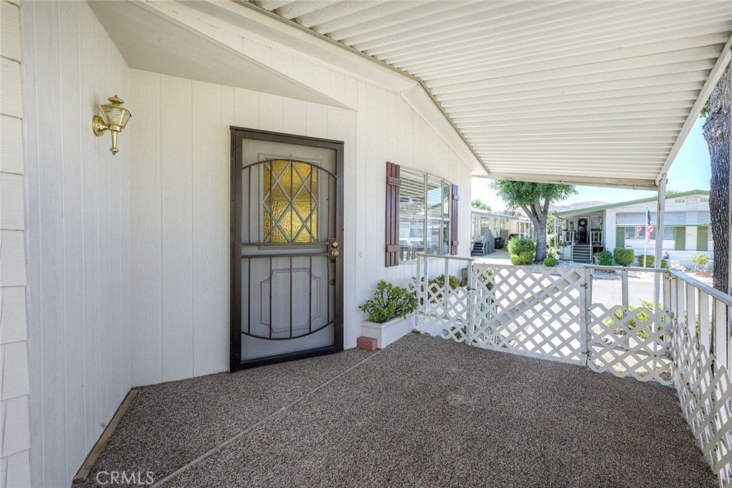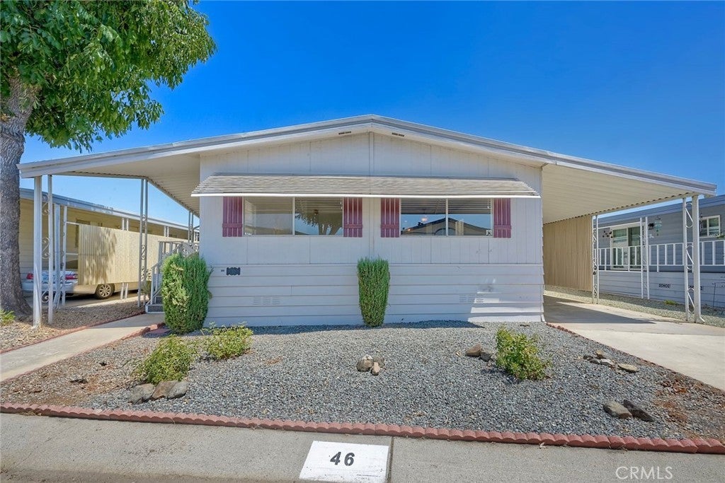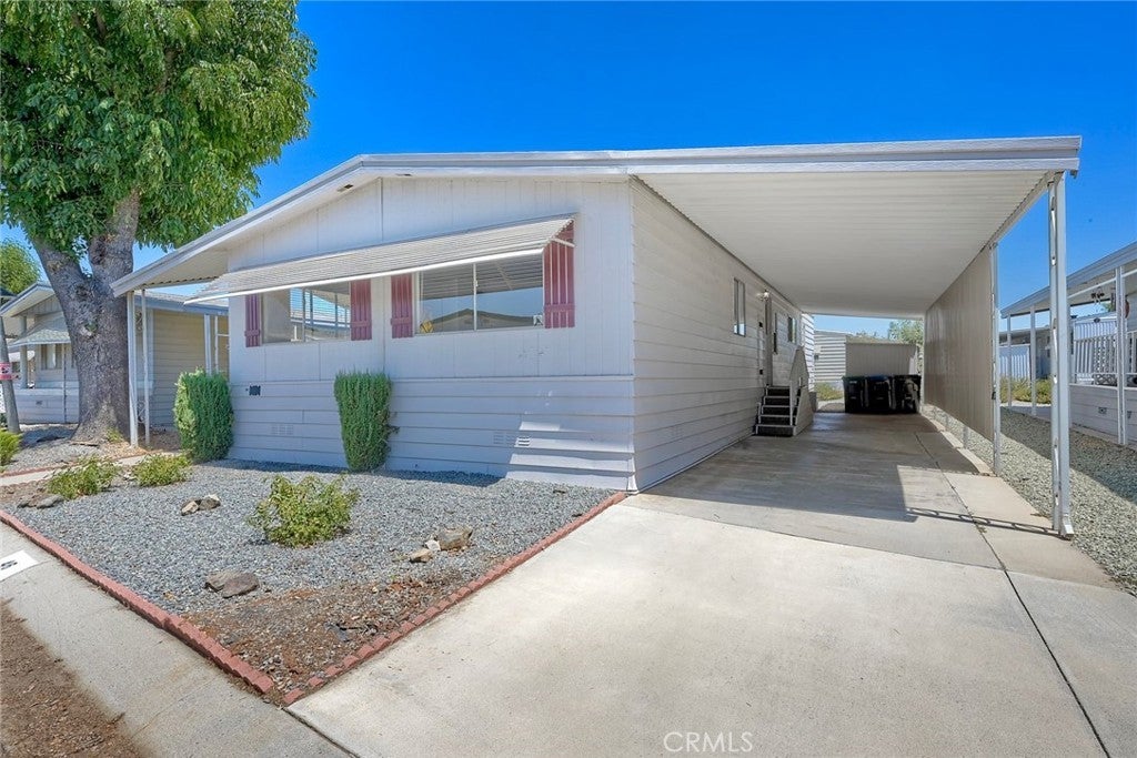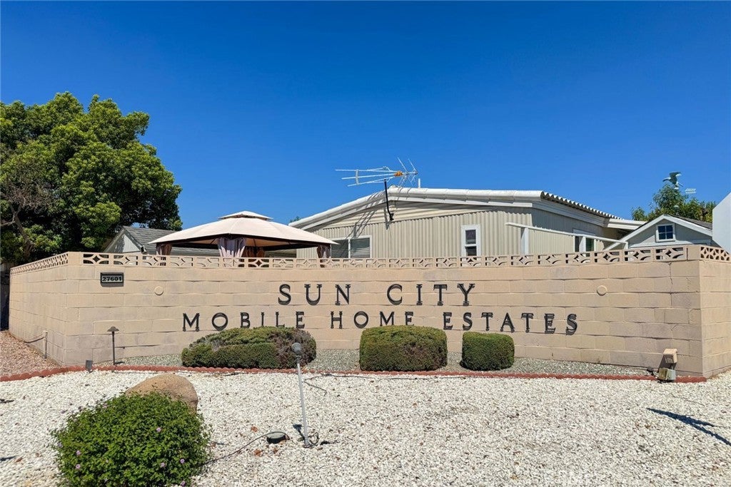 Just in time for the holidays! Desirable Gated Sun City Mobile Home Estates, a 55+ gated community, this double-wide mobile home features 2 bedrooms, 2 bathrooms, one of the bathrooms is a Jack and Jill bathroom, and approximately 1,440 sq. ft. of living space. Highlights include lots of natural light, a spacious primary suite with large closet space, soaking tub, walk-in shower, a formal living room and dining area with a built-in cabinet, and a great kitchen equipped with a gas cooktop and walk-in pantry with plenty of storage. Additional features include ceiling fans, a covered porch, a dog ramp and dog play area, and a nice covered carport with two large storage sheds. Enjoy the community amenities: a clubhouse, heated pool, and many social activities to give you lots of opportunities to get involved. Conveniently located near shopping, a hospital, and the 215 freeway. Great opportunity to live a simple life in beautiful Sun City Mobile Home Estates.