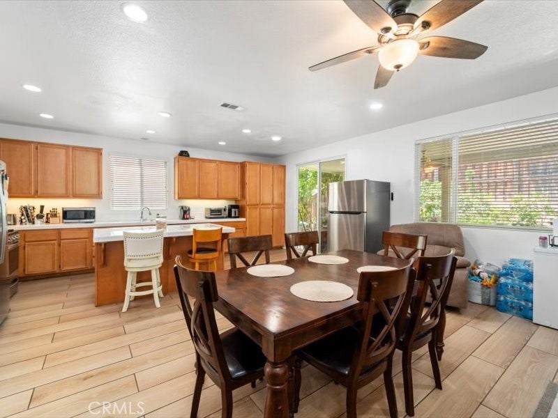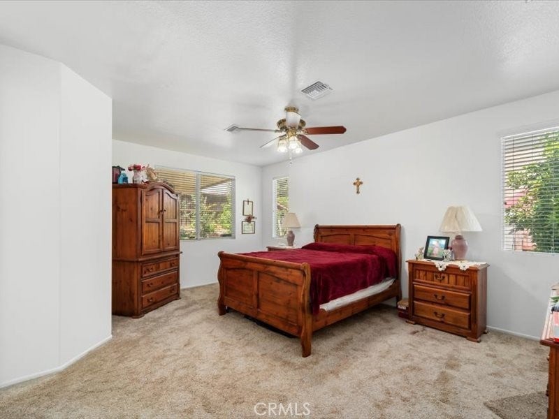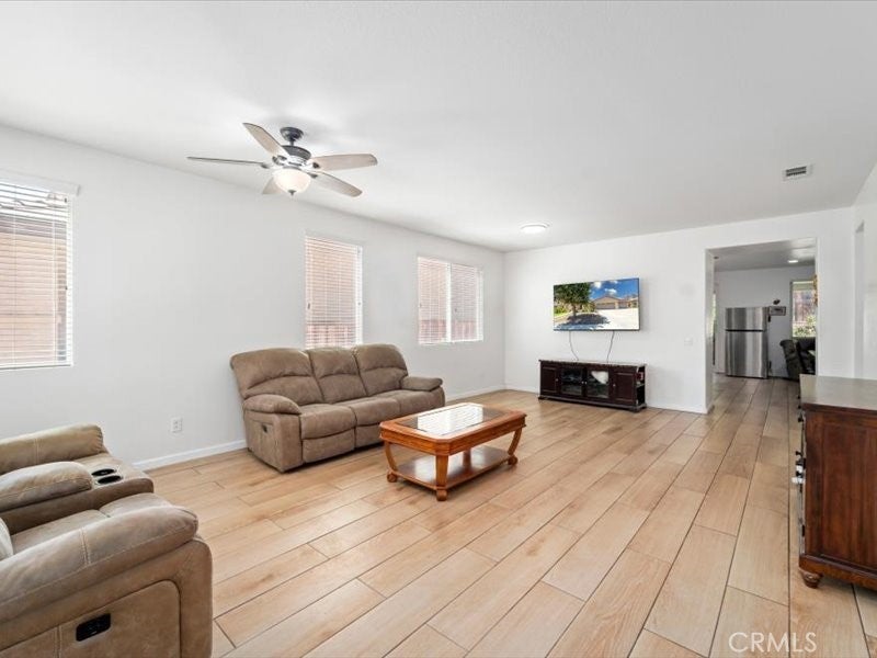 Welcome to this stunning, move-in ready home in San Jacinto, perfectly located within minutes from Schools, Shopping Centers, Eateries and Parks. This spacious property boasts a year-round comfort with over 10 different kind of fruit trees, featuring a covered patio perfect for relaxing or hosting guests. Inside, you'll find a versatile open floor plan oversized front Family Room, large chef’s kitchen, ample cabinetry, that flows into the cozy Dinning/family room with fireplace. the Property has 4 spacious bedrooms and 2 full bathrooms, along with a laundry room for added convenience. 3 car Garage and a spacious driveway. Brand new A/C unit, Porcelain Tile Flooring, and Ceiling Fans throughout, perfect for any size family in a quiet friendly neighborhood. this property is a must see