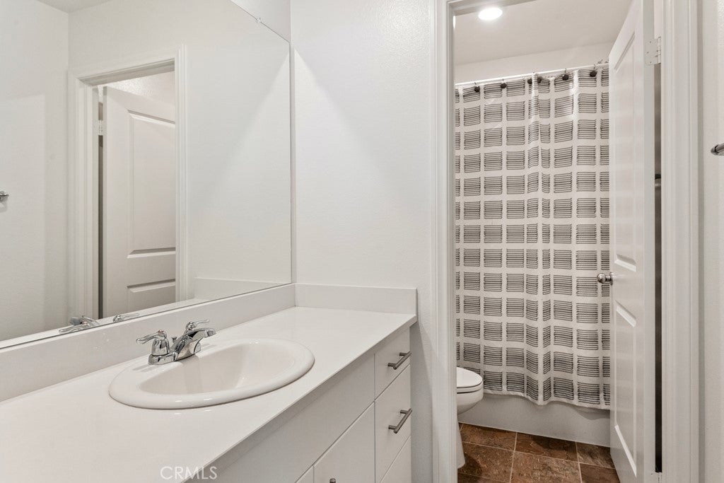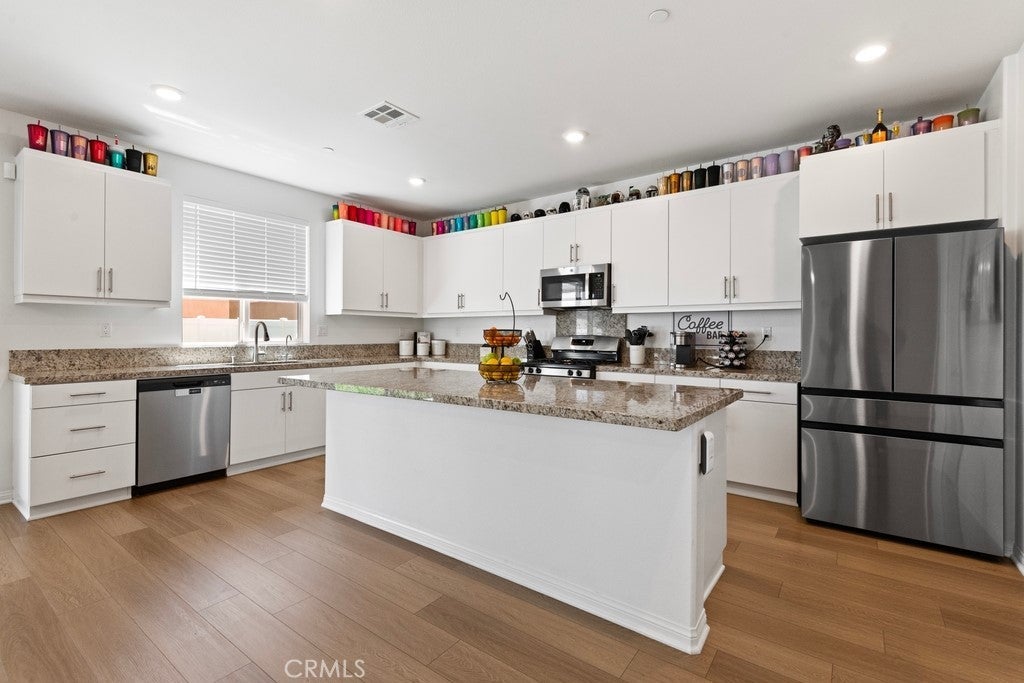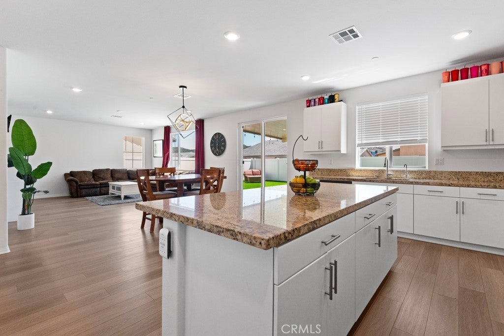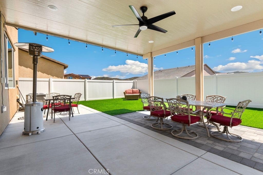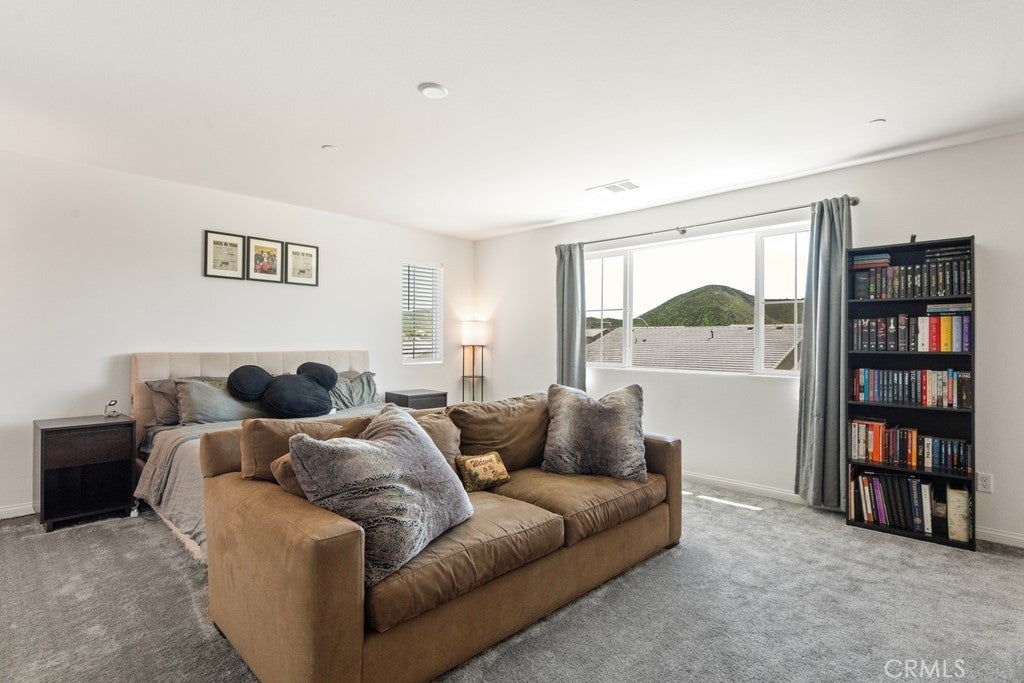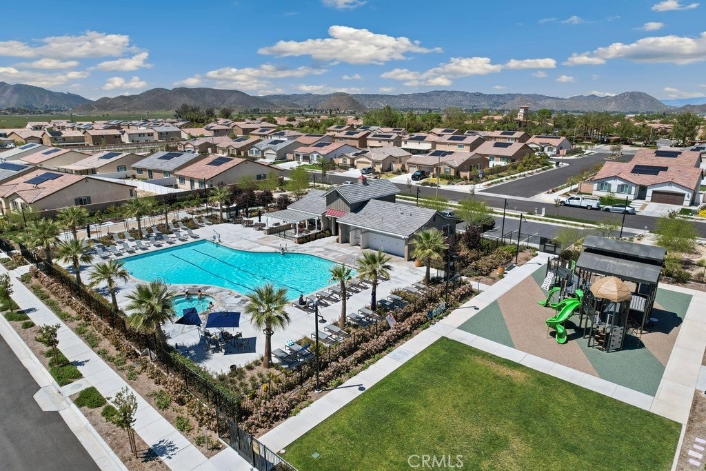 4 BEDROOMS- 1 BEDROOM AND FULL BATH DOWNSTAIRS! OWNED SOLAR! FINISHED BACKYARD WITH TURF AND A PATIO COVER! All of the upgrades have been done for you! Welcome to your new Lennar Home (Residence 2) in the coveted Saddle Point Community. Lots of Natural Light, Vaulted Ceilings, and Neutral, wide plank vinyl throughout the Downstairs. Bedroom #1 and a Full Bath are located DOWNSTAIRS at the front of the House. Down the Hall is the Great Room- with a spacious Livingroom, Dining Area, and perfectly appointed Kitchen that showcases White Shaker Cabinets, Granite Counters, Stainless Appliances, a Step in Pantry, and an upgraded deep single basin sink. The Breakfast Bar comfortably sits 3 and there's a WHOLE HOUSE WATER FILTRATION SYSTEM that's been added. Upstairs, a loft awaits with Bedrooms lining the perimeter, creating privacy for all. The Loft has an upgraded "Built In" area rug, making this the ultimate space to play or relax! Bedroom #2 features a Walk In Closet with adjacent full Bath that has a single sink vanity and a shower/tub combo. Across the way is Bedroom #3 and next to that is Bedroom #4- the Primary Suite. For your convenience, the Laundry Room is upstairs- it has floor to ceiling shelves for your storage needs plus an additional shelf that runs across the washer and dryer. The Primary Bathroom includes a dual sink vanity, walk in closet, and a shower/tub combo. What's really great about this NEW CONSTRUCTION HOME is that the Backyard is already finished for you! Outside you find an insulated patio cover w/ recessed lighting and a ceiling fan. There's a large concrete pad and beautiful artificial turf- It's simple, but done well, and there's room for personalization too! The Saddle Point Community has EXCELLENT AMENITIES TOO! There's a huge swimming pool surrounded by beautiful views of the Hills with a BBQ Area and a Playground. There's a Clubhouse and Trails to walk or ride! You're near Soboba Casino and Diamond Valley Lake and only 20 minutes to the 215 Freeway. The Hemet Mall is nearby and you can get to the Temecula Wineries in 20-30 minutes. This Community is vibrant and landscaped nicely. It's a great place to come home to after a long day. WHY WAIT 4+ MONTHS FOR YOUR NEW BUILD TO BE FINISHED when the Backyard has been done for you, the upgrades have been done for you, the SOLAR IS OWNED, and you can move in ASAP? Come see this home! It definitely checks off all the boxes!