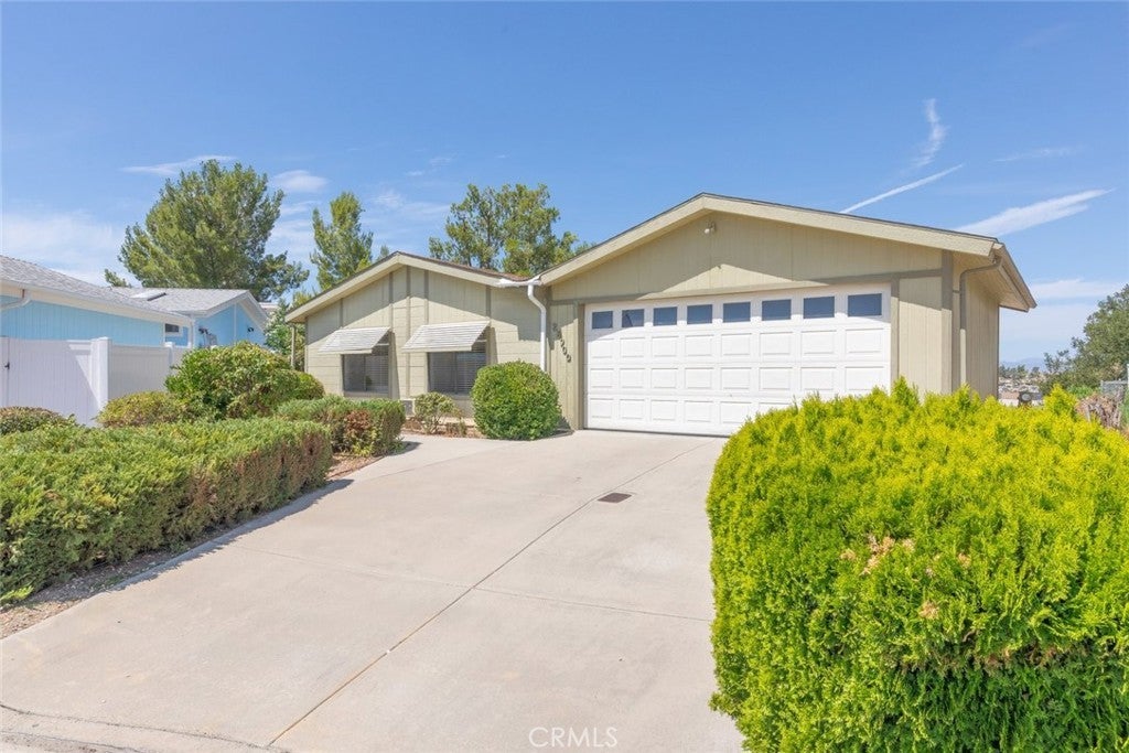 VIEWS, VIEWS, VIEWS!!! Don’t miss this rare opportunity to own a beautifully located home in the highly desirable 55+ Spring Knolls community. Situated at the end of a desirable cul-de-sac and perched atop a bluff, this charming 2-bedroom, 2-bathroom home offers breathtaking westward sunset views and an exceptional lifestyle with LOW taxes and LOW HOA fees. With 1,440 sq. ft. of well-designed living space, this home features a thoughtful floor plan with spacious bedrooms separated on opposite sides of the house for privacy. The primary suite is oversized and includes a walk-in closet, dual sinks, and a vanity area, while the second bedroom also boasts generous proportions and mirrored closet doors. The heart of the home is an open-concept great room, seamlessly connecting the kitchen, family room, and living room—ideal for both daily living and entertaining guests. Step outside and enjoy the expansive lot, complete with a large side yard patio, patio cover, and mature trees offering shade and serenity. Whether you're relaxing or hosting, you’ll love taking in the panoramic sunset views every evening. Additional features include a spacious storage shed along the front walkway and ample outdoor space—a rare find in this community. View lots like this don’t come around often—schedule your private showing today!